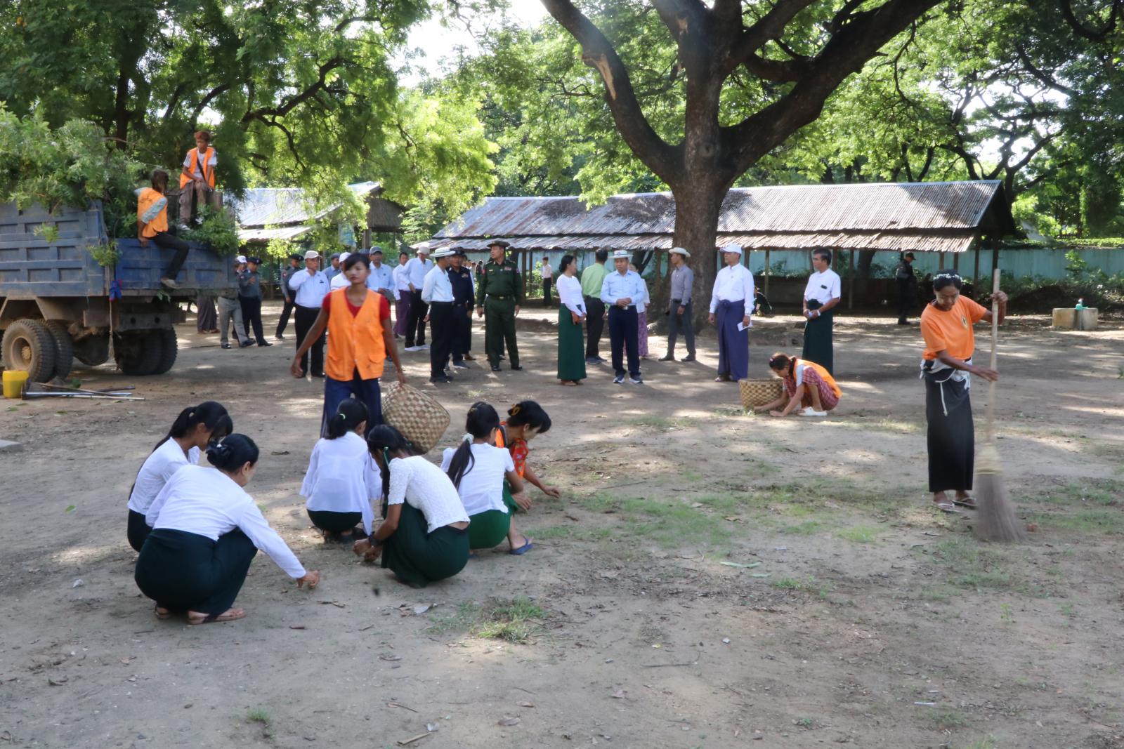 အလားတူ စစ်ကိုင်းတိုင်းဒေသကြီးအတွင်းရှိ နာဂကိုယ်ပိုင်အုပ်ခွင့်ရဒေသနှင့် ခရိုင် ၁၃ ခရိုင်တွင် တပ်မတော်သားများ၊ မြန်မာနိုင်ငံရဲတပ်ဖွဲ့ဝင်များ၊ မီးသတ်တပ်ဖွဲ့ဝင်များ၊ ဌာနဆိုင်ရာ ဝန်ထမ်းများနှင့် စည်ပင်သာယာရေးအဖွဲ့များ စုစုပေါင်းအင်အား ၅၀၀ ဦးကျော်ဖြင့် အခြေခံပညာကျောင်းများ၌ စုပေါင်းသန့်ရှင်းရေးလုပ်ငန်းများ ဆောင်ရွက်ခဲ့ကြသည်။