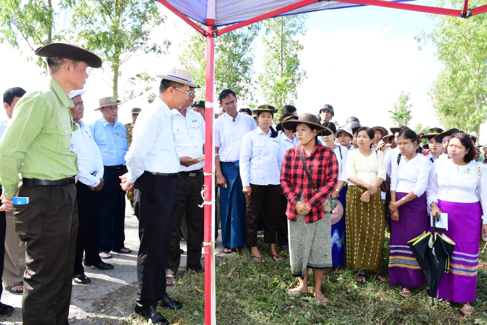 ဦးစွာ တိုင်းဒေသကြီးဝန်ကြီးချုပ်နှင့် အဖွဲ့သည် ကျုံပျော်ခရိုင်၊ ကျောင်းကုန်းမြို့နယ်၊ ဂုန်မင်းကျေးရွာ၊ တောင်သူဒေါ်ခင်နှင်းဝေ၏ စိုက်ဧက (၇) ဧကတွင် ဆာဖိုးသာစပါးမျိုးအား မျိုးစေ့ချကိရိယာ (Drum Seeder) ဖြင့် စိုက်ပျိုးခြင်းများကို ကြည့်ရှုအားပေးခဲ့ပြီး တိုင်းဒေသကြီးဝန်ကြီးချုပ်က တောင်သူများနှင့်တွေ့ဆုံ၍ စပါးစိုက်ပျိုးမှု၊ တစ်ဧကအထွက်နှုန်း၊ စိုက်ပျိုးစရိတ်ကုန်ကျမှု အခြေအနေများမေးမြန်းခဲ့ပြီး တိုင်းဒေသကြီး၏ ပန်းတိုင်အထွက်နှုန်းရောက်ရှိရေးနှင့် တစ်ဧကအထွက်နှုန်းများ ပိုမိုတိုးတက်ထွက်ရှိရေးအတွက် မျိုးကောင်း၊ မျိုးသန့်စပါးများရွေးချယ်စိုက်ပျိုးရေး၊ အထွက်နှုန်းများ တိုးတက်ရေးအတွက် လိုအပ်သည့် မျိုး၊ မြေ၊ ရေ၊ နည်းမှန်ကန်စွာ စိုက်ပျိုးကြရမှာဖြစ်ပါကြောင်း၊ ကြဲခင်းများပပျောက်ရေးအတွက် မျိုးစေ့ချကိရိယာ (Drum Seeder) ဖြင့် စိုက်ပျိုးခြင်း၊ ကောက်စိုက်စက်ဖြင့်စိုက်ပျိုးခြင်း၊ ပျိုးထောင်စိုက်ပျိုခြင်းများ ဆောင်ရွက်လျက်ရှိပါကြောင်းနှင့် တောင်သူများကလည်း လိုက်ပါဆောင်ရွက်ကြရန်လိုပါကြောင်း ဆွေးနွေး ပြောကြားခဲ့သည်။