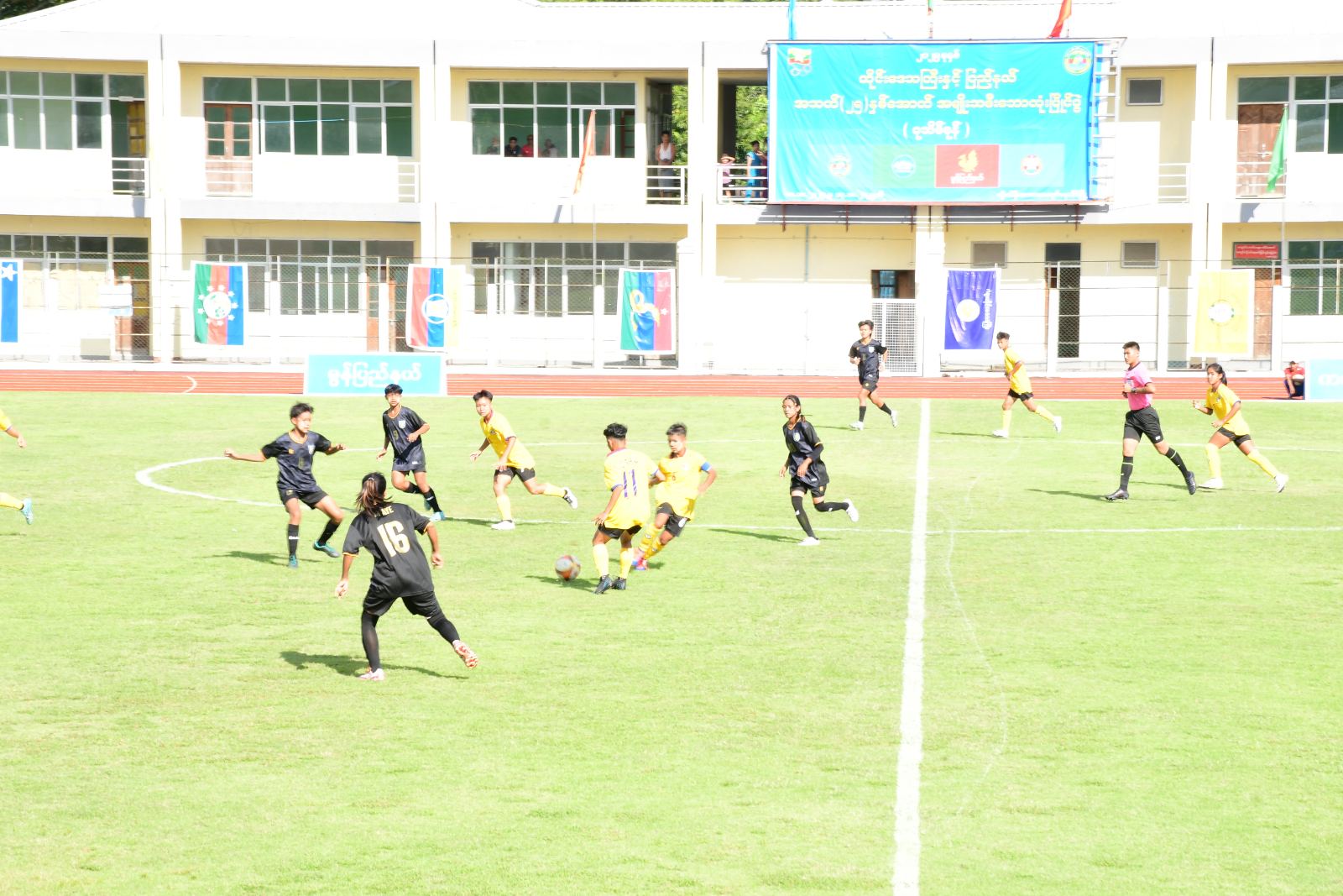 ၂၀၂၅ခုနှစ်၊ တိုင်းဒေသကြီးနှင့် ပြည်နယ် အသက် (၂၅) နှစ်အောက် အမျိုးသမီးဘောလုံးပြိုင်ပွဲ(ပုသိမ်ဇုန်) အုပ်စုပွဲစဉ်များကို ဧရာဝတီတိုင်းဒေသကြီးမှ အိမ်ရှင်အဖြစ် လက်ခံကျင်းပလျက်ရှိရာ ယမန်နေ့ညနေပိုင်းက ပုသိမ်မြို့၊ ကိုးသိန်းအားကစားကွင်းတွင် ပထမနေ့ပွဲစဉ်အဖြစ် ယှဉ်ပြိုင်ကစားသည့် ဧရာဝတီတိုင်းဒေသကြီးအသင်းနှင့် မန္တလေးတိုင်းဒေသကြီးအသင်းတို့၏ ယှဉ်ပြိုင်ကစားနေမှုများကို တိုင်းဒေသကြီးဝန်ကြီးချုပ် ဦးတင်မောင်ဝင်း၊ အားကစားနှင့်လူငယ်ရေးရာဝန်ကြီးဌာန၊ ဒုတိယဝန်ကြီး၊ တိုင်းဒေသကြီးအစိုးရအဖွဲ့ဝင် ဝန်ကြီးများနှင့် ၎င်းတို့၏ ဇနီးများက သွားရောက်ကြည့်ရှုအားပေးခဲ့သည်။