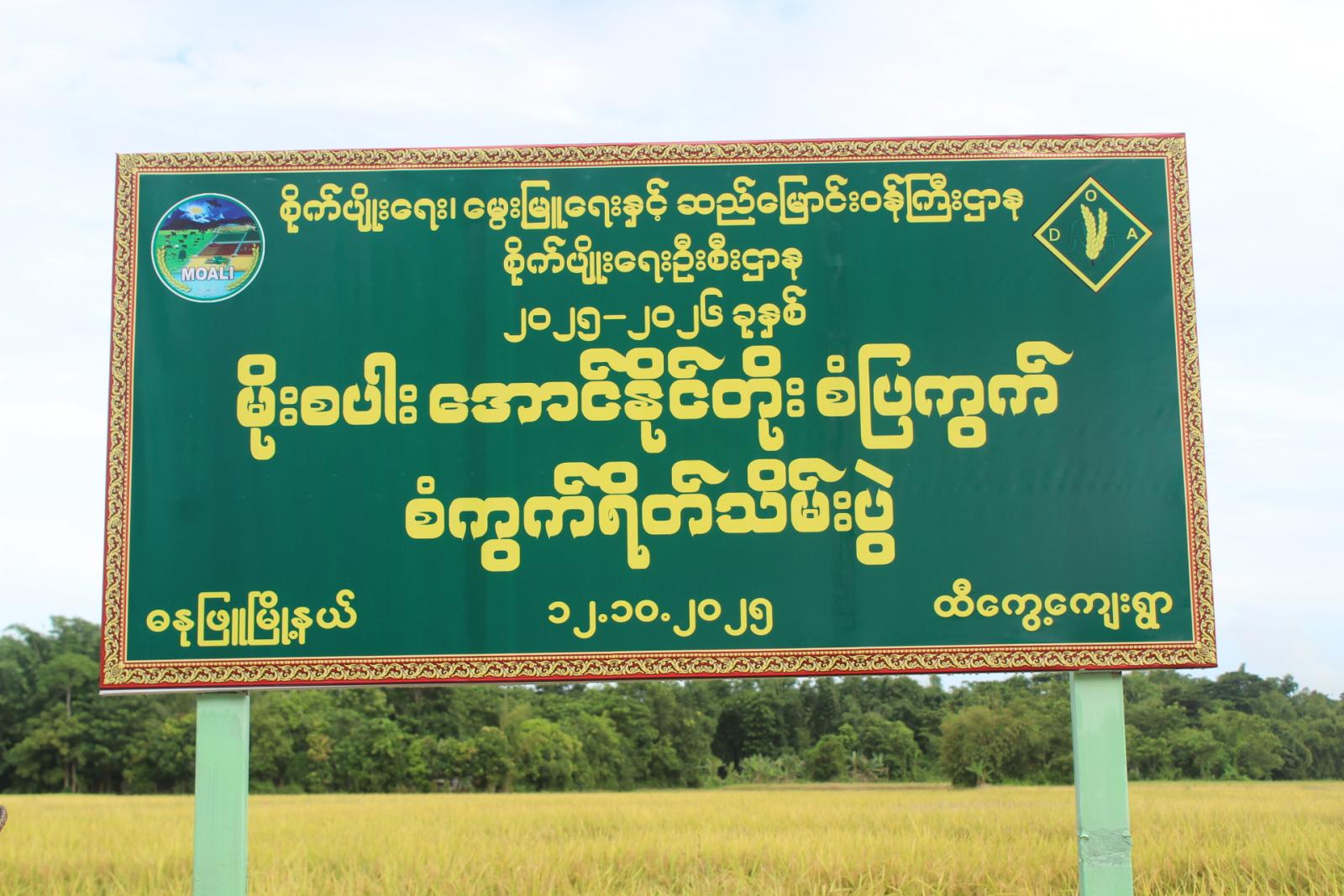 ဧရာဝတီတိုင်းဒေသကြီး၊ မအူပင်ခရိုင်၊ ဓနုဖြူမြို့နယ်တွင် ၂၀၂၅-၂၀၂၆ ခုနှစ် မိုးစပါးစံကွက် ရိတ်သိမ်းပွဲကို ယနေ့နံနက် (၉)နာရီအချိန်က ထီကွေ့ကျေးရွာအုပ်စု၊ တောင်သူ ဦးဝင်းနိုင်၏ ကွင်းအမှတ် (၇၀)၊ ဦးပိုင်အမှတ် (၂/၁)၊ အောင်နိုင်တိုးစပါး မျိုးစံပြကွက် လယ်မြေ၌ ကျင်းပသည်။