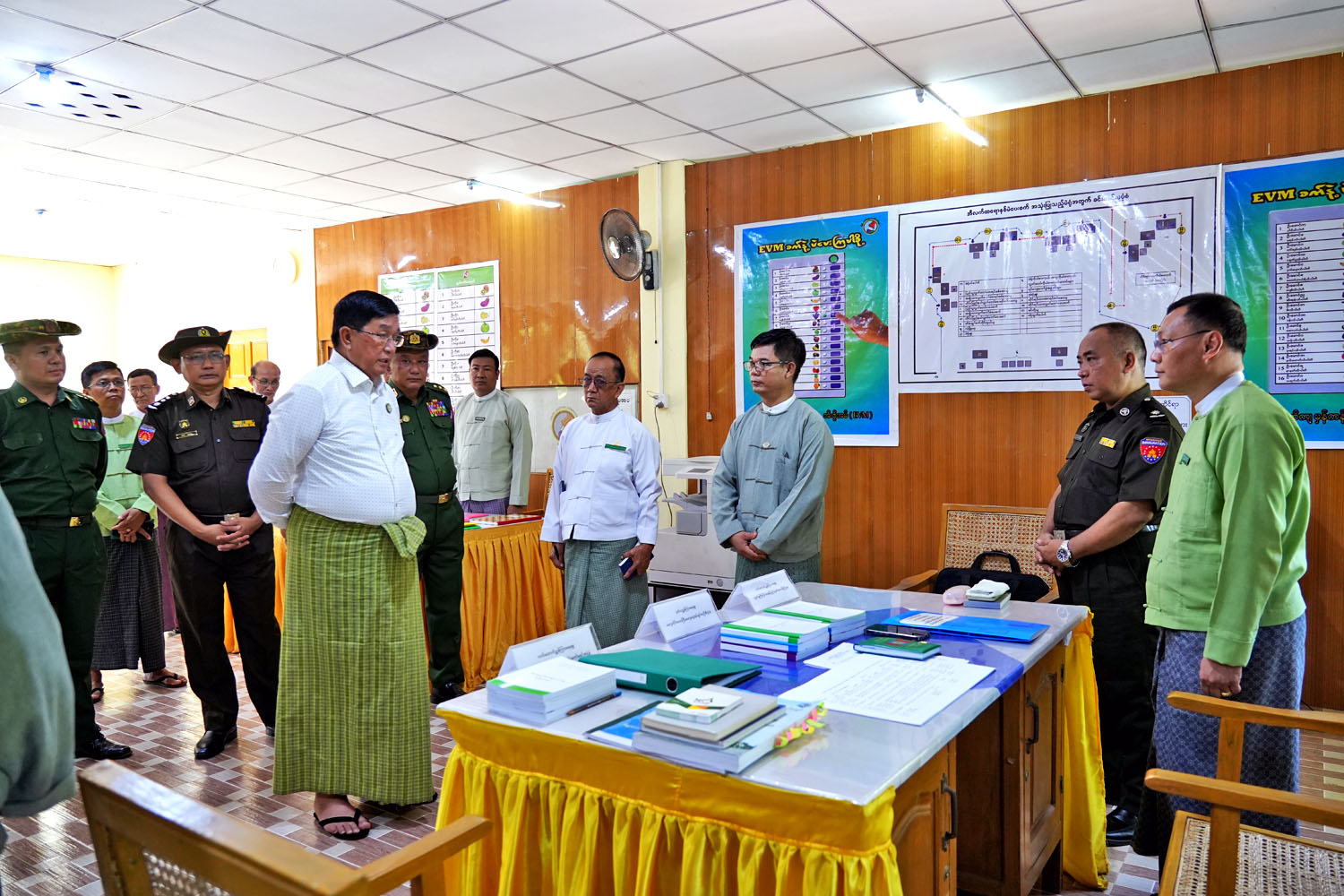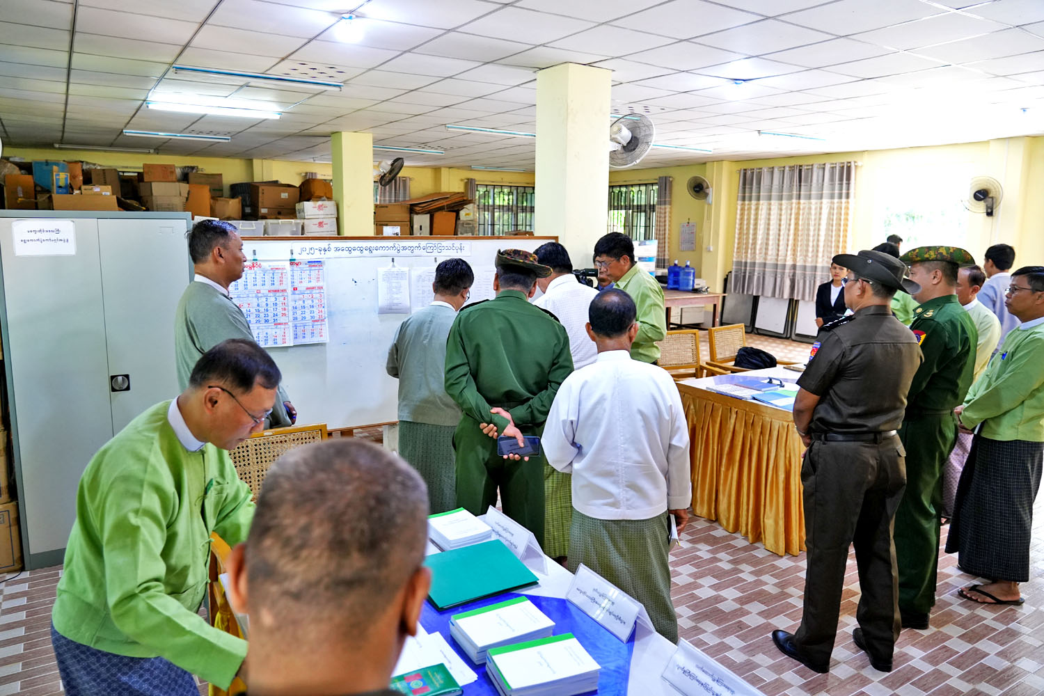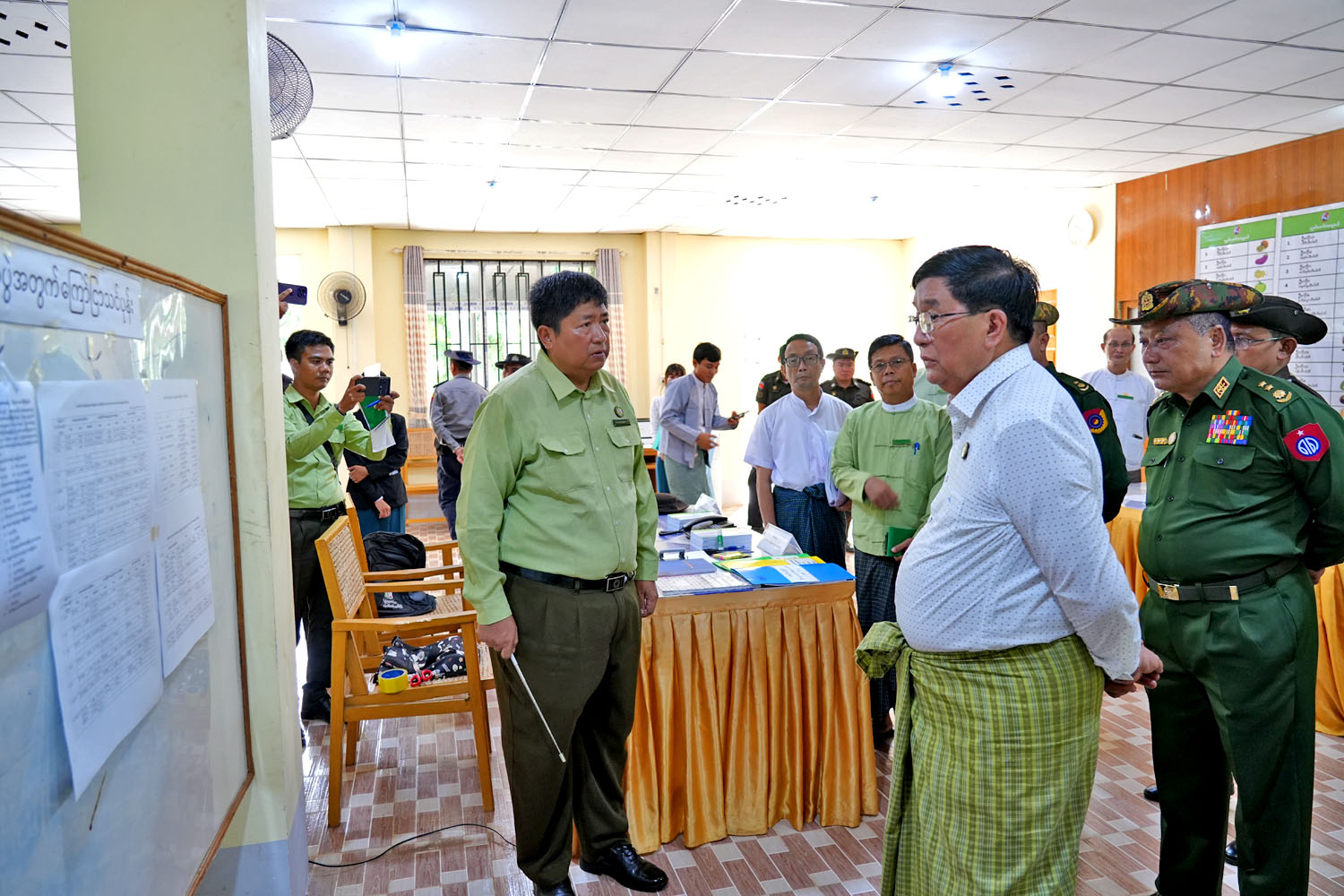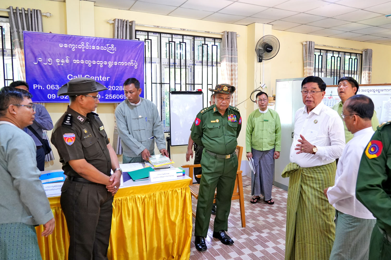 မကွေးတိုင်းဒေသကြီးဝန်ကြီးချုပ် ဦးတင့်လွင်သည် အဖွဲ့ဝင်ဝန်ကြီးများနှင့်အတူ တာဝန်ရှိသူများလိုက်ပါကာ၊ ယနေ့နံနက် (၁၀)နာရီက ၂၀၂၅ ခုနှစ်၊ ဒီဇင်ဘာလ (၂၈)ရက်နေ့တွင် ကျင်းပပြုလုပ်မည့် ပါတီစုံဒီမိုကရေစီ အထွေထွေရွေးကောက်ပွဲတွင် မဲစာရင်းဆိုင်ရာကိစ္စရပ်များနှင့်စပ်လျဉ်း၍ မဲဆန္ဒရှင်ပြည်သူများက သိရှိလိုသည်များကို စုံစမ်းမေးမြန်းနိုင်ရန်နှင့် ကြုံတွေ့ရသည့် အခက်အခဲများကို အထက်ဌာနအဆင့်ဆင့်သို့ သတင်းပို့နိုင်ရန်အတွက် မကွေးတိုင်းဒေသကြီး ရွေးကောက်ပွဲကော်မရှင်အဖွဲ့ခွဲရုံး၊ အပေါ်ထပ်တွင် ဖွင့်လှစ်ထားရှိသည့် မကွေးတိုင်းဒေသကြီး Call Center သို့ သွားရောက် ကြည့်ရှု့စစ်ဆေးသည်။