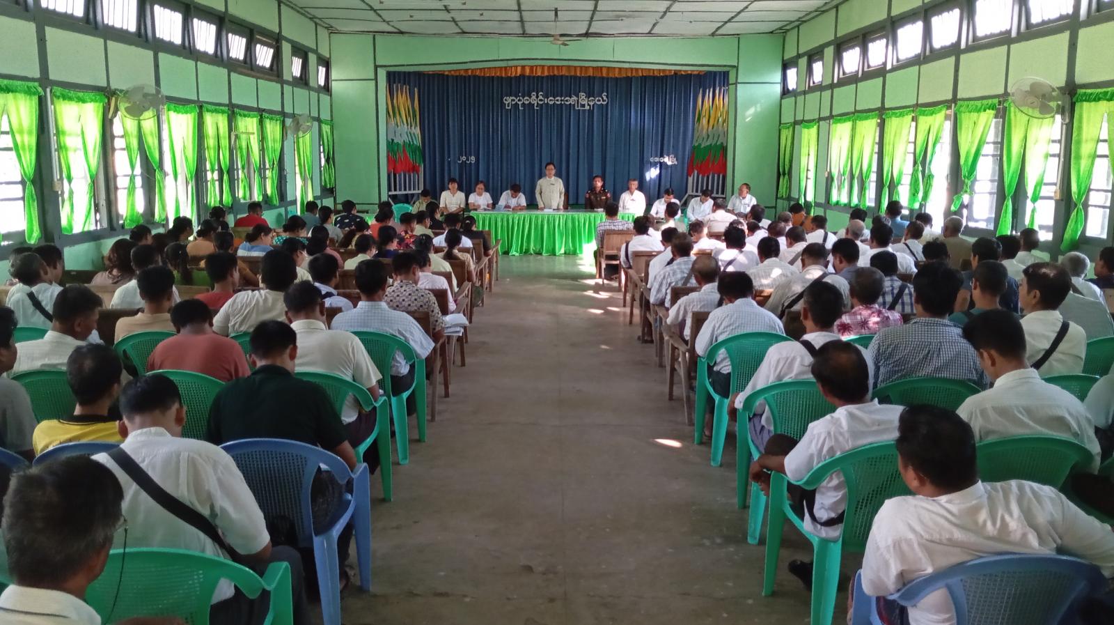 အဆိုပါအခမ်းအနားတွင် မြို့နယ်စီမံခန့်ခွဲရေးနှင့်အုပ်ချုပ်ရေးကော်မတီဥက္ကဋ္ဌ၊ မြို့နယ်အုပ်ချုပ်ရေးမှူး ဦးမြသိန်းမောင်က ပါတီစုံဒီမိုကရေစီအထွေထွေရွေးကောက်ပွဲ အောင်မြင်စွာကျင်းပပြီးစီးရေးအတွက် ရွေးကောက်ပွဲဆိုင်ရာကိစ္စရပ်များ၊ ရပ်ကျေးကော်မရှင် ဥပဒေ၊ နည်းဥပဒေများနှင့်အညီ အဆင်ပြေချောမွေ့စွာ ဆောင်ရွက်နိုင်ရေး၊ ရပ်ကွက်၊ ကျေးရွာ ရွေးကောက်ပွဲ ကော်မရှင်အဖွဲ့ဝင်များအနေဖြင့် အသက် (၁၈)နှစ်နှင့်အထက် ဆန္ဒမဲပေးပိုင်ခွင့်ရှိသည့်ပြည်သူများ ဆန္ဒမဲပေးနိုင်စေရေး ကြိုးပမ်းဆောင်ရွက်သွားရန်၊ ကျေးရွာကော်မရှင်အဖွဲ့ခွဲရုံးတွင် ပထမအကြိမ် ကပ်ထားကြေညာသည့် မဲစာရင်းတွင် အမည်စာရင်းမပါ၀င်သူများက ပုံစံ(၃)ဖြင့် အမည်ထည့်သွင်းပေးရန် တောင်းခံခြင်း၊ မပါ၀င်သင့်သူများအား ပုံစံ(၄)ဖြင့် ကန့်ကွက်ခြင်းနှင့် မဲစာရင်းပါအချက်အလက်များ မှားယွင်းမှုများအား ပုံစံ(၄-ဂ)ဖြင့် ပြင်ဆင်လွှာတင်သွင်းခြင်းလုပ်ငန်း မဲပေးပိုင်ခွင့်ရှိသူပြည်သူများ ဆန္ဒမဲပေးနိုင်ရေး၊ မဲစာရင်းတွင်ပါဝင်နိုင်ရေး သေချာစွာစိစစ်ဆောင်ရွက်ကြရန် အဖွင့်အမှာစကားပြောကြားခဲ့ပြီး မြို့နယ်ရွေးကောက်ပွဲကော်မရှင်အဖွဲ့ဝင် ဦးသက်လွင်ဦးက ပထမအကြိမ်မဲစာရင်းများ ထုတ်ပြန်ရာတွင် မှန်ကန်မှုရှိစေရေးနှင့် မြို့နယ်အတွင်းရှိ မဲပေးခွင့်ရှိသည့် ဆန္ဒမဲရှင်ပြည်သူများ ကျန်ရှိမှူမရှိစေရေး ဆောင်ရွက်သွားမည့် လုပ်ငန်းများအား ရှင်းလင်းဟောပြောခဲ့သည်။