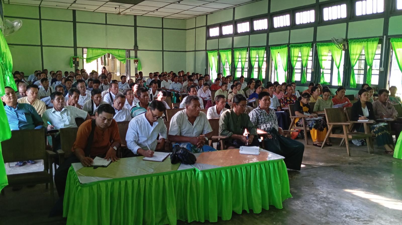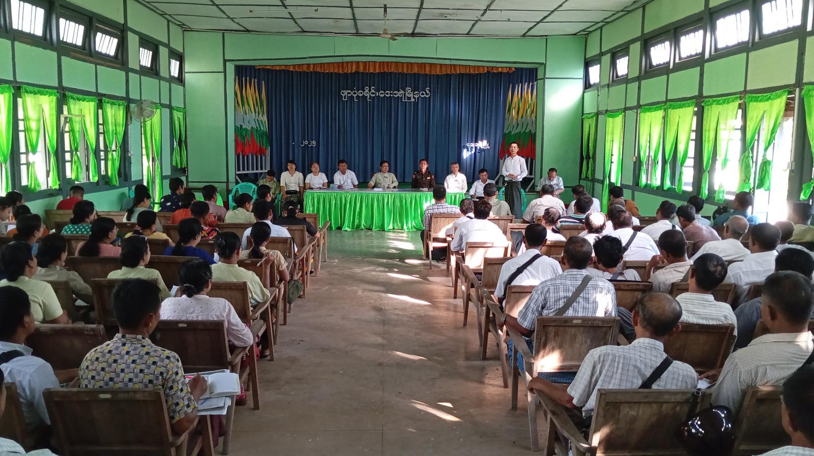 ဆက်လက်၍ မြို့နယ်ရွေးကောက်ပွဲကော်မရှင်အဖွဲ့ခွဲ၊ အတွင်းရေးမှူး၊ ရွေးကောက်ပွဲအရာရှိ ဦးအောင်မြတ်သူက ရွေးကောက်ပွဲအောင်မြင်စွာ ကျင်းပနိုင်ရေးအတွက် ဆောင်ရွက်ထားရှိမှုများ၊ လက်ရှိဆောင်ရွက်လျက်ရှိသည့် လုပ်ငန်းစဥ်များနှင့် ဆက်လက်ဆောင်ရွက်သွားရမည့် လုပ်ငန်းများအား ရှင်းလင်းတင်ပြခဲ့ရာ တက်ရောက်လာသူများက သိရှိလိုသည့်အချက်များနှင့် လိုအပ်ချက်များကို တင်ပြမှုအား မြို့နယ်ရွေးကောက်ပွဲအဖွဲ့ဝင်များက သက်ဆိုင်ရာကဏ္ဍများအလိုက် ညှိနှိုင်းဆောင်ရွက်ပေးခဲ့ကြောင်း သိရသည်။