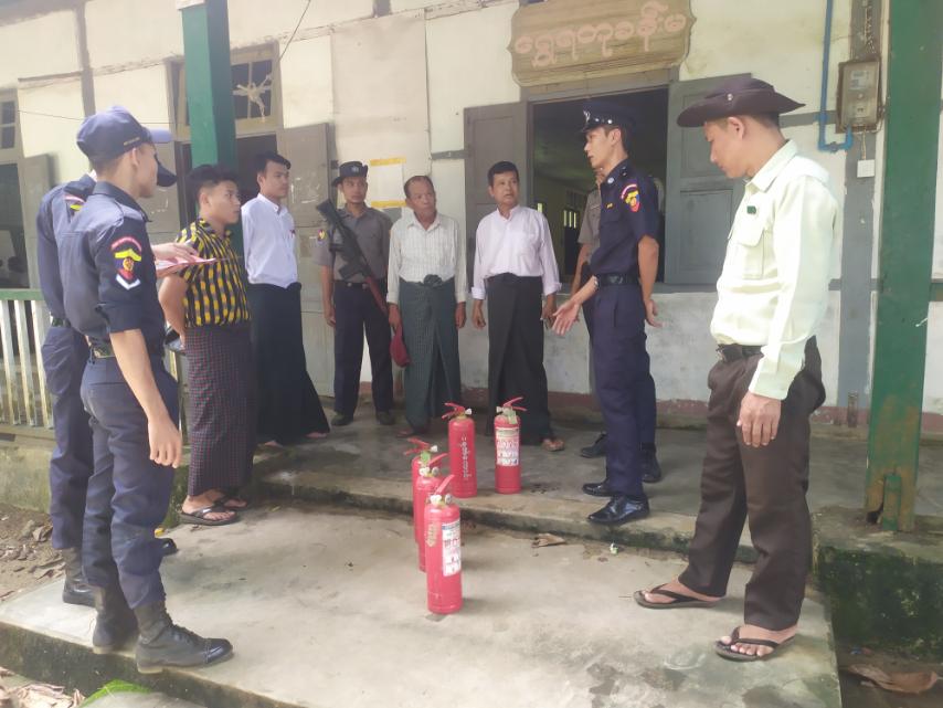 ယခုအခါ မိုးအကုန် ဆောင်းအကူး ပွင့်လင်းရာသီရောက်ရှိလာပြီဖြစ်၍ မီးဘေးအန္တရာယ် ကြိုတင်ကာကွယ်ရေးအတွက် (အ-ထ-က)ကျောင်းအတွင်း မီးသတ်ဆေးဘူးများထားရှိရေး၊ ဈေးဆိုင်ခန်းများတွင် သွယ်တန်းထားသော လျှပ်စစ်ဝါယာကြိုးများ ပေါက်ပြဲမှုရှိ/မရှိ ပူးပေါင်း အဖွဲ့မှ လိုက်လံစစ်ဆေးခဲ့ကြသည်။