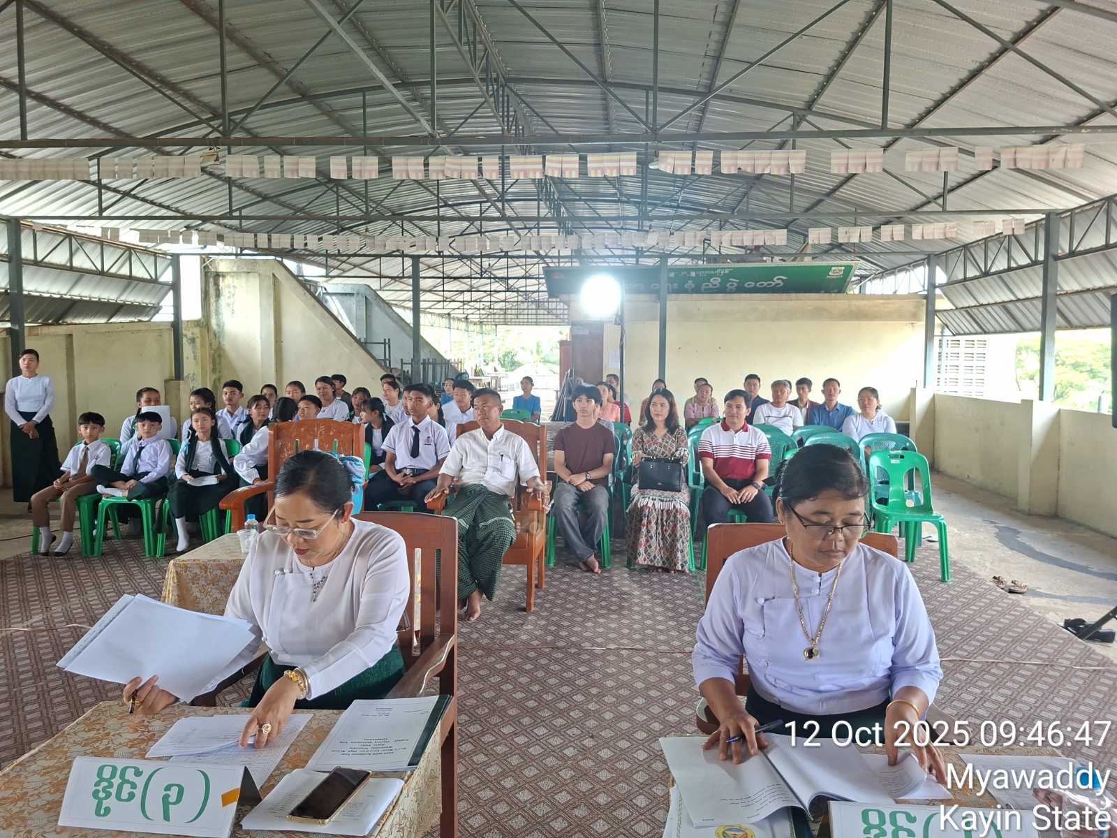 ကရင်ပြည်နယ်၊မြဝတီခရိုင်၊မြဝတီမြို့ရှိ အမှတ်(၁)အခြေခံပညာအထက်တန်းကျောင်းတွင် အောက်တိုဘာ ၁၂ ရက်နေ့ နံနက် ၉ နာရီက၂၀၂၅-၂၀၂၆ ပညာသင်နှစ်အလယ်တန်းအဆင့် အင်္ဂလိပ်စာ၊ သင်္ချာစွမ်းရည်ပြိုင်ပွဲများကို ကျင်းပပြုလုပ်ခဲ့သည်။