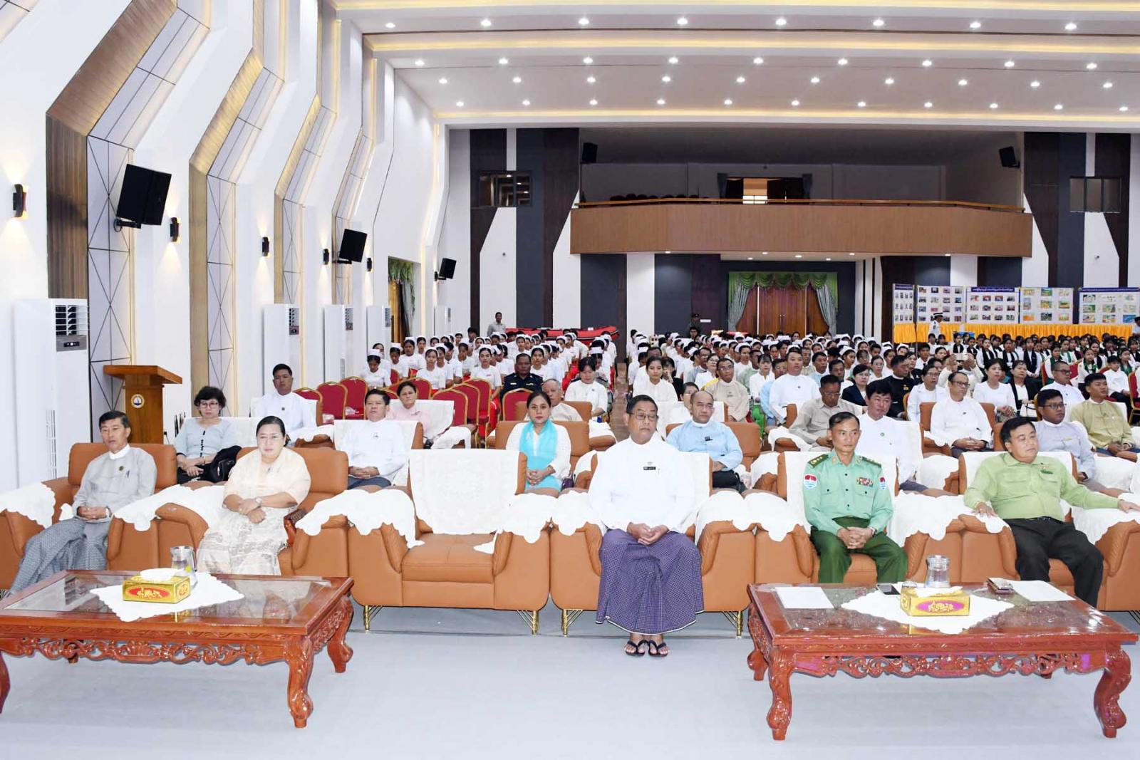 အခမ်းအနားတွင် တိုင်းဒေသကြီးအစိုးရအဖွဲ့ သယံဇာတရေးရာဝန်ကြီးဦးခင်မောင်မြင့်က ဘေးအန္တရာယ်ဆိုင်ရာ စီမံခန့်ခွဲမှုလုပ်ငန်းများကို ဆောင်ရွက်ရာတွင် ဘေးမဖြစ်မီ၊ ဘေးဖြစ်ပွားနေစဉ်နှင့် ဘေးဖြစ်ပွားပြီးနောက်ဟူ၍ အပိုင်း(၃)ပိုင်းခွဲပြီး ဆောင်ရွက်လျက်ရှိကြောင်း၊ ဘေးမဖြစ်မီအချိန်တွင် မိမိဒေသအတွင်း ဆောင်ရွက်နေရသောကဏ္ဍများနှင့်စပ်လျဉ်း၍ ကြိုတင်ပြင်ဆင်ခြင်း၊ ကြိုတင်ကာကွယ်ခြင်းများ၊ ဘေးဖြစ်ပွားနေစဉ်ကာလအတွင်း အရေးပေါ်ရှာဖွေကယ်ဆယ်ရေးလုပ်ငန်းများဆောင်ရွက်ပြီး စားရေရိက္ခာများပေးအပ်ခြင်း၊ ကျန်းမာရေးစောင့်ရှောက်မှုပေးခြင်း၊ ဘေးဖြစ်ပွားပြီးချိန်တွင် ဘေးအန္တရာယ်ကြောင့် ပျက်စီးသွားသည့်အခြေခံအဆောက်အအုံများ၊လမ်းတံတား၊ ဆက်သွယ်ရေးစနစ်များ၊ ဆည်မြောင်း/တာတမံများ ပြန်လည်ထူထောင်ခြင်းနှင့် ပြန်လည်တည်ဆောက်ခြင်းများ ပါဝင်ကြောင်း၊ ယခု ၂၀၂၅ ခုနှစ် ကျင်းပသော (International Day for Disaster RiskReduction - IDDRR) သည် ဘေးအန္တရာယ်ဆိုင်ရာစီမံခန့်ခွဲမှု လျှော့ချနိုင်ရေးအတွက်ရန်ပုံငွေများ တိုးမြှင့်ရန်၊ အများပြည်သူဆိုင်ရာ ဖွံ့ဖြိုးရေးနှင့်ပုဂ္ဂလိကကဏ္ဍဆိုင်ရာ ရင်းနှီးမြှုပ်နှံမှုများတွင် ဘေးဖြစ်နိုင်ခြေများကို ထည့်သွင်းစဉ်းစားကာဘေးဒဏ်ခံနိုင်ရည်ရှိစေရန်ရည်ရွယ်ပြီး “Fund Resilience, Not Disasters" “ဘေးဒဏ်ကြံ့ကြံ့ခံနိုင်ရေး၊သုံးစွဲဘဏ္ဍာတိုးမြှင့်ပေး”ဟူသောဆောင်ပုဒ်နှင့်အညီ ကျင်းပလျက်ရှိကြောင်း၊ ဘေးအန္တရာယ်ဆိုင်ရာ စီမံခန့်ခွဲမှုလုပ်ငန်းစဉ်များဆောင်ရွက်ရာတွင် ပြည်သူများ၏ လူ့စွမ်းအားအရင်း အမြစ်များဖွံ့ဖြိုးတိုးတက်စေရေးကူညီခြင်း၊ အခြေခံအခွင့်အရေးများဖြစ်သည့် ပညာရေး၊ ကျန်းမာရေး စောင့်ရှောက်မှုရရှိစေရေး၊ သဘာဝဘေးကြုံတွေ့ချိန်တွင် ကြံ့ကြံ့ခံရင်ဆိုင်နိုင်ရန်စနစ်တကျဆောင်ရွက်သွားရမှာဖြစ်ကြောင်း၊ ပြည်သူ များအနေဖြင့်လည်း ပါဝင်ပူးပေါင်းဆောင်ရွက်နိုင်ရေး တိုက်တွန်းလို ကြောင်း၊ သဘာဝဘေးနှင့်အတူ ယှဉ်တွဲနေထိုင်ရသည့်အတွက် ပြည်သူများအနေဖြင့်ဘေးအန္တရာယ် ဖြစ်ပွားမှုဆိုင်ရာ အသိပေးချက်များ၊ သတင်းအချက်အလက်များကို လက်လှမ်းမီသိရှိနိုင်စေရေး လိုအပ်ကြောင်း၊ မြစ်ရေကြီးမှုအပါအဝင် သဘာဝဘေးအန္တရာယ်ကျရောက်နိုင်ခြေရှိသော နေရာဒေသများမှာလည်း အချိန်မီသိရှိနိုင်ရန်လိုအပ်ကြောင်း၊ ဒါမှသာ သဘာဝဘေး၏ သက်ရောက်မှုကို ကြိုတင် ကာကွယ်နိုင်မှာဖြစ်ကြောင်း၊ နောင်အနာဂတ်တွင်လည်း ပိုမိုကောင်းမွန်သော လူမှုအသိုက်အဝန်း ဖြစ်ပေါ်လာစေရေးအတွက် ဝိုင်းဝန်းကြိုးပမ်းဆောင်ရွက် သွားကြရန်လိုအပ်ကြောင်း ပြောကြားသည်။
