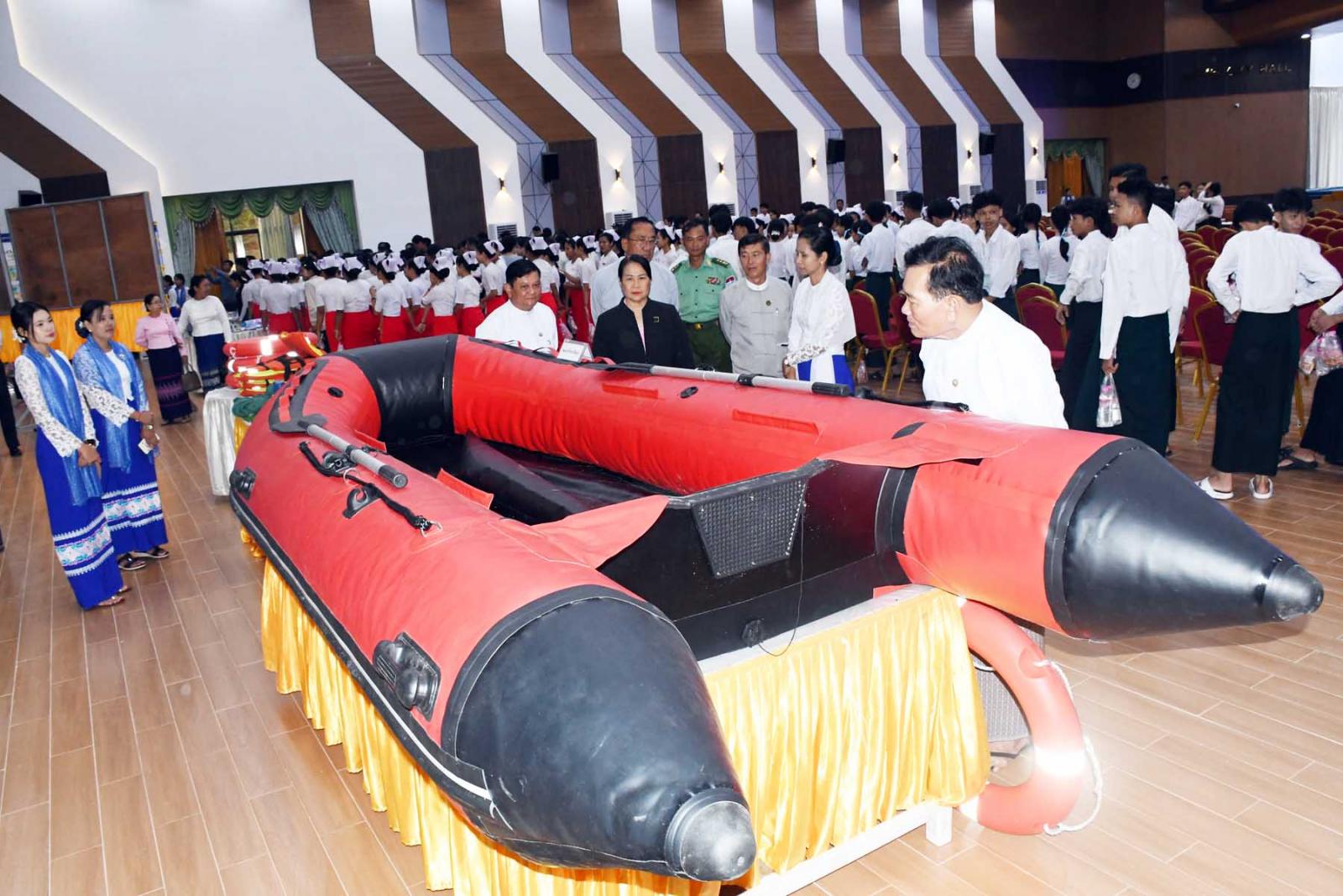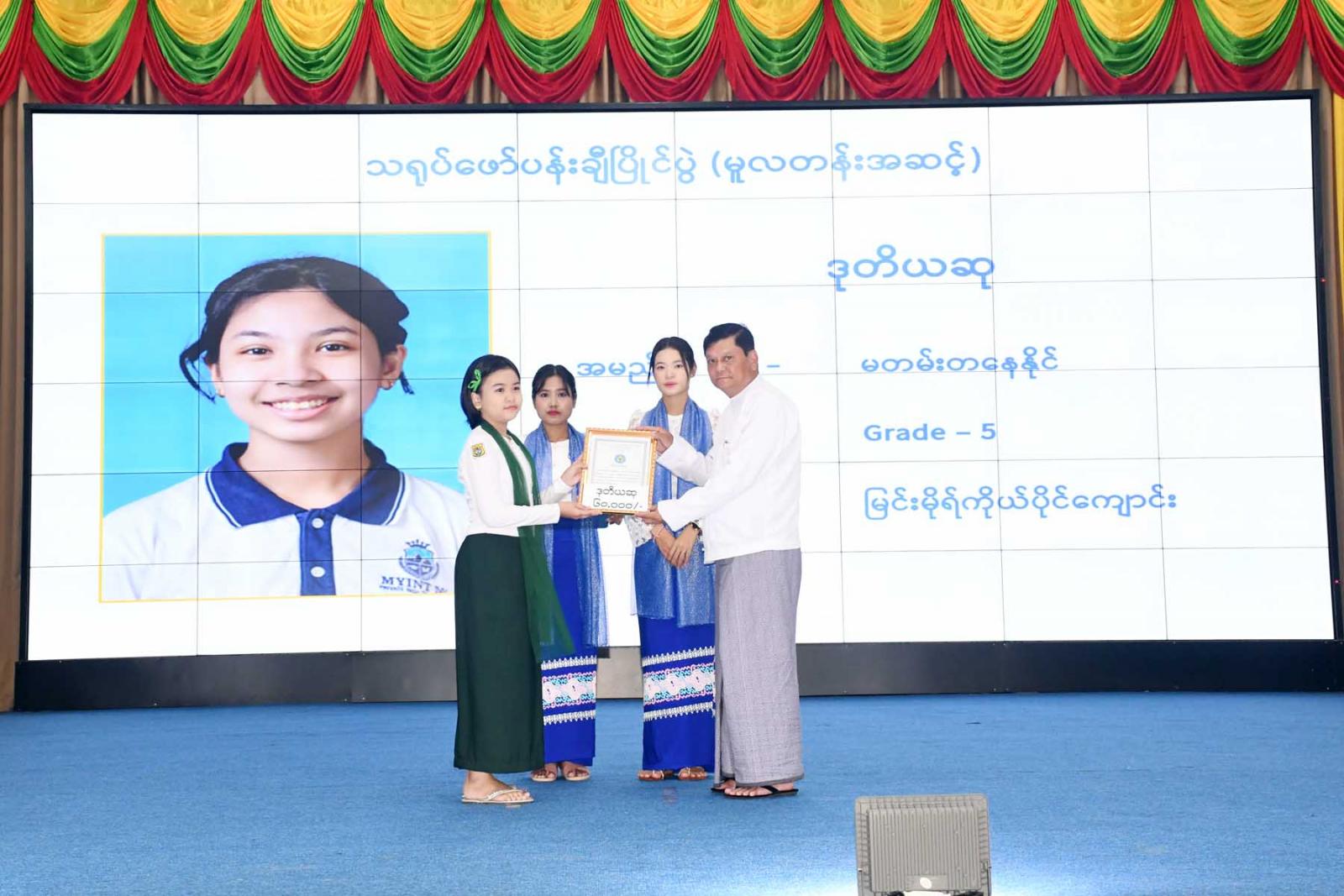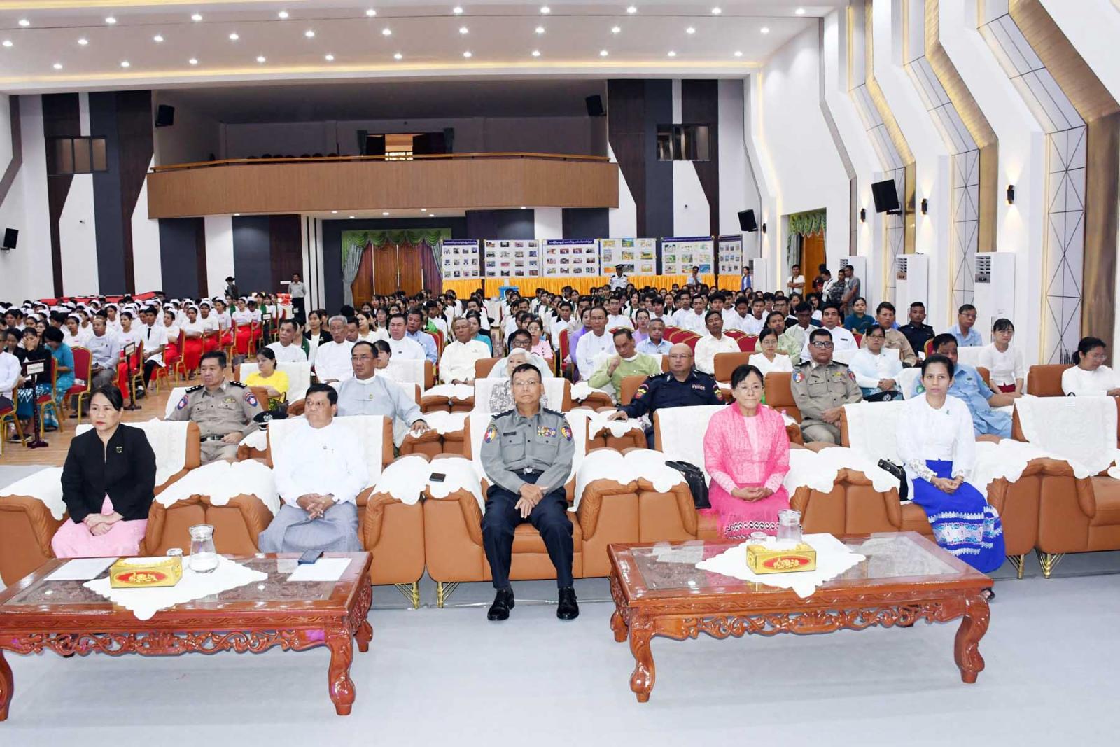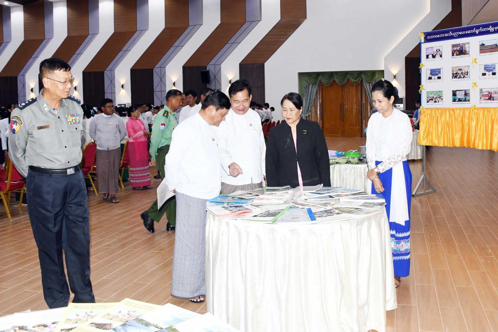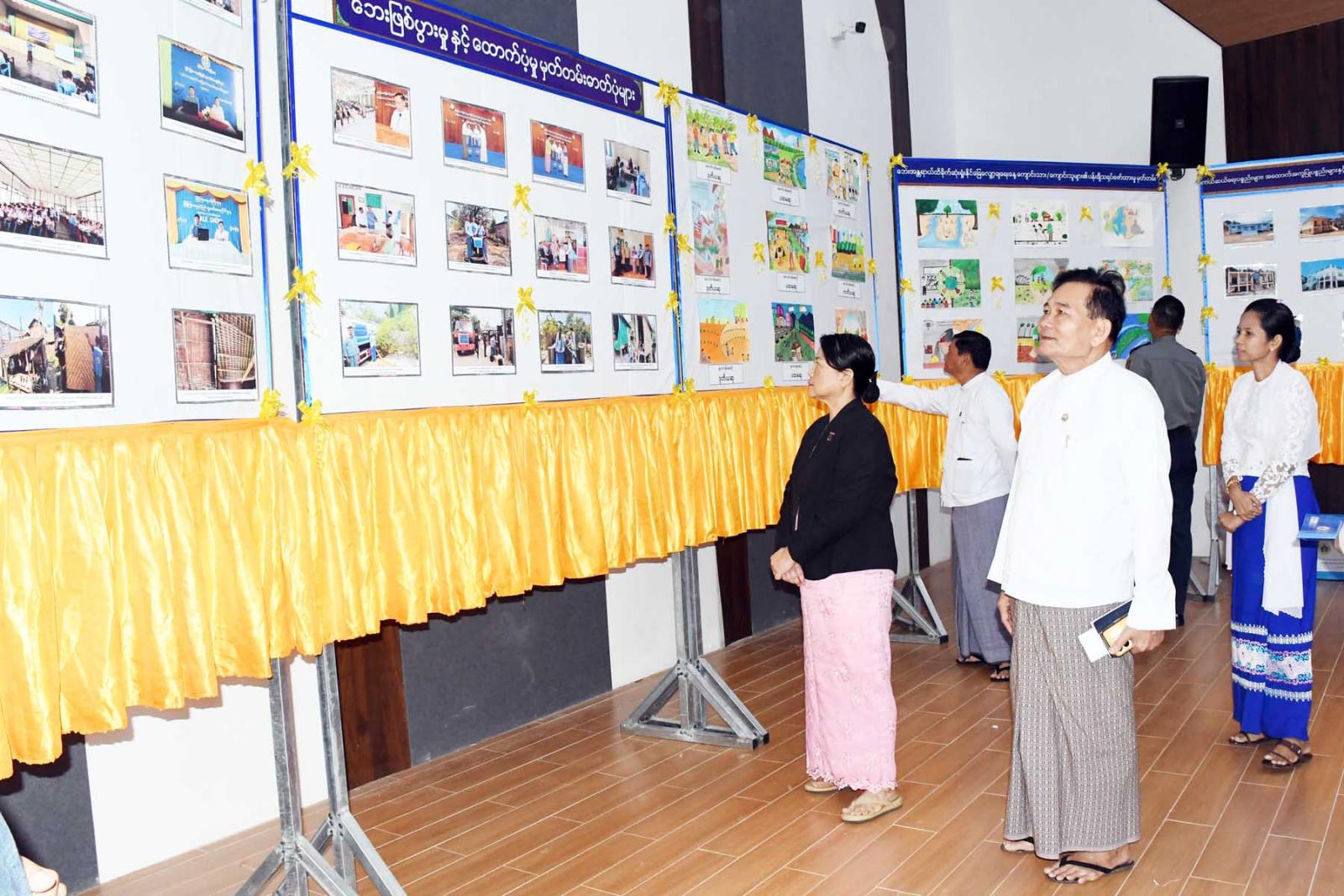 ဆက်လက်၍ တိုင်းဒေသကြီးတရားလွှတ်တော်တရားသူကြီး ချုပ်ဒေါ်ပိုက်ပိုက်အေး၊ တိုင်းဒေသကြီး အစိုးရအဖွဲ့ သယံဇာတရေးရာဝန်ကြီးဦးခင်မောင်မြင့်၊ တိုင်းဒေသကြီးအစိုးရအဖွဲ့ လမ်းပန်းဆက်သွယ်ရေးဝန်ကြီးဦးအောင်ဇော်လှိုင်တို့က “အပြည်ပြည်ဆိုင်ရာ သဘာဝ ဘေးအန္တရာယ် ထိခိုက်ဆုံးရှုံးနိုင် ခြေလျှော့ချရေးနေ့” အထိမ်းအမှတ် အခြေခံပညာအထက် တန်းအဆင့်၊ အလယ်တန်းအဆင့်နှင့် မူလတန်းအဆင့် သရုပ်ဖော်ပန်းချီပြိုင်ပွဲတွင် ပထမ၊ ဒုတိယ၊ တတိယ ဆုရရှိသူများအား ဆုချီးမြှင့်ပြီး အထိမ်းအမှတ်ပြခန်းအားလှည့်လည်ကြည့်ရှုအားပေးကြကြောင်း သိရသည်။
