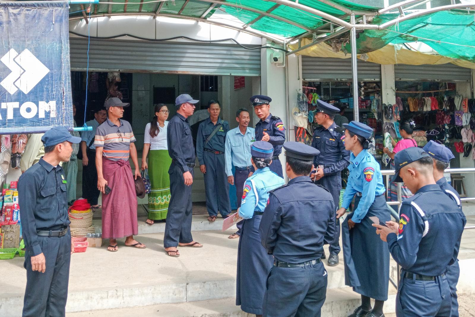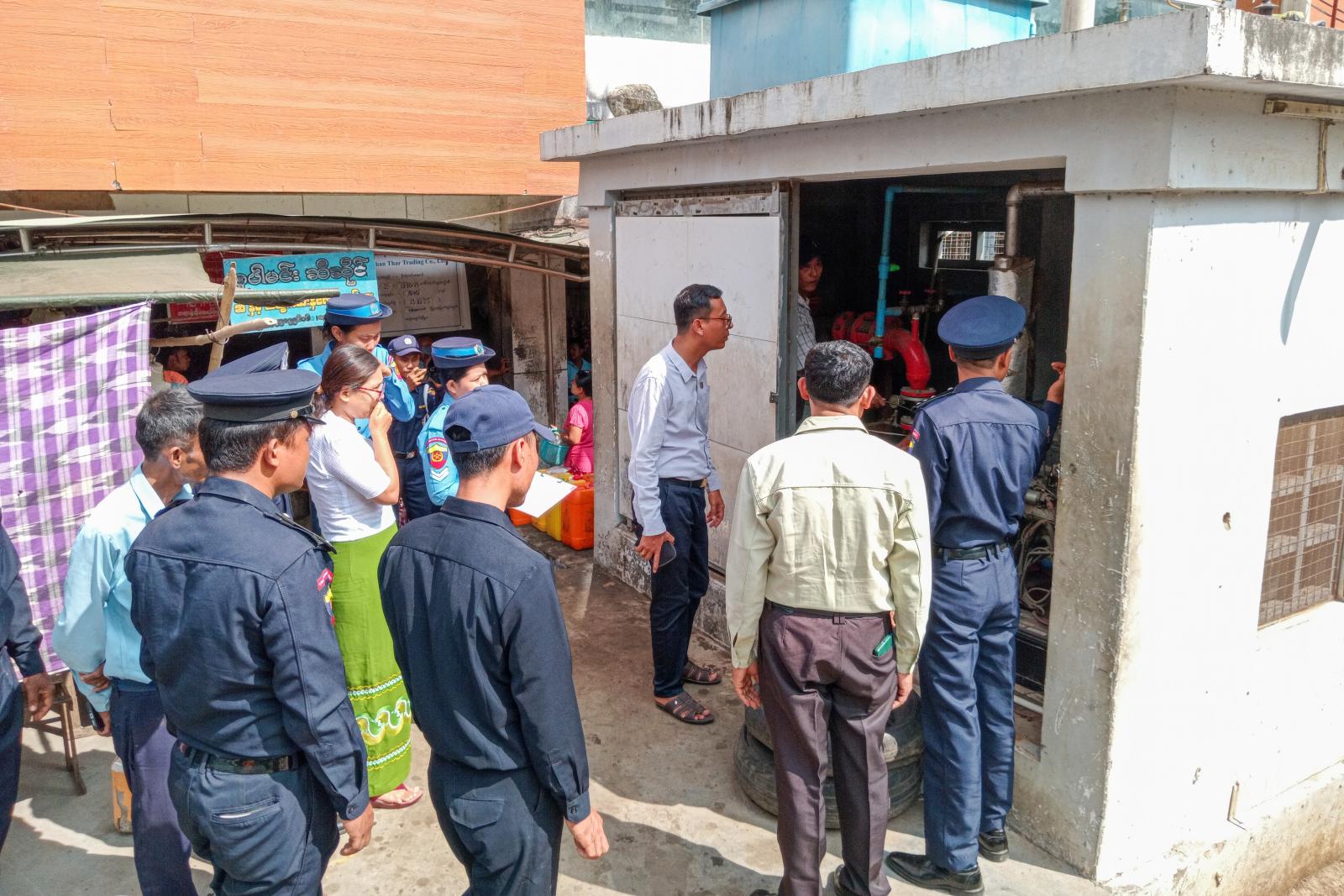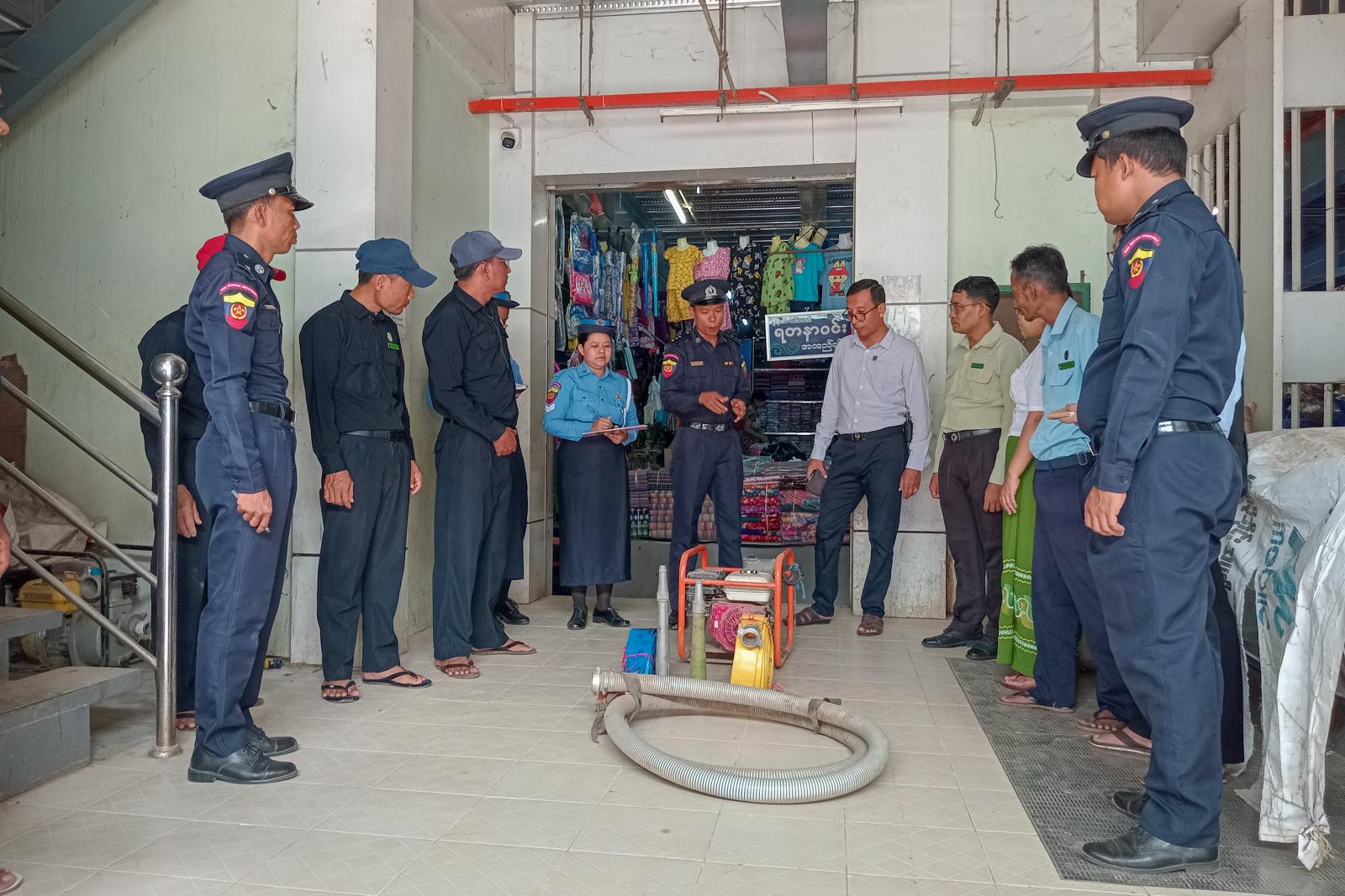 မီးဘေးလုံခြုံရေးစစ်ဆေးရာတွင် မြို့နယ်မီးသတ်ဦးစီးမှူး ဦးကြည်စိုးဟန်နှင့်တပ်ဖွဲ့ဝင်များ၊ ဒုတိယမြို့နယ်အုပ်ချုပ်ရေးမှူး ဦးကျော်ညွန့်၊ မြို့နယ်လျှပ်စစ်အင်ဂျင်နီယာ ဦးဇော်ဇော်အောင်၊ မြို့နယ်စည်ပင်သာယာရေးအဖွဲ့ ဦးစီးအရာရှိ ဦးအောင်ဘိုလင်းနှင့် ဈေးတာဝန်ခံများ၊ ဈေးကော်မတီဝင်များပူးပေါင်းကာ မြို့မဈေးကြီးနှင့် ပတ်ဝန်းကျင်ရှိ ဈေးဆိုင်ခန်းများအား မီးလောင်မှု၊ မီးလန့်မှုမဖြစ်ပွားစေရေး စနစ်တကျမီးသုံးစွဲမှုရှိ မရှိ၊ လျှပ်စစ်ဝါယာကြိုးများ စနစ်တကျသွယ်တန်းထားရှိမှုရှိ မရှိ၊ မီးလောင်လွယ်သည့်ပစ္စည်းများ သိုလှောင်မှုရှိ မရှိတို့ကို လိုက်လံစစ်ဆေးကာ မီးသတ်ဆေးဘူးနှင့် မီးချိတ်၊ မီးကပ်၊ ရေပုံး၊ သဲပုံးများ အသင့်ဆောင်ရွက်ထားရှိရေး၊ ရေလှာင်ကန်များတွင် ရေဖြည့်တင်းထားရှိရေးနှင့် မီးဘေးလုံခြုံရေးလိုက်နာဆောင်ရွက်ရမည့်အချက်များကို ဆွေးနွေးမှာကြားသည်။ ထို့နောက် မြို့မဈေးကြီးရှိ အရေးပေါ်မီးသတ်ရေပိုက်များ၊ မီးသတ်စက်များနှင့် ရေငုတ်များ ကောင်းမွန်မှုရှိ၊မရှိ စစ်ဆေးပြီး မီးသတ်ရေလှောင်ကန်အတွင်း ရေဖြည့်တင်းထားရှိမှုများကို စစ်ဆေးဆောင်ရွက်ခဲ့ကြောင်း သိရသည်။