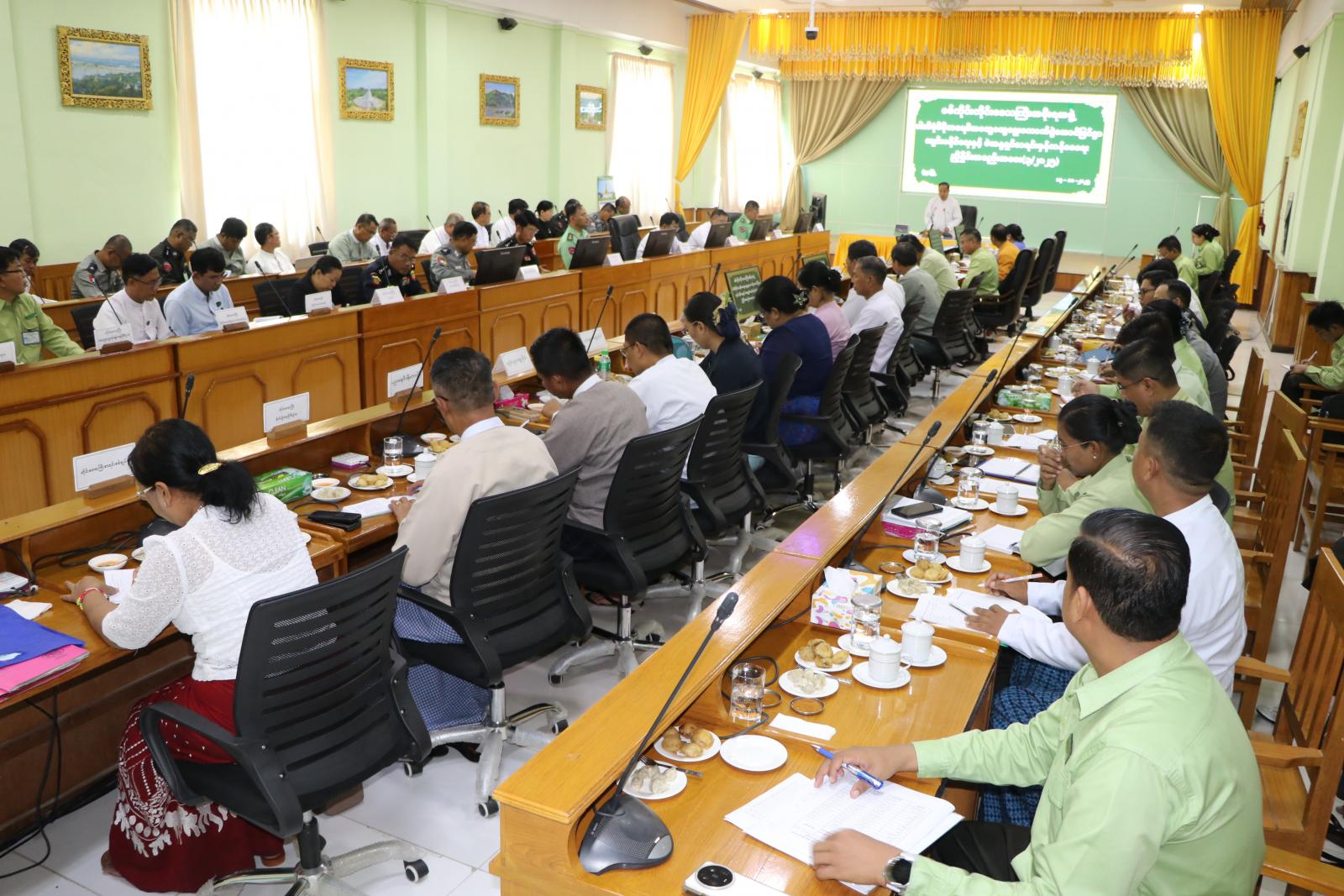 ဦးစွာ တိုင်းဒေသကြီးဝန်ကြီးချုပ် ဦးမြတ်ကျော်က ပြည်ထောင်စုရွေးကောက်ပွဲကော်မရှင်အနေဖြင့် နိုင်ငံ့ဝန်ထမ်းများအပါအဝင် ပြည်သူများနှင့် မဲဆန္ဒရှင်များ မဲပေးခွင့် ဆုံးရှုံးမှုမရှိအောင် ကြေညာချက်ထုတ်ပြန်ဆောင်ရွက်ခြင်းများအား ဝန်ကြီးဌာနများသို့ အကြောင်းကြားပြီး ဆောင်ရွက်နေသကဲ့သို့ မိမိတို့တိုင်းဒေသကြီး အစိုးရအဖွဲ့အနေဖြင့်လည်း အနီးကပ်ကြပ်မတ်ပြီး လိုအပ်ချက်များအား တာဝန်ရှိသူများနှင့်ဝိုင်းဝန်းပူးပေါင်း ဆောင်ရွက်ပေးသွားမည်ဖြစ်ပါကြောင်း၊ မဲဆန္ဒရှင်စာရင်းများ ကပ်ထားကြေညာခြင်းအား နိုဝင်ဘာလတွင် ဒုတိယအကြိမ်အဖြစ် ထပ်မံကပ်ထားကြေညာသွားမည်ဖြစ်သည့်အတွက် အမှန်တကယ်ပါဝင်သင့်သည့် မဲဆန္ဒရှင်စာရင်းများ ကျန်ရှိမှုမရှိစေရေး၊ မပါသင့်သည့် စာရင်းများ ပါရှိမှုမရှိစေရေးနှင့် အချက်အလက် မှားယွင်းခြင်းများအား ယခုပထမအကြိမ် ကပ်ထားကြေညာစဉ်ကပင် သေချာစီစစ်ကာ နောက်တစ်ကြိမ် ကပ်ထားကြေညာမည့်စာရင်းတွင် ပြည့်စုံမှန်ကန်မှုရှိစေရေးတို့အတွက် အလေးထားသတိပြု ဆောင်ရွက်သွားကြရန် လိုအပ်ပါကြောင်း၊ မဲစာရင်းမှန်ကန်ရန် သက်ဆိုင်ရာ အထွေထွေအုပ်ချုပ်ရေးဦးစီးဌာန၊ လူဝင်မှုကြီးကြပ်ရေးနှင့်ပြည်သူ့အင်အားဝန်ကြီးဌာနနှင့် ကော်မရှင်အဖွဲ့များသာမက တာဝန်ရှိသူအားလုံးမှ ပူးပေါင်းဆောင်ရွက်သွားကြ ရန်လိုအပ်ပါကြောင်း၊ ရွေးကောက်ပွဲနီးကပ်လာသည်နှင့်အမျှ လုံခြုံရေးပိုင်းဆိုင်ရာ လုပ်ငန်းများဆောင်ရွက်ရာတွင်လည်း မပေါ့မလျော့ဘဲ ဝိုင်းဝန်းပူးပေါင်း ဆောင်ရွက်သွားကြရန်နှင့် တိုင်းဒေသကြီး အတွင်းရွေးကောက်ပွဲအောင်မြင်စွာ ကျင်းပနိုင်ရေး တာဝန်ရှိသူအားလုံးက ညီညီညွတ်ညွတ်ဖြင့် ဝိုင်းဝန်းဆောင်ရွက်ကာ နိုင်ငံတော်၏ အမျိုးသားရေးတာဝန်အား ကျေပွန်စွာ ထမ်းဆောင်သွားကြရန်လိုအပ်ပါကြောင်း ပြောကြားခဲ့သည်။