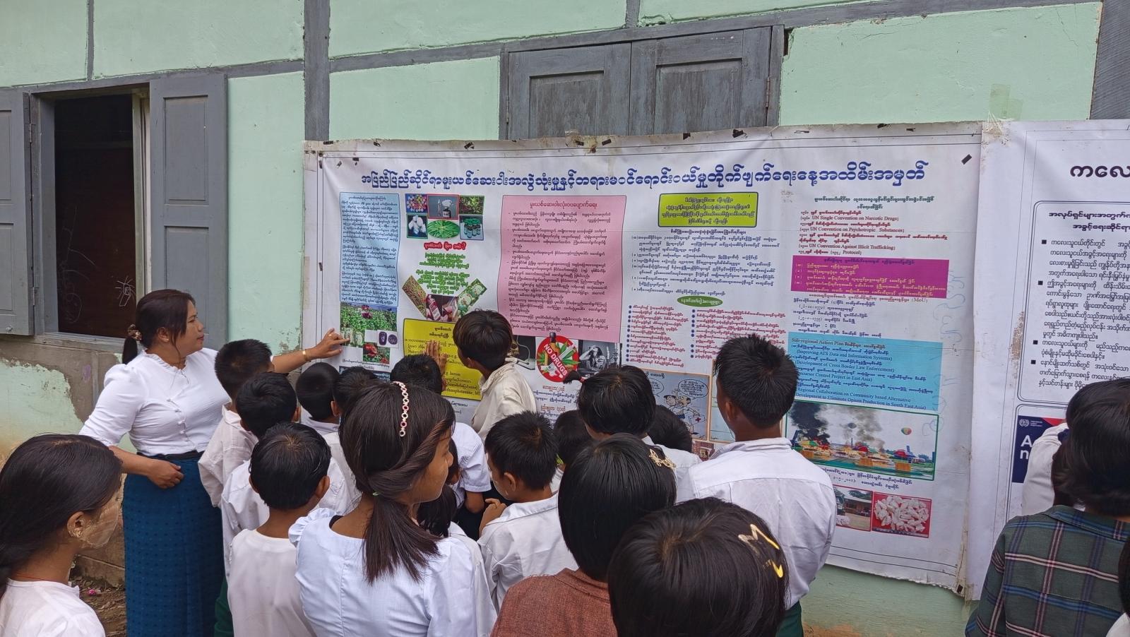ဆက်လက်၍ ပြန်ကြားရေးနှင့်ပြည်သူ့ဆက်ဆံရေးဦးစီးဌာနဝန်ထမ်းများမှ စာဖတ်ရှိန်မြှင့်တင်ရေးလုပ်ငန်းအဖြစ် ကျောင်းသား၊ ကျောင်းသူလေးများအား ရုပ်ပုံစာအုပ်များဖြင့် ပုံပြောခြင်း၊ အသိပညာဗဟုသုတရရှိစေမည့် စာအုပ်စာစောင်များကိုဖတ်ရှုစေခြင်းနှင့် အသိပညာပေးနံရံကပ်စာစောင်များပြသခြင်းတို့ ဆောင်ရွက်ခဲ့ကြောင်း သိရသည်။