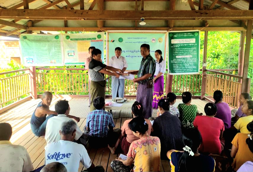 ဆက်လက်၍ စီမံကိန်းတာဝန်ခံ ဝန်ထမ်းများက ချေးငွေထုတ်ချေးရာတွင် လိုက်နာရမည့် စည်းမျဉ်း၊ စည်းကမ်းများကို ရှင်းလင်းပြောကြားပြီး ဦးစီးအရာရှိ ဒေါ်ပြည့်ဖြိုးကျော်က မြစိမ်းရောင်ကျေးရွာစီမံကိန်းလုပ်ငန်းအဖွဲ့ဝင်များထံ ရန်ပုံငွေများကို လွှဲပြောင်းပေးအပ်သည်။