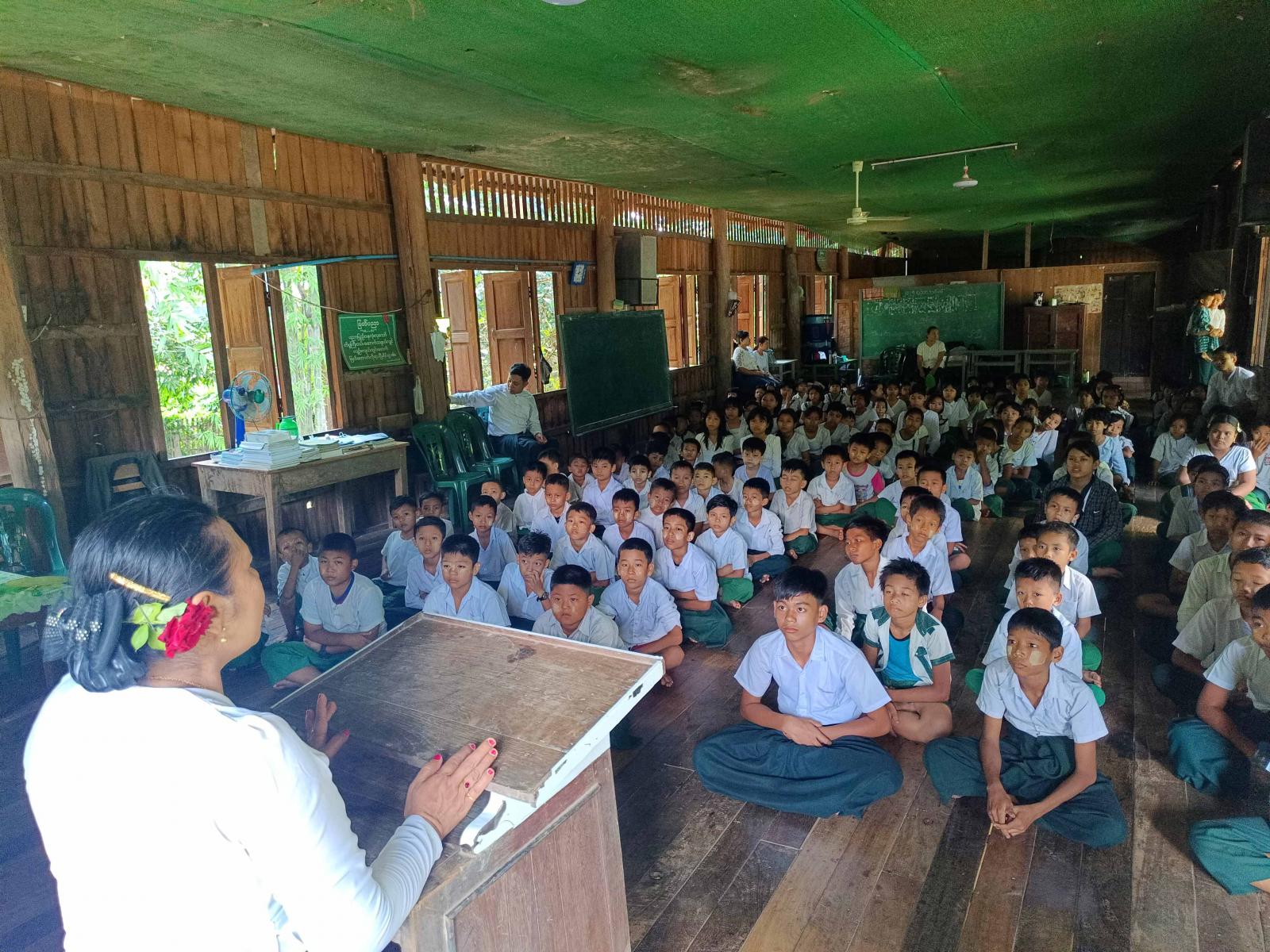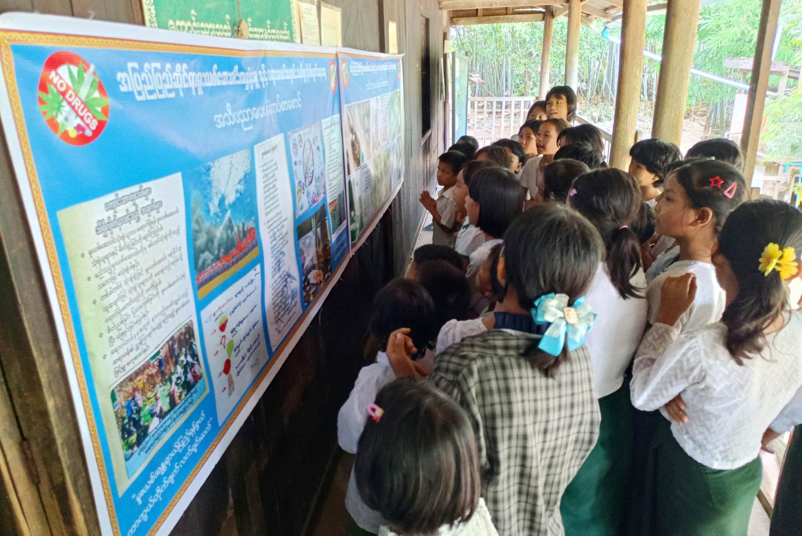 ယင်းနောက် မြို့နယ်ပြန်ကြားရေးနှင့်ပြည်သူ့ဆက်ဆံရေးဦးစီးဌာနမှ ခင်းကျင်းပြသထားသည့် စာအုပ်ပြပွဲနှင့် မူးယစ်အန္တရာယ်လူ့ရန်စွယ်၊ မူးယစ်ဆေးဝါး၏ဆိုးကျိုးများပါဝင်သော မူးယစ်ဆေးဝါးအန္တရာယ် အကြောင်းသိကောင်းစရာအသိပညာပေး နံရံကပ်စာစောင်များကို ကျောင်းသား၊ ကျောင်းသူများက စိတ်ပါဝင်စားစွာဖြင့် လေ့လာကြည့်ရှုခဲ့ကြကြောင်း သိရသည်။
