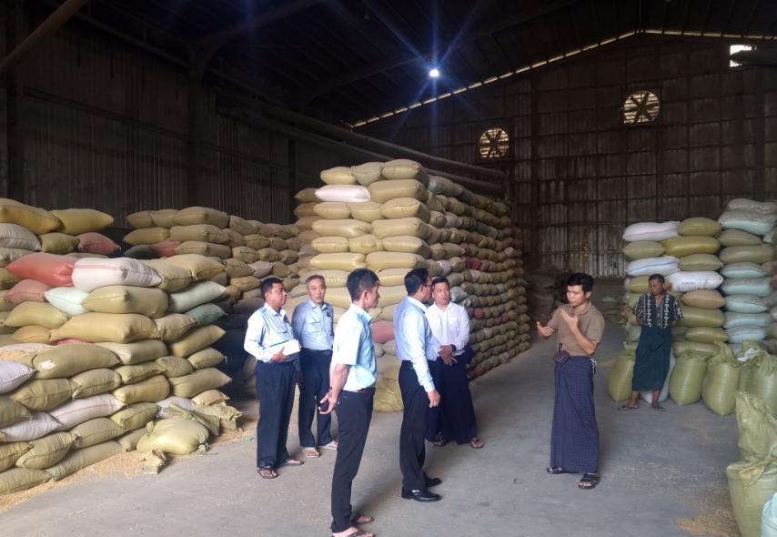 ယင်းနောက် စီးပွားရေးရာဝန်ကြီးနှင့်အဖွဲ့သည် မအူပင်မြို့နယ်၊ အိုင်ဝိုင်းကျေးရွာ၊ မအူပင်-မော်ကျွန်းကားလမ်းဘေးရှိ ဦးကျော်မင်းစိုးပိုင် ပြည့်ဖြိုးကြွယ်ဆန်စက်သို့သွားရောက်ပြီး ဆန်စက်လုပ်ငန်းလည်ပတ်မှုအခြေအနေများနှင့် ထင်း၊ မီးသွေးအစားထိုးသုံး စပါးခွံလောင်စာတောင့် ထုတ်လုပ်နေမှုအခြေအနေများအား ကြည့်ရှုအားပေးခဲ့သည်။
