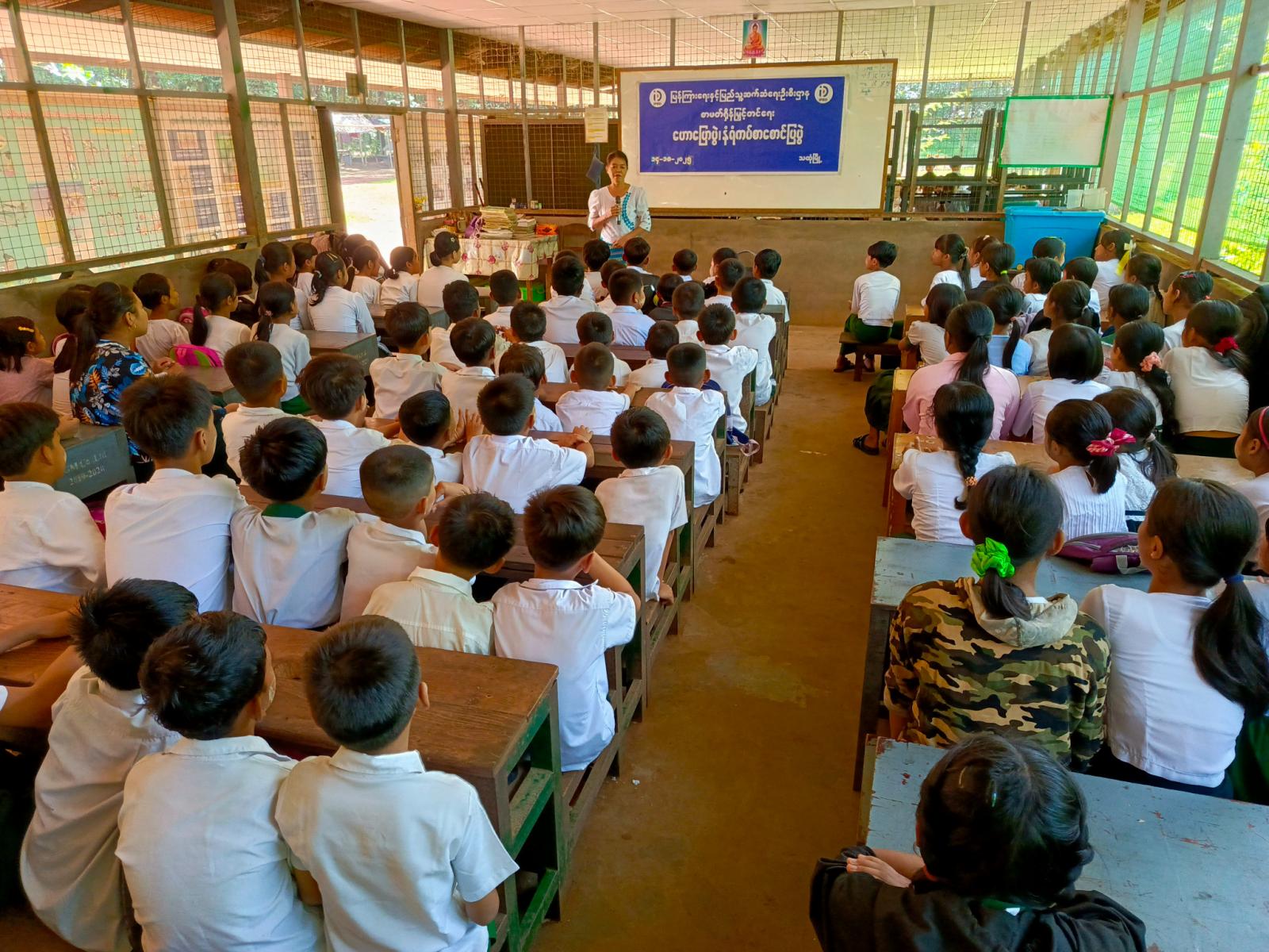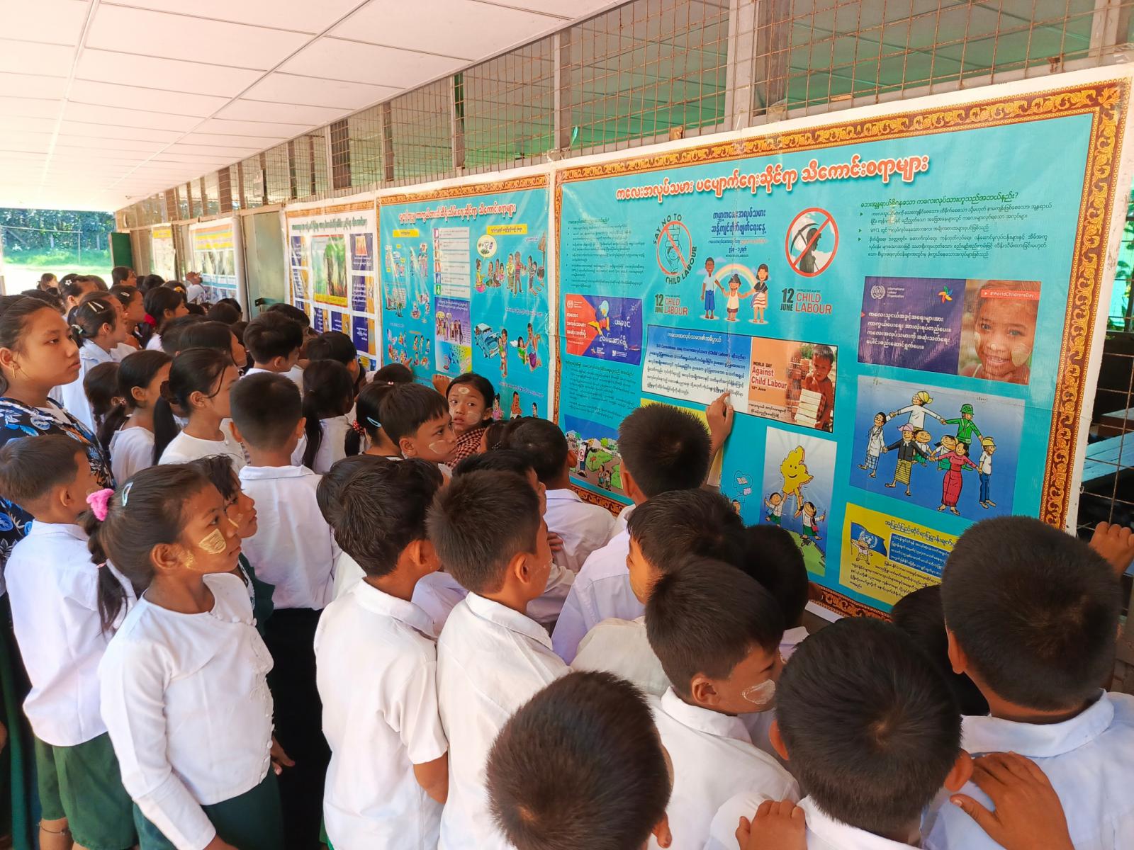 အဆိုပါ အသိပညာပေးလုပ်ငန်းတွင် ပြန်ကြားရေးနှင့်ပြည်သူ့ဆက်ဆံရေးဦးစီးဌာနမှ ကျောင်းသူ၊ ကျောင်းသားများ ဖတ်ရှုလေ့လာနိုင်ရန် ကလေးကဗျာများ၊ ရုပ်ပြပုံပြင်များ၊ စာစောင်များ စသည့် ကလေးများအသိပညာတိုးပွားရေး စာအုပ်၊ စာပေများနှင့် စာဖတ်ရှိန်မြှင့်တင်ရေး၊ လူကုန်ကူးမှုအန္တရာယ် သတိပြုကာကွယ်ရေး စသည့် အသိပညာပေး နံရံကပ်စာစောင်များကို ခင်းကျင်းပြသရာ ကျောင်းသား၊ ကျောင်းသူများမှ စိတ်ပါ၀င်စားစွာ ကြည့်ရှုလေ့လာခဲ့ကြောင်း သိရသည်။