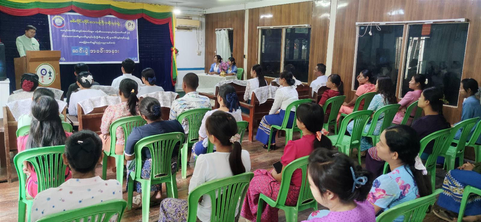 စစ်ကိုင်းတိုင်းဒေသကြီးအစိုးရအဖွဲ့တိုင်းဒေသကြီး ကလေးအလုပ်သမားပပျောက်ရေးကော်မတီ၏ အလုပ်အကိုင်အခွင့်အလမ်းများ ဖန်တီးပေးရေးလုပ်ငန်းကော်မတီနှင့်အသေးစား စက်မှုလက်မှုလုပ်ငန်းဦးစီးဌာနတို့ ပူးပေါင်းဖွင့်လှစ်သည့် အခြေခံစက်ချုပ်(အခမဲ့) သင်တန်းအမှတ်စဥ် (၂/၂၀၂၅)ဆင်းပွဲအခမ်းအနားကို ရွှေဘိုခရိုင်ပြန်ကြားရေးနှင့်ပြည်သူ့ဆက်ဆံရေးဦးစီးဌာန(Community Centre)ခန်းမတွင် ယမန်နေ့နံနက်ပိုင်းက ကျင်းပပြုလုပ်ခဲ့ကြောင်း သိရသည်။