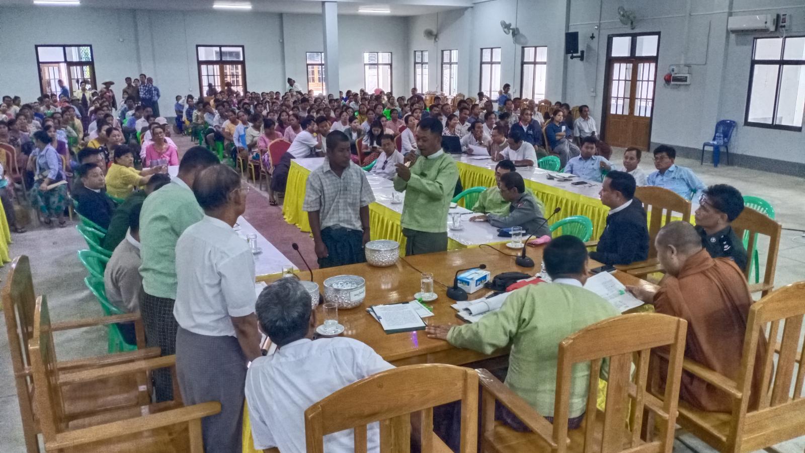 ရှေးဦးစွာ အမှတ်( ၃)ရပ်ကွက် သာသနာ့အလင်းရောင်ကျောင်းတိုက် ဦးစီးပဓာန နာယက ဆရာတော်(ငါးရာ့ငါးဆယ်ဆရာတော်) ဦးဝါသဝက ဩဝါဒစကားမိန့်ကြားပြီး ခရိုင်စီမံခန့်ခွဲရေး နှင့်အုပ်ချုပ်ရေးကော်မတီဥက္ကဋ္ဌ မြေကွက်ချထားရေးကော်မတီဥက္ကဋ္ဌ ဦးစောထွန်းဦးက မြေယာဖော် ထုတ်ရေးနှင့်မြေကွက်များချထားနိုင်ရေး ဆောင်ရွက်ခဲ့မှုအခြေအနေများကို ရှင်းလင်း ပြောကြားသည်။ ဆက်လက်၍ ကန့်ဘလူမြို့နယ် ကြေးတိုင်နှင့်မြေစာရင်းဦးစီးဌာန ဦးစီးအရာရှိ မြေကွက်ဖော်ထုတ်ရေး လုပ်ငန်းကော်မတီ အတွင်းရေးမှူး ဦးခင်ဇော်က မြေကွက်ဖော်ထုတ်ခဲ့မှုနှင့်ပတ်သက်၍ Power Point ဖြင့် ရှင်းလင်းတင်ပြသည်။ ထို့နောက် တာဝန်ရှိသူများက မဲစနစ်ဖြင့် တစ်ဦးချင်းမဲနှိုက်စေကာ ပေါက်မဲ မြေကွက်အလိုက်ချထားပေးမည် ဖြစ်ကြောင်း သိရသည်။