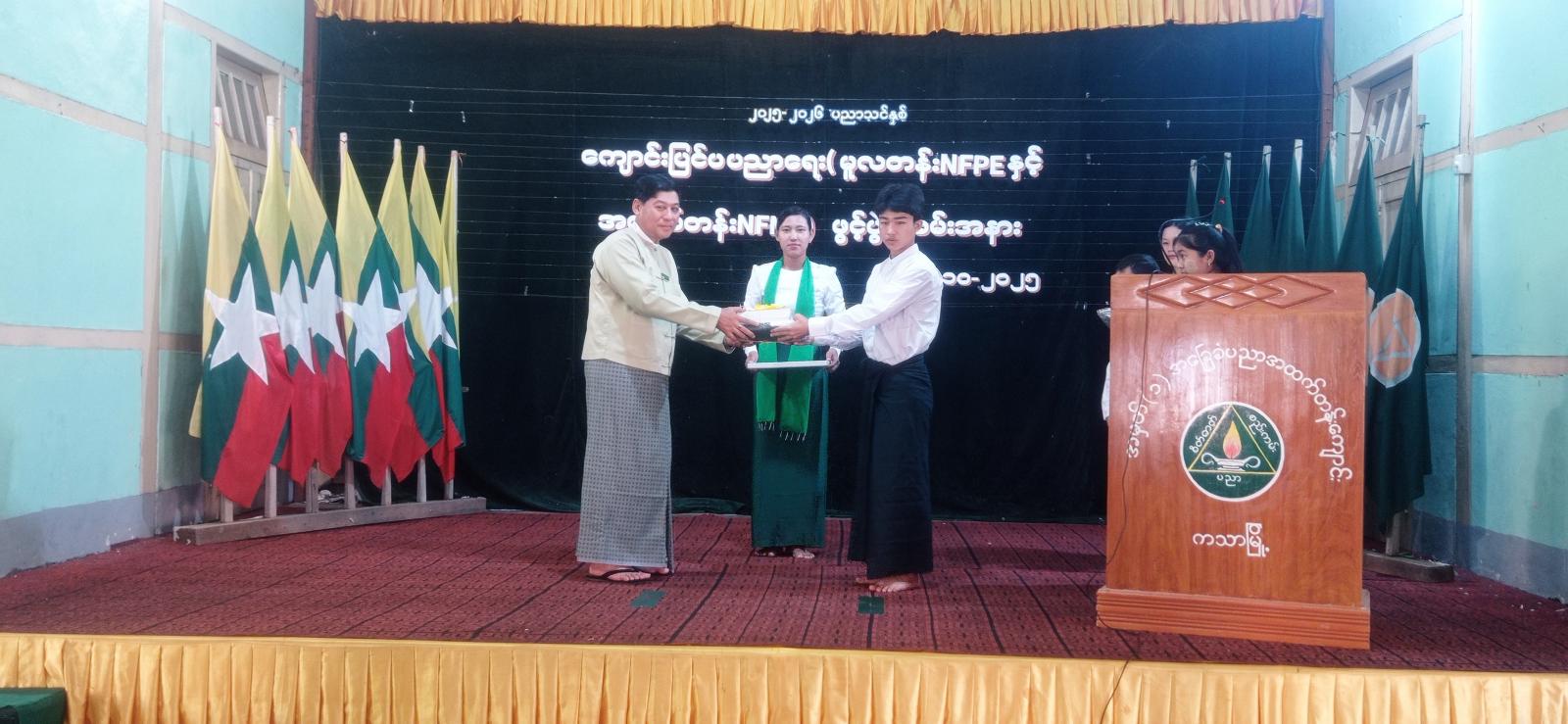 ထို့နောက် ခရိုင်စီမံခန့်ခွဲရေးနှင့် အုပ်ချုပ်ရေးကော်မတီဥက္ကဋ္ဌ ဦးကျော်စွာထွန်းနှင့် အဖွဲ့ဝင်များ၊ တာဝန်ခံ ခရိုင်ပညာရေးမှူးဦးမြင့်စိုးတို့က ကျောင်းပြင်ပ ပညာရေးကို သင်ယူကြမည့်ကျောင်းသား/ ကျောင်းသူများအား အခမဲ့ဗလာစာအုပ်နှင့်ကျောင်းဝတ်စုံများ ထောက်ပံ့ပေးအပ်ခဲ့ကြကြောင်းနှင့် ခရိုင်/ မြို့နယ်စီမံ ခန့်ခွဲရေးနှင့်အုပ်ချုပ်ရေးကော်မတီဥက္ကဋ္ဌနှင့်အဖွဲ့ဝင်များ၊ ခရိုင်/မြို့နယ်အဆင့် ဌာနဆိုင်ရာတာဝန်ရှိသူများ၊ ခရိုင်/မြို့နယ်လူမှုရေးအသင်းအဖွဲ့ဝင်များ၊ မြို့နယ်အတွင်းရှိ ကျောင်းသားမိဘများ စုစုပေါင်း (၁၇၀)ဦးခန့်တက်ရောက်ခဲ့ကြကြောင်း သိရသည်။