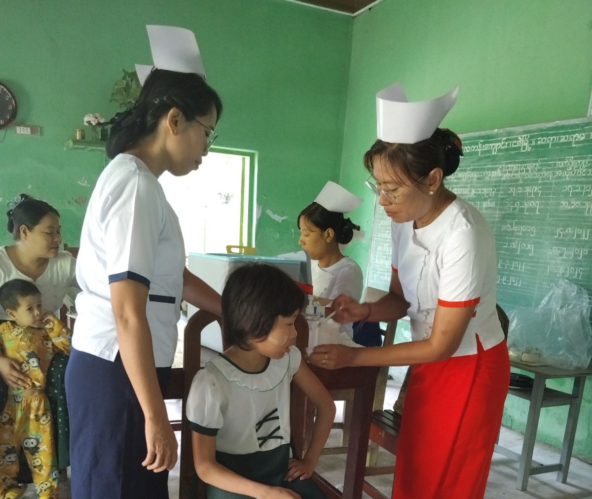 ထို့နောက် ကျန်းမာရေးဝန်ထမ်းများက အသက်၉နှစ်မှ ၁၀နှစ်အရွယ် ကျောင်းသူများကို ကျန်းမာရေးစစ်ဆေးပေးခြင်းများ ဆောင်ရွက်ပေးခဲ့ပြီး သားအိမ်ခေါင်းကင်ဆာရောဂါ ကာကွယ်ဆေးထိုးနှံပေးကာ အသက်ငါးနှစ်ပြည့်ပြီး ခုနှစ်နှစ်မကျော်သော ကျောင်းသား၊ ကျောင်းသူများအား ဆုံဆို့မေးခိုင်ရောဂါကာကွယ်ဆေး DT ဆက်လက်ထိုးနှံပေးခဲ့သည်။