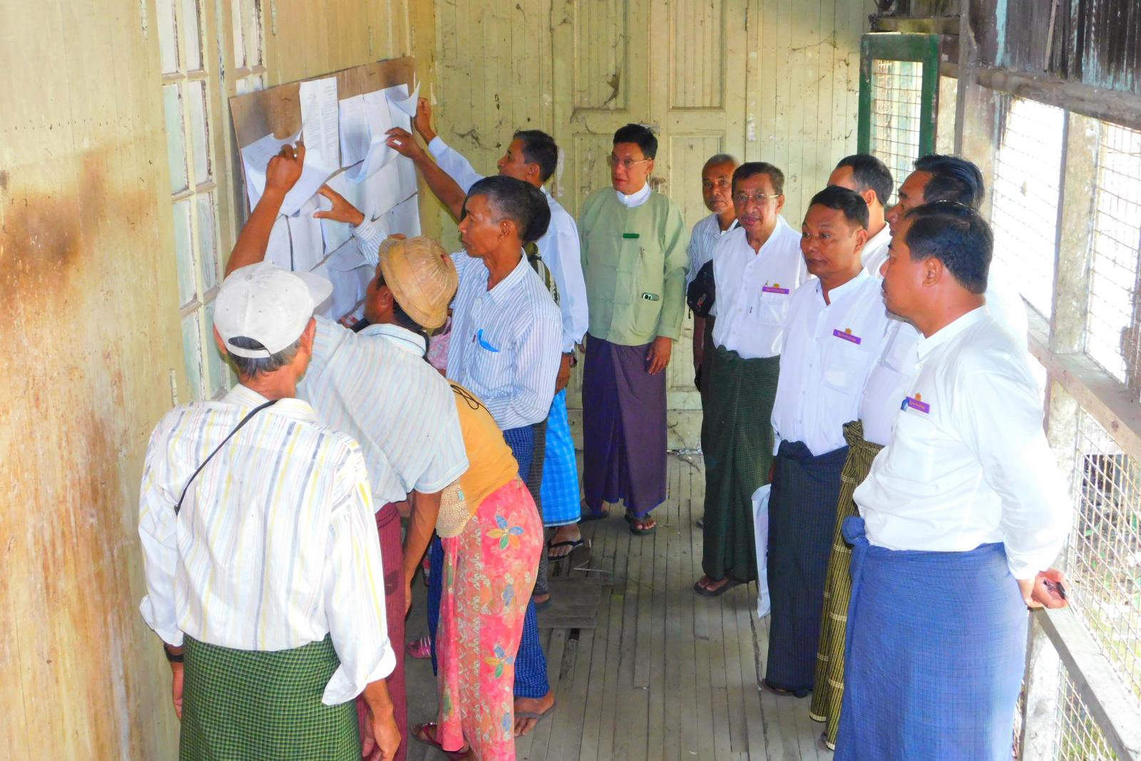 ကွင်းဆင်းကြည့်ရှုစစ်ဆေးရာတွင်လည်း မြို့နယ်စီမံခန့်ခွဲရေးနှင့်အုပ်ချုပ်ရေးကော်မတီဥက္ကဋ္ဌ ဦးနိုင်နိုင်ဦးနှင့်အဖွဲ့ဝင်များ၊ မြို့နယ်ရွေးကောက်ပွဲကော်မရှင်အဖွဲ့ခွဲဥက္ကဋ္ဌနှင့် အဖွဲ့ဝင်များက လှည်းဆိပ်ကျေးရွာအုပ်စု၊ တော်လတဲ့ကျေးရွာအုပ်စု၊ ကုန်းလှည်းဆိပ်ကျေးရွာအုပ်စု၊ ရွှေကြာဗျိုက်ကျေးရွာအုပ်စုနှင့်ကြာအင်း ကျေးရွာအုပ်စု အတွင်းရှိကျေးရွာများတို့တွင် မဲစာရင်းကပ်ထားကြေညာထားရှိမှုကို ပြည်သူများလာရောက် ကြည့်ရှု့မှုအခြေအနေများနှင့် သတ်မှတ်မဲရုံတည်နေရာများကို လှည့်လည်ကြည့်ရှုစစ်ဆေးခဲ့ကြောင်း သိရသည်။