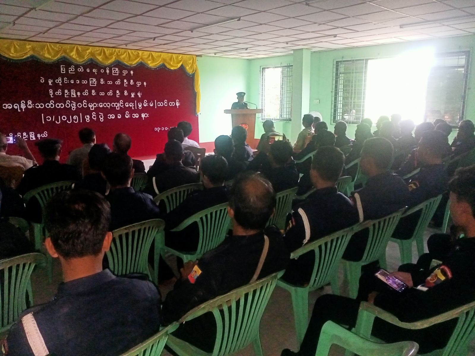 ဆက်လက်၍ ဒိုက်ဦးမြို့နယ်၊ မြို့နယ်မီးသတ်ဦးစီးမှူးရုံးမှ၊ မြို့နယ်မီးသတ်ဦးစီးမှူး၊ ဦးစီးအရာရှိ ဦးချမ်းမြေ့ထွန်းမှ သင်တန်းဖွင့်လှစ်ရခြင်း၏ ရည်ရွယ်ချက်၊ ရည်မှန်းချက်များအား ရှင်းလင်းပြောကြားကာ အခမ်းအနားရုပ်သိမ်းခဲ့ပါသည်။