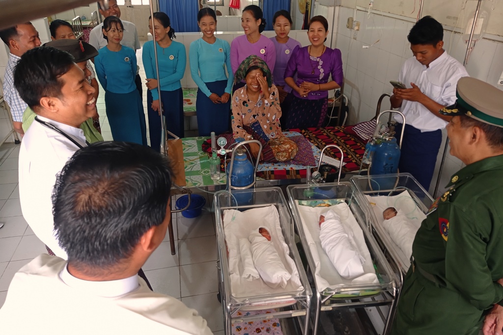 မကွေးတိုင်းဒေသကြီး ဂန့်ဂေါမြို့နယ် ရေရှင်ကျေးရွာနေ အဖဦးဝင်းမင်းကို၊ အမိဒေါ်ယဉ်ယဉ်ထွေးတို့၏ သားဦး သုံးမွှာပူးကို ခရိုင်ပြည်သူ့ကျန်းမာရေးဦးစီးဌာနမှ ခေတ္တဆေးရုံအုပ် ဒေါက်တာဝင်းထိုက်၊ ဒေါက်တာကျော်ကျော်လွင်နှင့် ဝန်ထမ်းများက အောက်တိုဘာ ၁၆ ရက် မွန်းလွဲ ၁နာရီ မိနစ် ၄၀ တွင် ပထမကလေးတစ်ဦး၊ ၁နာရီ ၄၁မိနစ်တွင် ဒုတိယကလေးတစ်ဦးနင့် ၁နာရီ ၄၂မိနစ်တွင် တတိယကလေးတစ်ဦးတို့ကို အောင်မြင်စွာမွေးဖွားပေးခဲ့ကြကြောင်း သိရသည်။