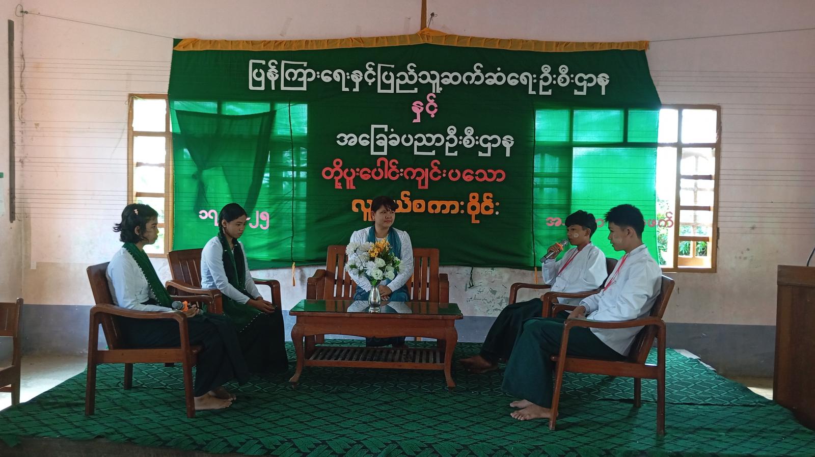 ဦးစွာ မြို့နယ်ပညာရေးမှူးရုံး လက်ထောက်ပညာရေးမှူး ဦးကျော်ထူးက အမှာစကားပြောကြားပြီး မြို့နယ်ပြန်ကြားရေးနှင့် ပြည်သူ့ဆက်ဆံရေးဦးစီးဌာ၊ ဦးစီးအရာရှိ ဒေါ်မြင့်မြင့်ခိုင်က ကျောင်းသား၊ ကျောင်းသူများ အသိဥာဏ်ပညာနှင့် စဥ်းစားတွေးခေါ်မှုစွမ်းရည်များ ဖွံ့ဖြိုးလာပြီး နိုင်ငံတော်နှင့် မိမိပတ်ဝန်းကျင်ကို အကျိုးပြုနိုင်မည့် လူငယ်များ ပေါ်ထွန်းလာစေရန် လူငယ်စကားဝိုင်းများ ဆောင်ရွက်ပေးရခြင်း ဖြစ်ကြောင်း ရှင်းလင်းဟောပြောခဲ့သည်။ ဆက်လက်၍ လူငယ်စကားဝိုင်းကျင်းပရာ ဦးစီးအရာရှိ က ဦးဆောင်ဆွေးနွေးခဲ့ပြီး ကျောင်းသား၊ ကျောင်းသူများဖြစ်သည့် မောင်အောင်မြတ်သူက လူငယ်နှင့် အားကစား၊ မောင်ဖြိုးထက်စံက လူငယ်နှင့်မူးယစ်ဆေး၊ မေသဇင်က လူငယ်နှင့် ကိုယ်ကျင့်တရား၊ မဇင်ဖူးဝေက လူငယ်နှင့် စာပေ စသည့်ခေါင်းစဥ်တို့ဖြင့် ဆွေးနွေးခဲ့ကြရာ တက်ရောက်လာသည့် ကျောင်းသား၊ ကျောင်းသူများက သိရှိလိုသည်များ မေးမြန်းမှုအား ဦးဆောင်ဆွေးနွေးသူများက ပြန်လည်ဖြေကြားပေးခဲ့ကြောင်းသိရသည်။ ထို့နောက် ကျောင်းအုပ်ဆရာကြီး ဦးထက်အောင်ဝင်းက ကျေးဇူးတင်စကားပြောကြားသည်။