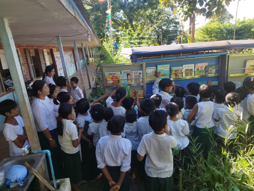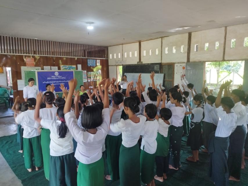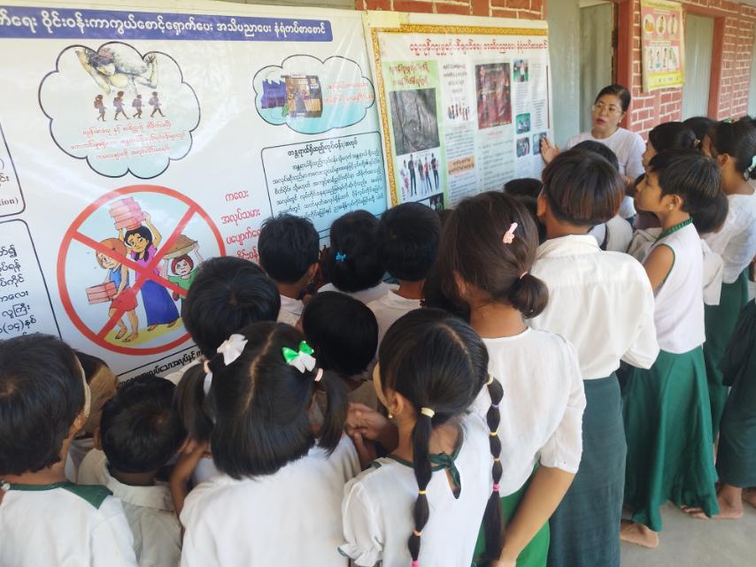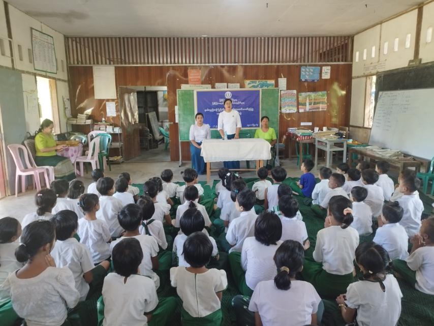 ထို့နောက် ဦးစီးအရာရှိ ဒေါ်ငြိမ်းငြိမ်းသန့်က ကျောင်းသား/ ကျောင်းသူများအား ကိုယ်လက်လှုပ်ရှားမှုများ ဆောင်ရွက်ပြီး အလွန်ကြီးမားသော မုန်လာဥကြီးပုံပြင်စာအုပ်ကို ပြောပြသည်။ ယင်းနောက် ပြန်ကြားရေးနှင့်ပြည်သူ့ဆက်ဆံရေးဦးစီးဌာနမှ ကျောင်းသား၊ ကျောင်းသူလေးများကို လူကုန်ကူးမှုတိုက်ဖျက်ရေးနေ့အထိမ်းအမှတ် နံရံကပ်စာစောင်၊ မူးယစ်ဆေးဝါးအန္တရာယ် အသိပညာပေးနံရံကပ်စာစောင်၊ ကလေးအလုပ်သမားပပျောက်ရေး နံရံကပ်စာစောင်၊ လျှပ်စီးလက်ခြင်း၊ မိုးကြိုးပစ်ခြင်းပညာပေးပိုစတာ၊ လေပြင်းဘေး အသိပညာပေး ပိုစတာများပြသရာ ကျောင်းသား၊ ကျောင်းသူများမှ စိတ်ပါဝင်စားစွာ ကြည့်ရှုလေ့လာခဲ့ကြပြီး စာအုပ်စာပေများကို ဖတ်ရှုခဲ့ကြောင်း သိရသည်။