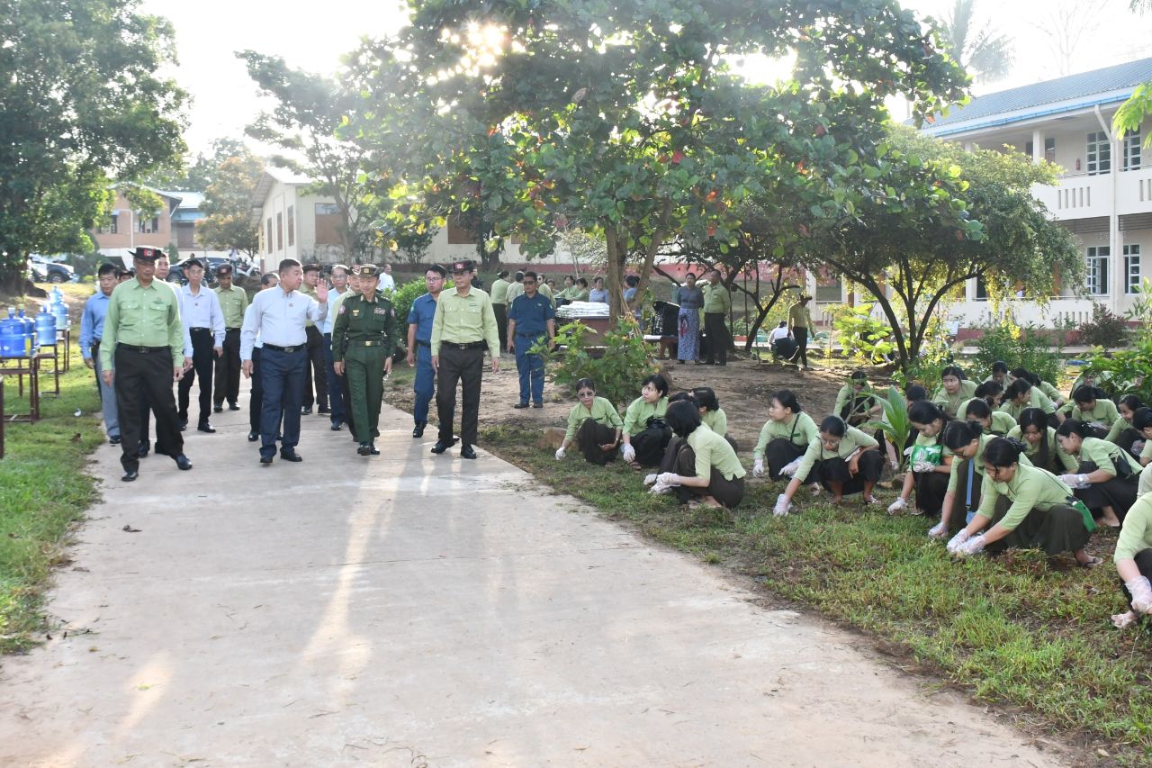 ထို့နောက် ပြည်နယ်ဝန်ကြီးချုပ်က ကျောင်းဥပဓိရုပ် ကောင်းမွန်ပြီး စာသင်ကျောင်းများ သန့်ရှင်းသာယာလှပမှုရှိစေရေး ဝိုင်းဝန်းဆောင်ရွက်ပေးကြရန်မှာကြား၍ စာသင်ကျောင်းဝင်းအတွင်း လှည့်လည်ကြည့်ရှုပြီး သန့်ရှင်း၍ စိမ်းလန်းစိုပြေသော စာသင်ကျောင်းဖော်ဆောင်နိုင်ရေး တာဝန်ရှိများနှင့်တွေ့ဆုံရ၍ စာသင်ကျောင်းအတွက် လိုအပ်သည်များကို ပေါင်းစပ်ညှိနှိုင်း ဆောင်ရွက်ပေးခဲ့သည်။
