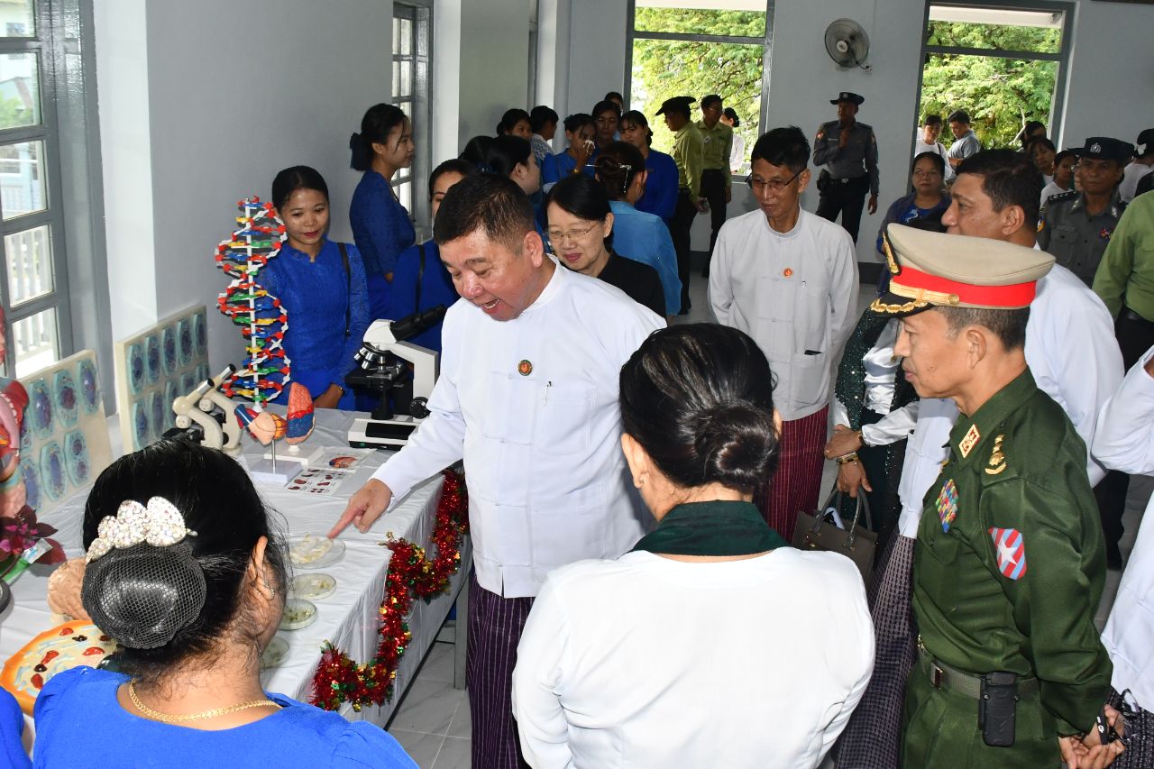 ထိုနောက် မော်လမြိုင်တက္ကသိုလ် ဒုတိယ ပါမောက္ခချုပ်က အခြေခံပညာအထက်တန်းအဆင့်တွင် သိပ္ပံဘာသာရပ်များအတွက် သင်ထောက်ကူပစ္စည်းများ လက်တွေ့အသုံးချ၍ စာတွေ့၊လက်တွေ့သင်ကြားပို့ချပေးနိုင်ရေး ဆောင်ရွက်ထားရှိမှု အခြေအနေအားလည်းကောင်း၊ မွန်ပြည်နယ်ပညာရေးမှူးက သင်တန်းရေးရာ ကိစ္စရပ်များအားလည်းကောင်း ရှင်းလင်းတင်ပြခဲ့ကြပြီး ပြည်နယ်ဝန်ကြီးချုပ်နှင့် တာဝန်ရှိသူများက ဆရာ၊ ဆရာမ များအား ရင်းရင်းနှီးနှီး လိုက်လံနှုတ်ဆက်ကာ သင်ထောက်ကူပစ္စည်းများဖြင့် စာသင်ခန်းများတွင်လက်တွေ့သရုပ်ပြ သင်ကြားပြသနေမှုကိုလိုက်လံလှည်လည် ကြည့်ရှုအားပေးကာ ကျောင်းမုန့်ဆိုင်စျေးတန်းတွင် စားသောက်ဖွယ်ရာများ ရောင်းချနေမှု အခြေအနေများကိုလှည့်လည်ကြည့်ရှုစစ်ဆေးခဲ့ကြောင်း သိရသည်။