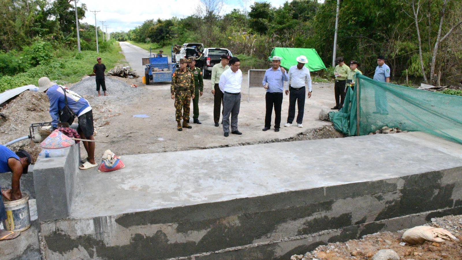 ဆက်လက်၍ ပြည်နယ်ဝန်ကြီးချုပ်နှင့် တာဝန်ရှိသူများသည် လွိုင်ကော်−ဒီးမော့ဆိုလမ်း မိုင်တိုင်(၁၂၄/၆)တွင် (၅၀x၅၀x၄၀)ပေ သံကူကွန်ကရစ် ရေပြွန်လုပ်ငန်းဆောင်ရွက်နေမှုကို ကြည့်ရှု စစ်ဆေးရာ ပြည်နယ်လမ်းဦးစီးဌာန ပြည်နယ်ဦးစီးမှူးက လုပ်ငန်းများဆောင်ရွက်ပြီးစီးမှုအား ရှင်းလင်းတင်ပြသည်။ ပြည်နယ်ဝန်ကြီးချုပ်ကလုပ်ငန်းများ သတ်မှတ်စံချိန်စံညွှန်း ပြည့်မီစေရေး၊ သတ်မှတ်ကာလပြီးစီးရေး ဆောင်ရွက်ရန် တာဝန်ရှိသူများအား မှာကြားခဲ့သည်။