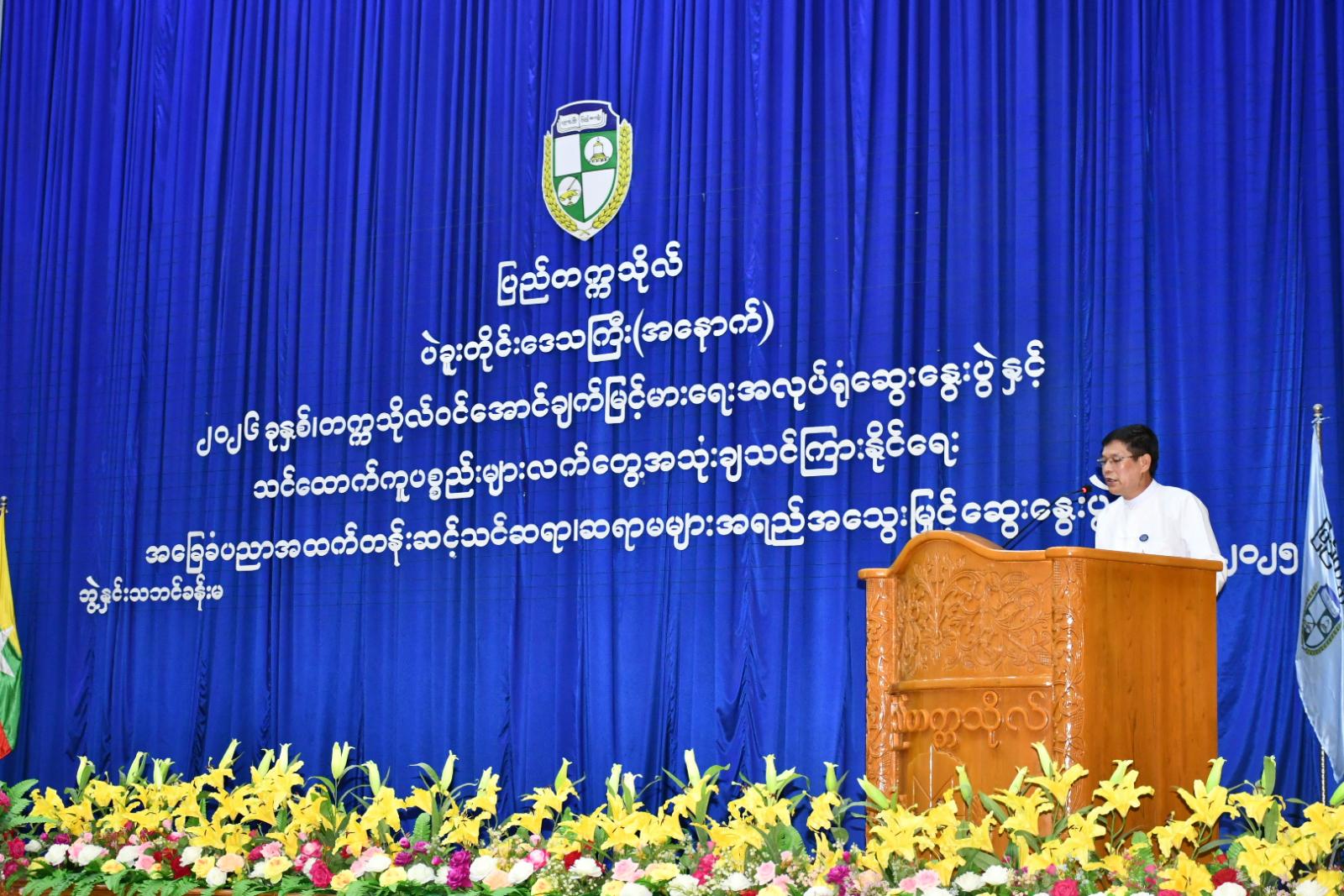 ပဲခူးတိုင်းဒေသကြီး(အနောက်ပိုင်း) ၂၀၂၆ခုနှစ် တက္ကသိုလ်ဝင်စာမေးပွဲ အောင်ချက်မြင့်မားရေးအလုပ်ရုံဆွေးနွေးပွဲနှင့် သင်ထောက်ကူပစ္စည်းများ လက်တွေ့အသုံးချသင်ကြားနိုင်ရေး အခြေခံပညာအထက်တန်းဆင့်သင် ဆရာ၊ ဆရာမများ အရည်အသွေးမြှင့်ဆွေးနွေးပွဲဖွင့်ပွဲအခမ်းအနားကို ယမန်နေ့နံနက်ပိုင်းက ပြည်တက္ကသိုလ်ဘွဲ့နှင်းသဘင်ခန်းမ၌ ကျင်းပရာ တိုင်းဒေသကြီးအစိုးရအဖွဲ့ လူမှုရေးရာဝန်ကြီး ဦးမျိုးအောင်နှင့် တိုင်း/ ခရိုင်/ မြို့နယ်အဆင့် ဌာနဆိုင်ရာတာဝန်ရှိသူများနှင့် ဆရာ၊ ဆရာမများ တက်ရောက်ကြသည်။