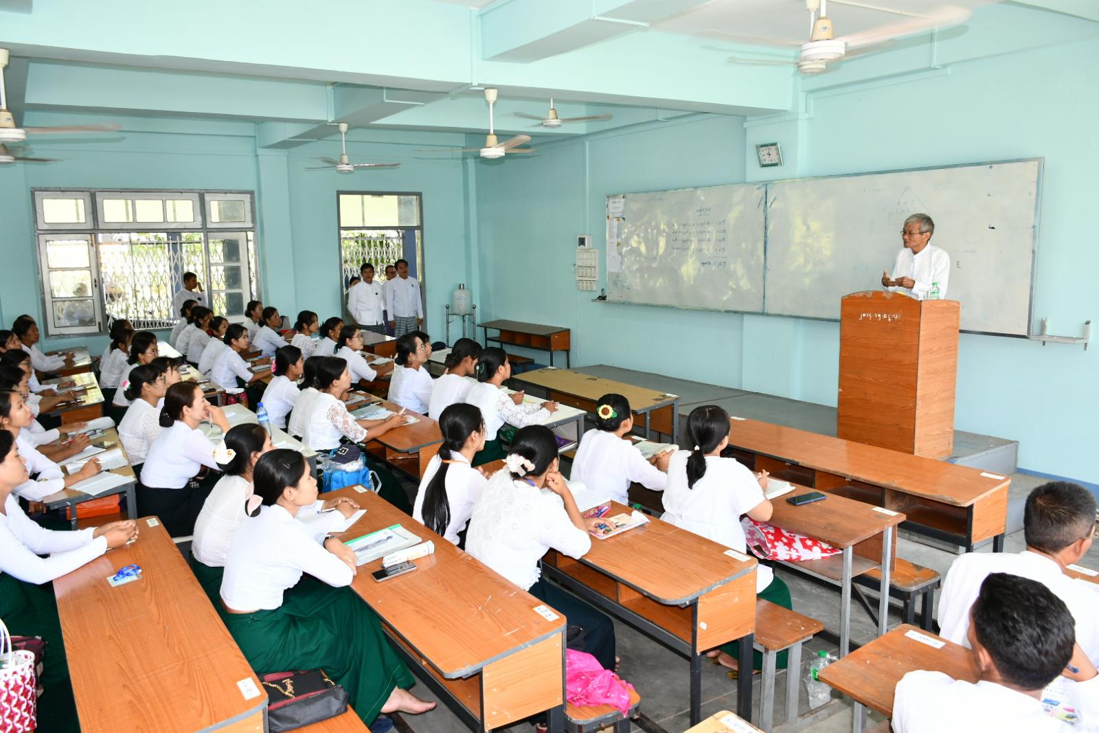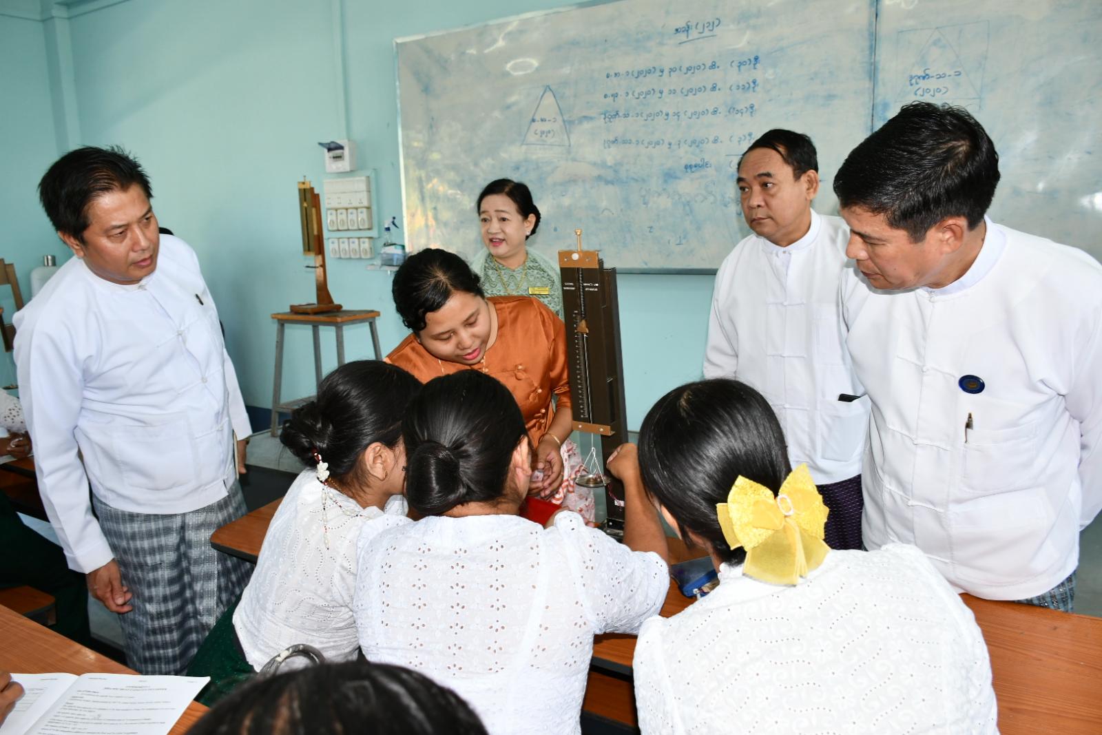 ထို့နောက် တိုင်းဒေသကြီးအစိုးရအဖွဲ့လူမှုရေးရာဝန်ကြီး ဦးမျိုးအောင်နှင့် တာဝန်ရှိသူများက ပြည်တက္ကသိုလ် ဝိဇ္ဇာ/သိပ္ပံဆောင်များ၌ တက္ကသိုလ်ဝင်အောင်ချက်မြင့်မားရေးအလုပ်ရုံဆွေးနွေးပွဲနှင့် သင်ထောက်ကူပစ္စည်းများ လက်တွေ့အသုံးချသင်ကြားနိုင်ရေး သင်ကြား/ သင်ယူဆောင်ရွက်နေမှုကို လှည့်လည်ကြည့်ရှုအားပေးပြီး လိုအပ်သည်များ ပေါင်းစပ်ညှိနှိုင်းဆောင်ရွက်ပေးခဲ့သည်။
