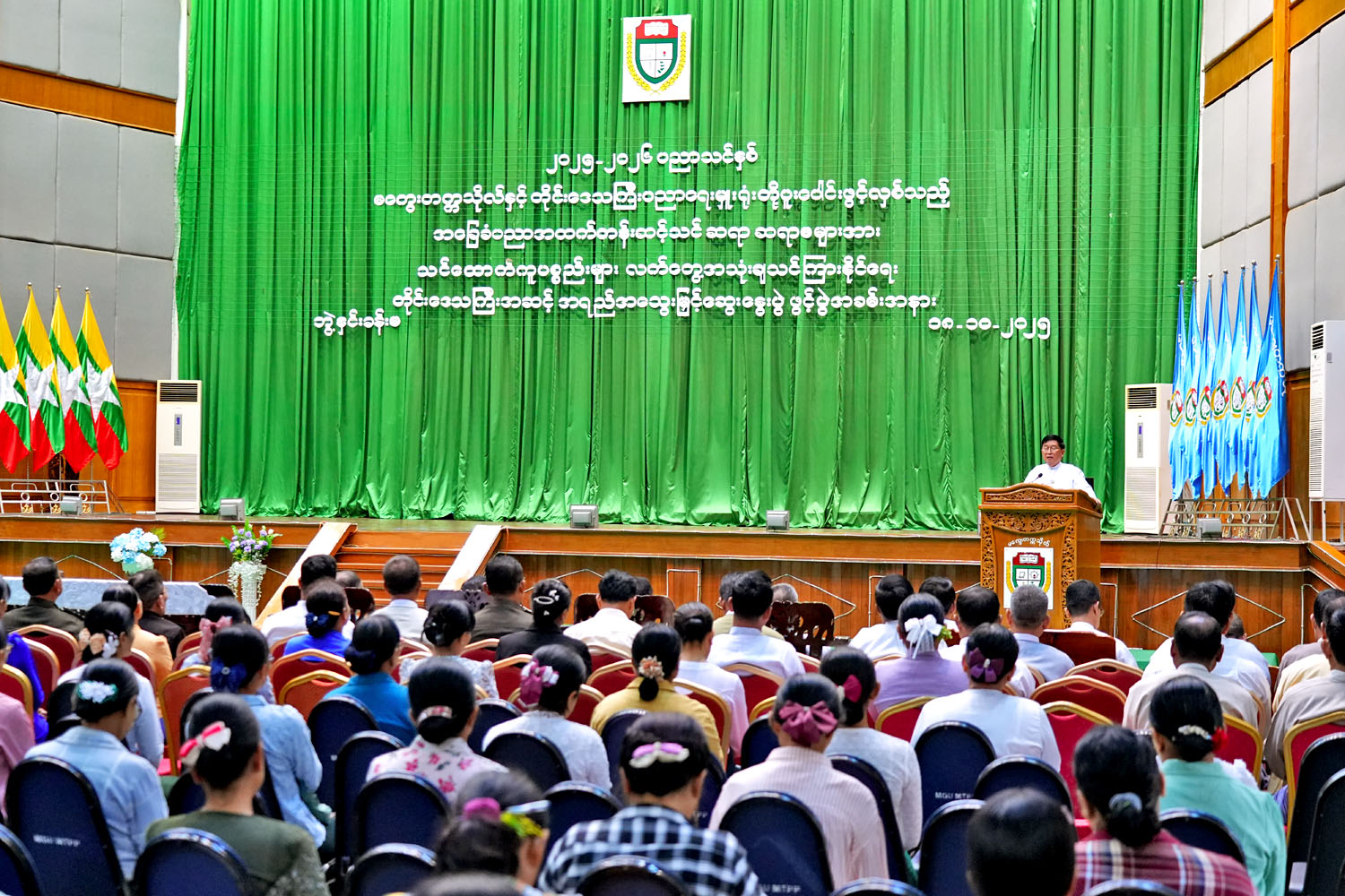 ဦးစွာ တိုင်းဒေသကြီးဝန်ကြီးချုပ် ဦးတင့်လွင်က အမှာစကားပြောကြားရာတွင် နိုင်ငံတစ်နိုင်ငံ၊ လူမျိုးတစ်မျိုးဖွံ့ဖြိုးတိုးတက်ဖို့အတွက် လူသားအရင်းအမြစ်က အဓိကအကျဆုံး ဖြစ်သလို လူ့စွမ်းအားအရင်းအမြစ်တွေ တိုးတက်ဖွံ့ဖြိုးစေဖို့ကလည်း ပညာရေးမြင့်မားဖို့က အရေးပါကြောင်း၊ အခြေခံပညာအထက်တန်းဆင့်ကို သင်ရိုးသစ်နဲ့ အကောင်အထည်ဖော် ဆောင်ရွက်နေရာ သိပ္ပံဘာသာရပ် များဖြစ်တဲ့ ဓာတုဗေဒ၊ ရူပဗေဒ၊ ဇီဝဗေဒဘာသာရပ်များမှာ လက်တွေ့သင်ခန်းစာများ သင်ကြားရာ တွင် အခက် အခဲတစ်ချို့ တွေ့ကြုံနေရတဲ့အတွက် တာဝန်ရှိသူများက သင်ထောက်ကူ လက်တွေ့ အသုံးချသင်တန်း နှင့် စွမ်းရည်မြှင့်ဆွေးနွေးပွဲများ ကျင်းပပြုလုပ်ပေးတာဖြစ်ပါကြောင်း၊ ယခုကဲ့သို့ ဆွေးနွေးပွဲများ ဖွင့်လှစ်ပို့ချခြင်းဖြင့် ဆရာ၊ ဆရာမ များရဲ့ စွမ်းဆောင်ရည်ကို စဉ်ဆက်မပြတ် မြှင့်တင်ရာရောက်သလို မိမိတို့ရဲ့ အသိပညာများကို ပြန်လည်ပို့ချသင်ပြရမည့် ဆရာ၊ ဆရာမများအနေနဲ့ကျောင်းသား၊ ကျောင်းသူလေးများရဲ့ ပညာရည်မြင့်မားတိုးတက်စေရန်အတွက်လည်း များစွာအထောက် အကူပြု လိမ့်မယ်လို့ မျှော်လင့်မိပါကြောင်း၊ ယခု တက်ရောက်လာကြတဲ့ ဆရာ၊ ဆရာမများအနေနဲ့ သင်ရိုး သစ်ပညာရေး စနစ်သစ်ကို အကောင်အထည်ဖော် ဆောင်ရွက်ရာမှာ သင်ကြား၊ သင်ယူမှု အောင်မြင် စေရန်အတွက် အဓိကလိုအပ်တဲ့ ဘာသာရပ်ကျွမ်းကျင်မှုအတွက် တစ်ဖက်က ကြိုးစားလေ့လာရင်း ထိရောက်အောင်မြင်အောင် ဘယ်လိုသင်ကြားပေးရမလဲဆိုတဲ့ သင်နည်း စနစ်ကိုပါ ကြိုတင်တွေးတော ပြင်ဆင်ထားကြပါလို့ မှာကြားလိုကြောင်း၊ “ပညာရေးဖြင့် ခေတ်မီဖွံ့ဖြိုးတိုးတက်သော နိုင်ငံတော်ကြီး တည်ဆောက်အံ့” ဆိုတဲ့ဆောင်ပုဒ်နှင့် အညီ နိုင်ငံတော် ကြီးကို တည်ဆောက်ရာမှာ ပညာရေးသည် အဓိကအခန်းကဏ္ဍမှ ပါဝင်ကာ၊ ပညာရေးကဏ္ဍ ဖွံ့ဖြိုးတိုးတက်ဖို့အတွက် ထူးချွန်ထက်မြက်ပြီး အရည်အသွေးပြည့်ဝတဲ့ ဆရာများစွာ လိုအပ်သလို ထူးချွန်ထက်မြက်ပြီး အရည်အသွေးပြည့်ဝတဲ့ ဆရာတစ်ယောက် ဖြစ်လာစေဖို့ အထောက်အကူရရှိမဲ့ သင်ယူလေ့လာမှုတိုင်းကို စနစ်သစ်ပညာရေးကို စဉ်ဆက် မပြတ်လေ့လာသင်ယူနေမှသာ ထိထိရောက်ရောက် အကောင်အထည်ဖော်နိုင်မှာဖြစ်ပါကြောင်း၊ ဆရာ၊ ဆရာမများ အရည်အသွေးပြည့်ဝနေမှသာ တွေးခေါ်ကြံဆ ဝေဖန်ပိုင်းခြားနိုင်တဲ့ အသိဉာဏ်ရှိပြီး ဗလငါးတန်နဲ့ပြည့်စုံတဲ့ နိုင်ငံ့သားကောင်းတွေကို မွေးထုတ်ပေးနိုင်မှာ ဖြစ်ပါကြောင်း၊ “ပညာရေးသည် နိုင်ငံအရေးဖြစ်သည်”ဆိုတဲ့အတိုင်း နိုင်ငံတစ်နိုင်ငံဖွံ့ဖြိုးတိုးတက်ဖို့အတွက် ပညာရည်ပြည့်ဝသော အသိ ပညာရှင် အတတ်ပညာရှင်များစွာရှိရန် လိုအပ်ကြောင်း၊ ဆွေးနွေးပွဲမှာ သင်ကြားပို့ချပေးလိုက်တဲ့ သင်ခန်း စာတွေကို တက်တက်ကြွကြွနဲ့ ပြည့်ဝစွာသင