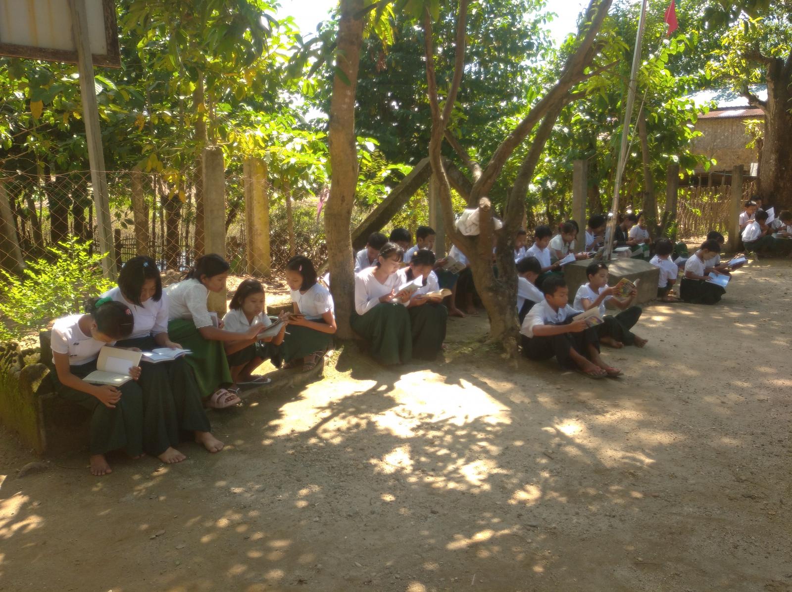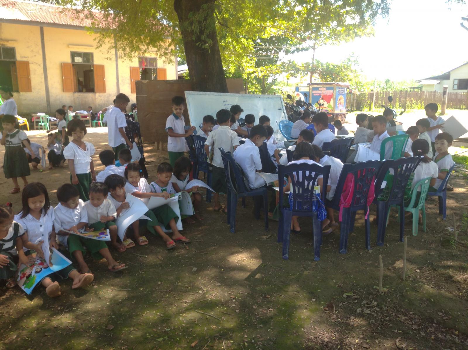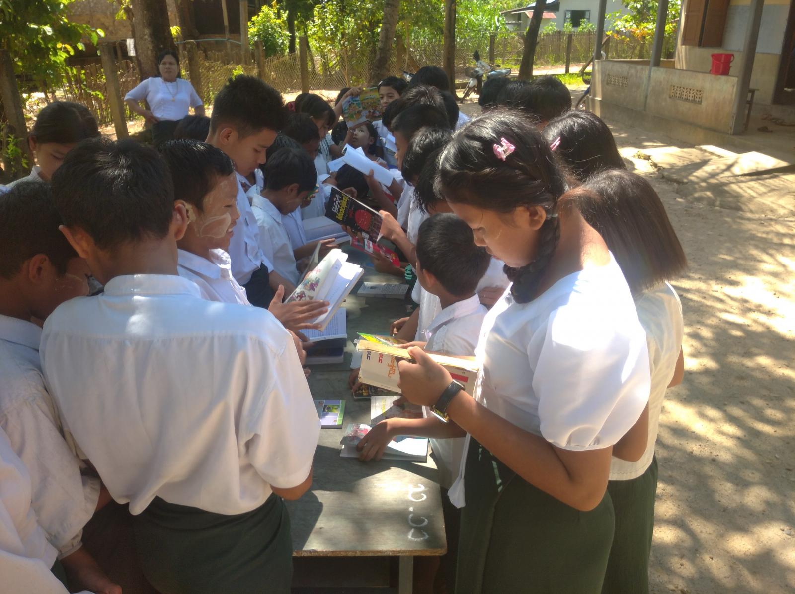 ထို့နောက် ပြန်ကြားရေးနှင့်ပြည်သူ့ဆက်ဆံရေးဦးစီးဌာနမှ စာဖတ်ရှိန်မြှင့်တင်ရေး နယ်လှည့်စာကြည့်တိုက်အဖြစ် ဒုတိယဦးစီးမှူး ဦးမျိုးငြိမ်းနှင့် ဒေါ်မို့မို့သွင်(ရုပ်/သံ)ကျွမ်းကျင်-၃တို့က ကျောင်းသား/ ကျောင်းသူများအား အသိပညာတိုးပွားစေမည့်၊ နံရံကပ်စာစောင်များ၊ ရုပ်ပုံပါပုံပြင်စာအုပ်များ၊ သုတ/ရသစာအုပ်များအား ဖတ်ရှုစေရန် ပြသခဲ့ရာ ကျောင်းသား/ ကျောင်းသူများက စိတ်ပါ၀င်စားစွာ ဖတ်ရှုလေ့လာကြကြောင်း သိရသည်။