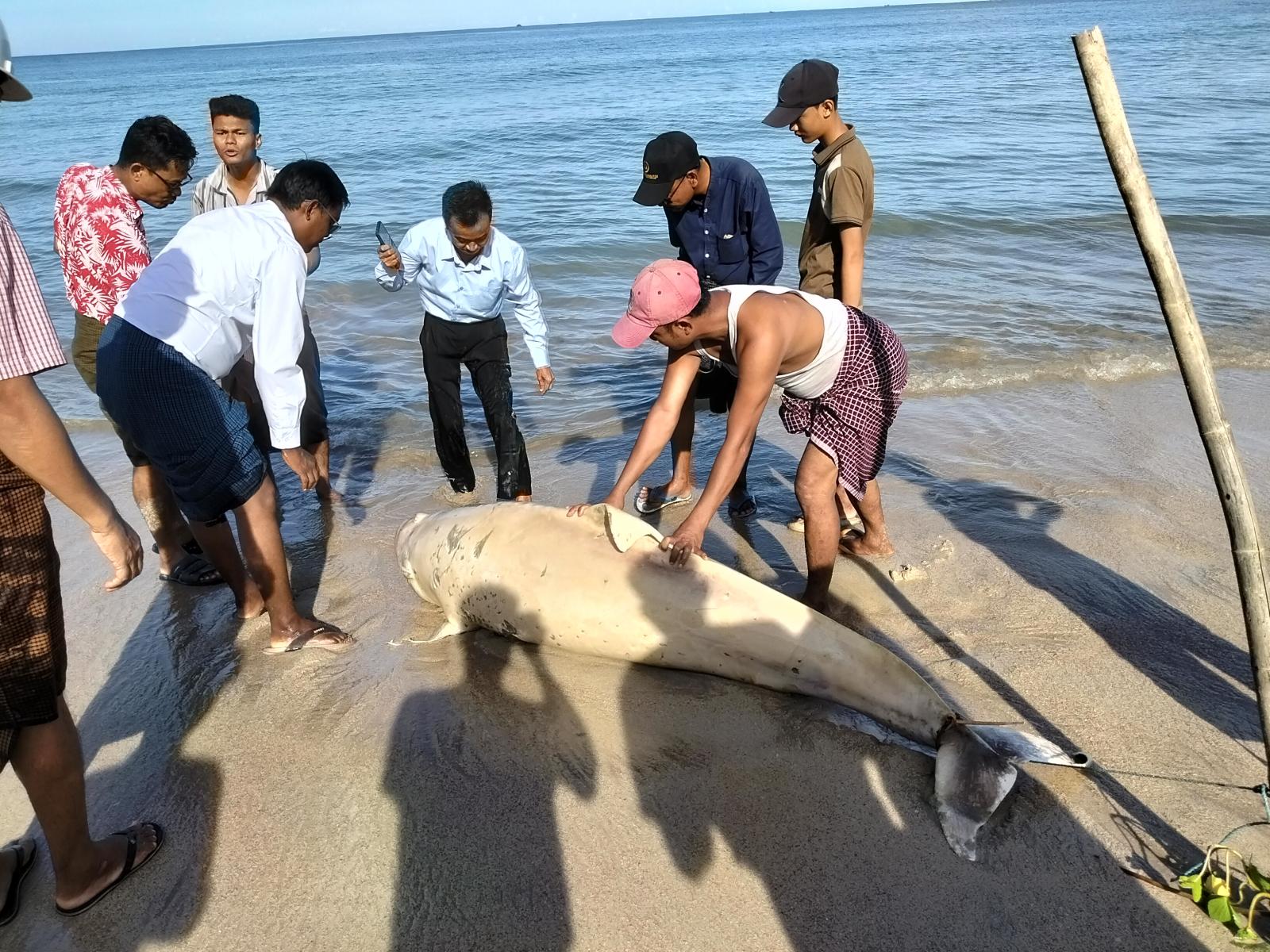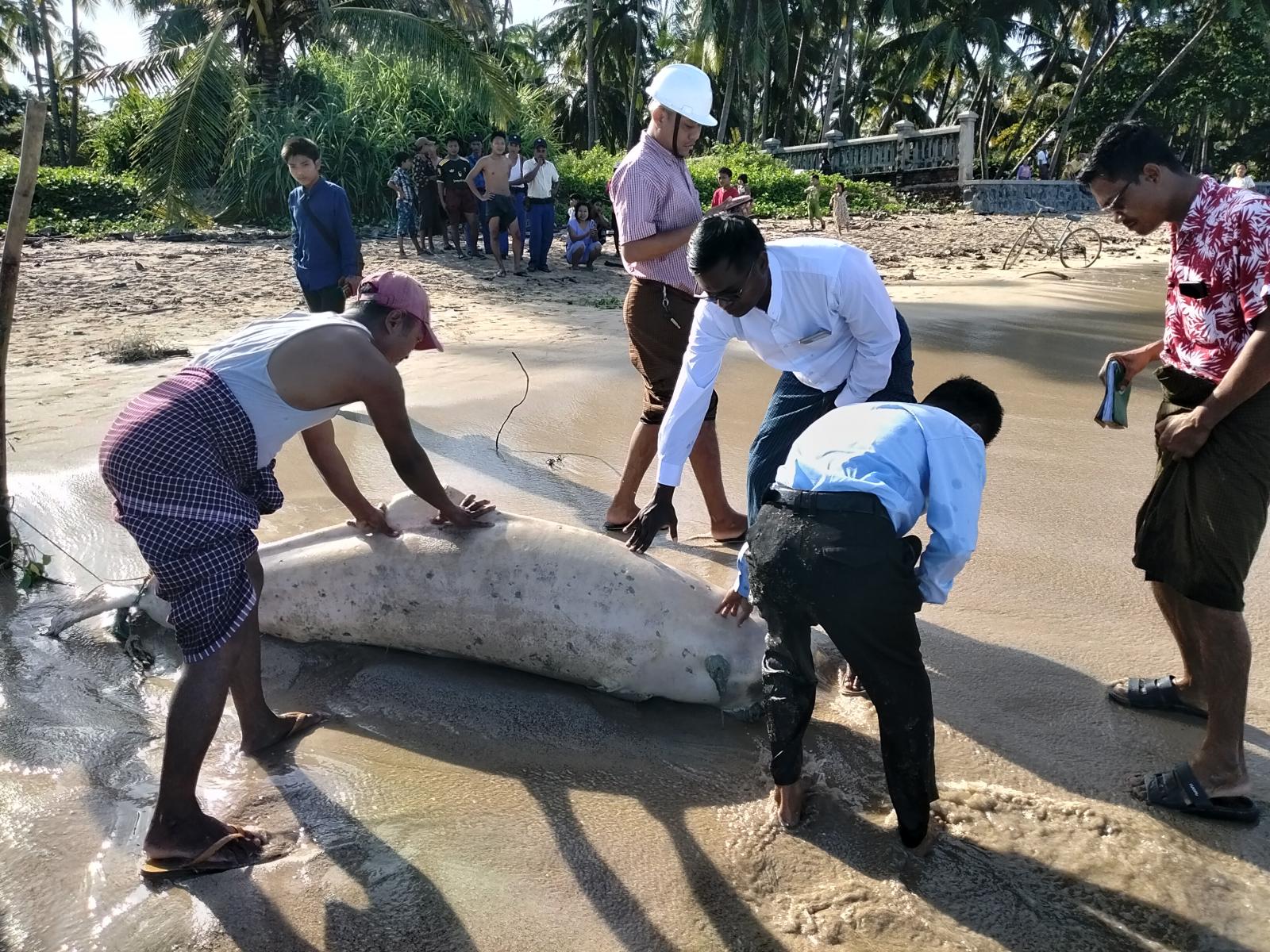 ထို့နောက် အဆိုပါသတ္တဝါအား ငါးလုပ်ငန်းဦးစီးဌာနမှ စနစ်တကျမြေမြှုပ်စွန့်ပစ်နိုင်ရန် ချောင်းသာမြို့ မွေးမြူရေးနှင့်သုတေသနစခန်းသို့သယ်ယူ၍ နေ့လယ် (၁၂)နာရီအချိန်တွင် စနစ်တကျ မြေမြှုပ်စွန်ပစ်ခြင်းများ ပြုလုပ်ဆောင်ရွက်ခဲ့ကြောင်း သိရသည်။