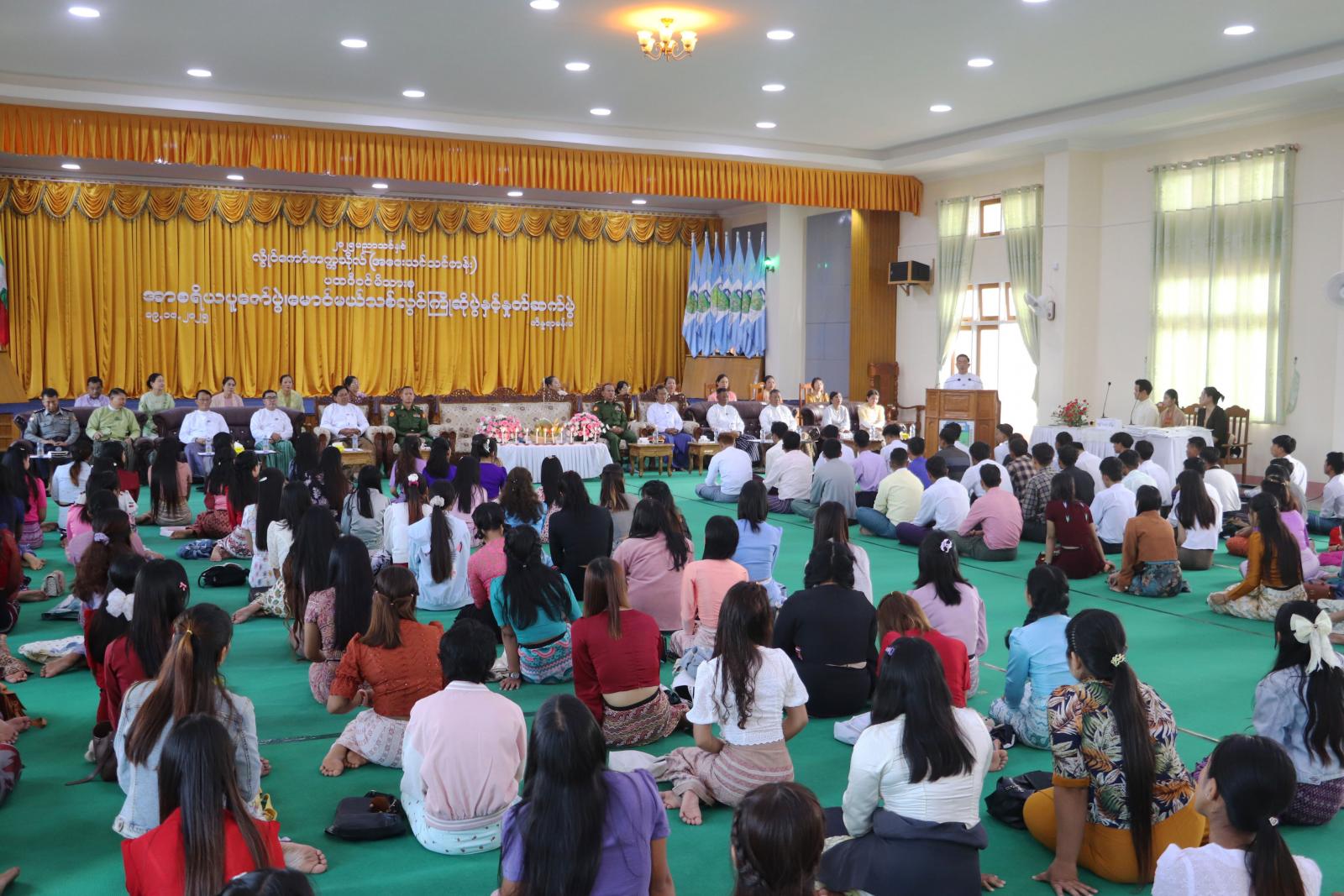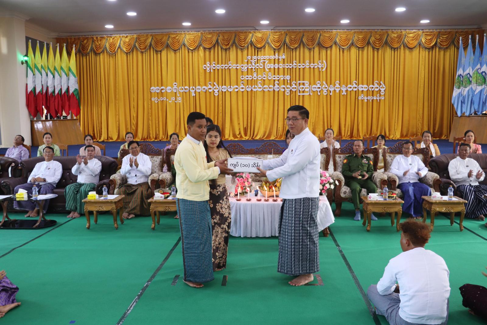 ထို့နောက် ပြည်နယ်ဝန်ကြီးချုပ်က အာစရိယပူဇော်ပွဲနှင့် မောင်မယ်သစ်လွင်ကြိုဆိုပွဲအတွက် ချီးမြှင့်ငွေပေးအပ်ရာ ကျောင်းသားကျောင်းသူ ကိုယ်စားလှယ်နှစ်ဦးက လက်ခံရယူခဲ့ကြသည်။