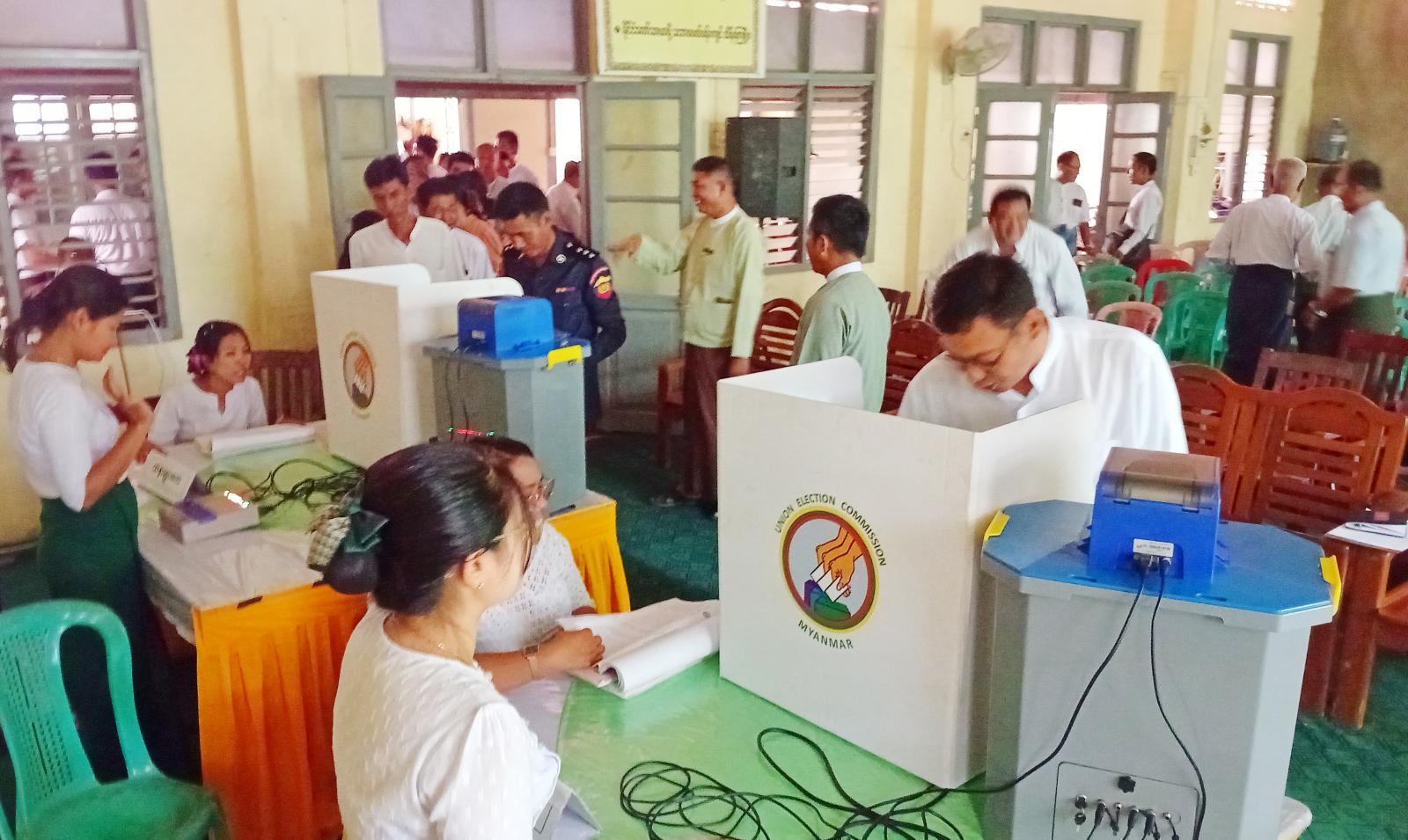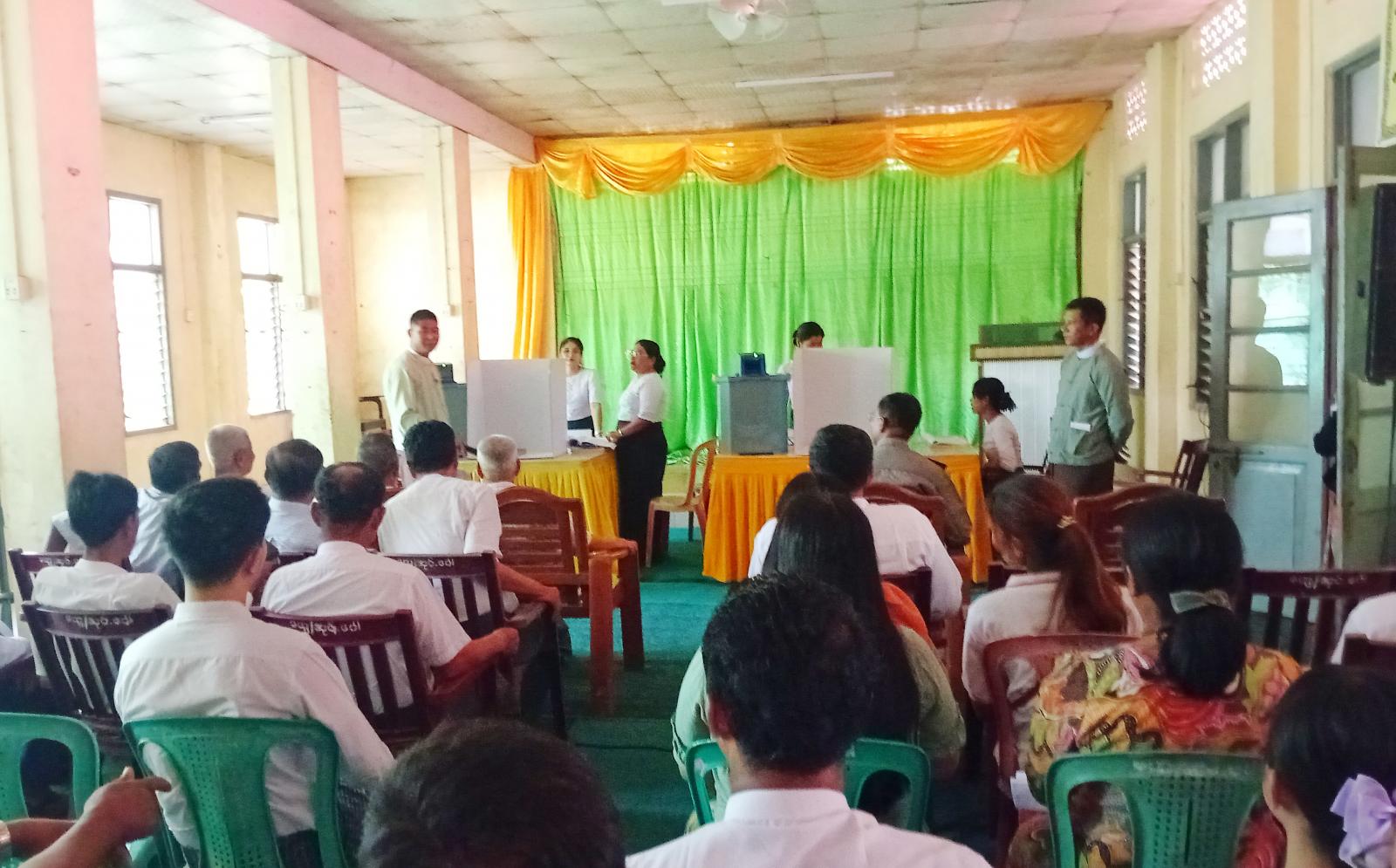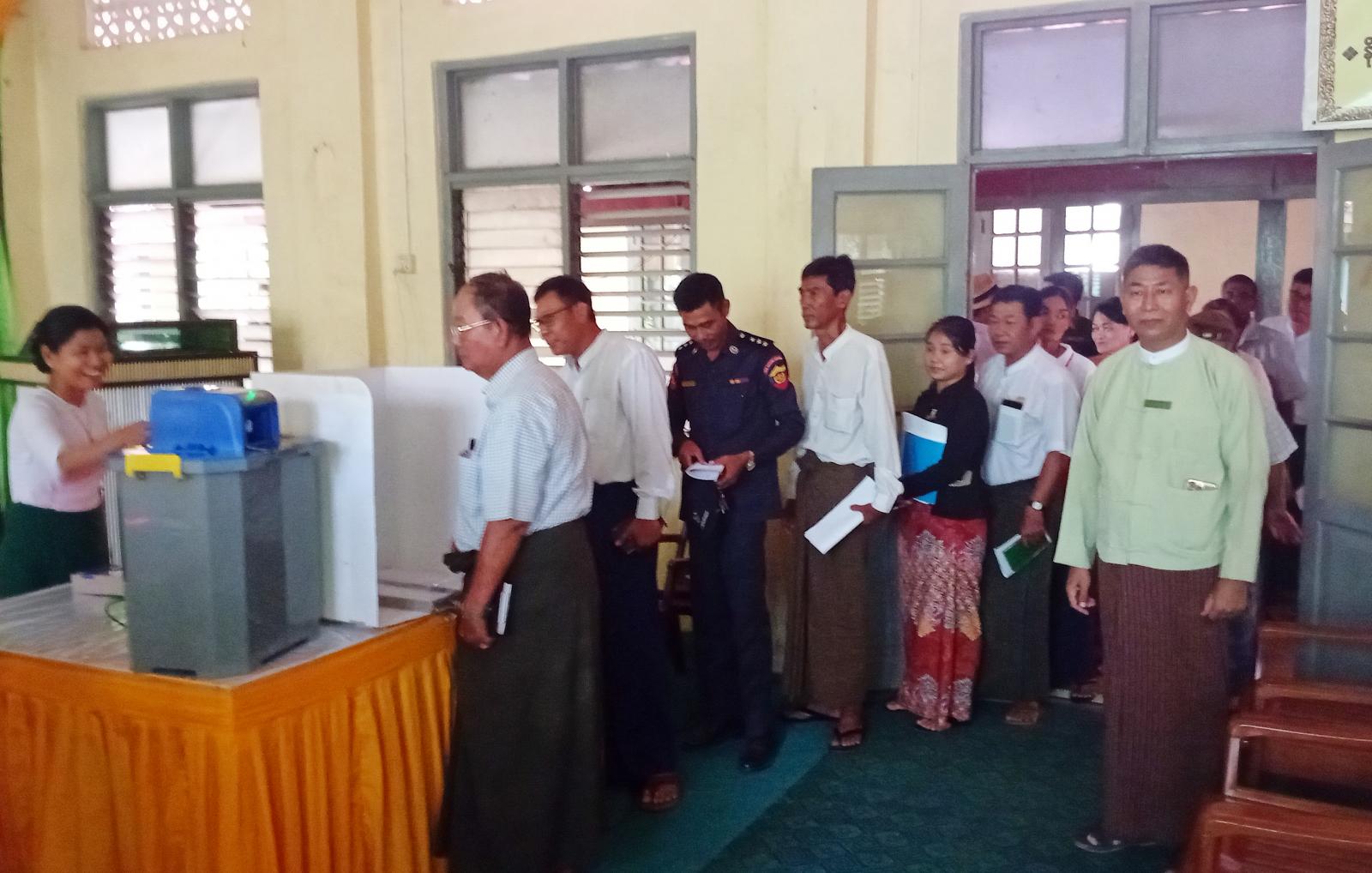 ဦးစွာတွင် မြို့နယ်စီမံခန့်ခွဲရေးနှင့်အုပ်ချုပ်ရေးကော်မတီဥက္ကဋ္ဌ ဦးသက်လွင်က အဖွင့်အမှာစကားပြောကြားပြီး၊ မဲဆန္ဒရှင်များအား မြန်မာအီလက်ထရောနစ်မဲပေးစက် (MEVM)ဖြင့် သုံးစွဲပုံအဆင့်ဆင့်များကို ရှင်းလင်းပြောကြားခဲ့သည်။