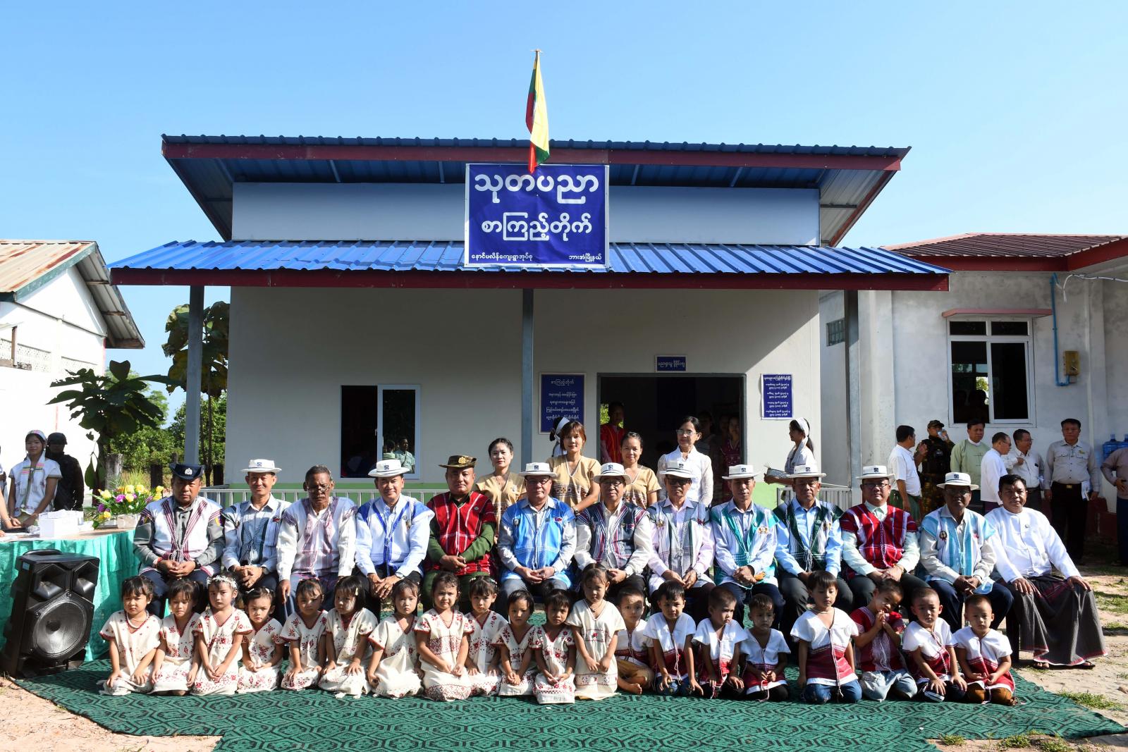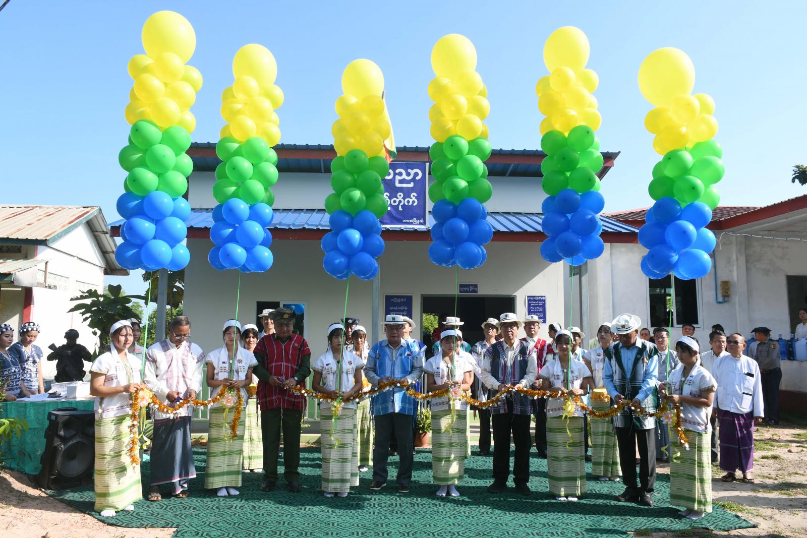 ဦးစွာ ပြည်နယ်ဝန်ကြီးချုပ်ဦးစောမြင့်ဦး၊ ပြည်နယ်တရားလွှတ်တော်တရားသူကြီးချုပ် ဦးညွန့်လင်း၊ ပြည်နယ်အစိုးရအဖွဲ့ဝင်များက ပြည်နယ်အစိုးရအဖွဲ့၏ မတည်ချီးမြှင့်ငွေကျပ်သိန်း(၂၀၀) ပြည်သူလူထုထည့်ဝင်ငွေကျပ် ၆၈၁၅၈၀ဝ စုစုပေါင်း ငွေကျပ် ၂၆၈၁၅၈၀ဝ ဖြင့် ဆောက်လုပ်ခဲ့ သည့် စာကြည့်တိုက်အဆောက်အဦကို ဖဲကြိုးဖြတ်ဖွင့်လှစ်ပေးကြသည်။