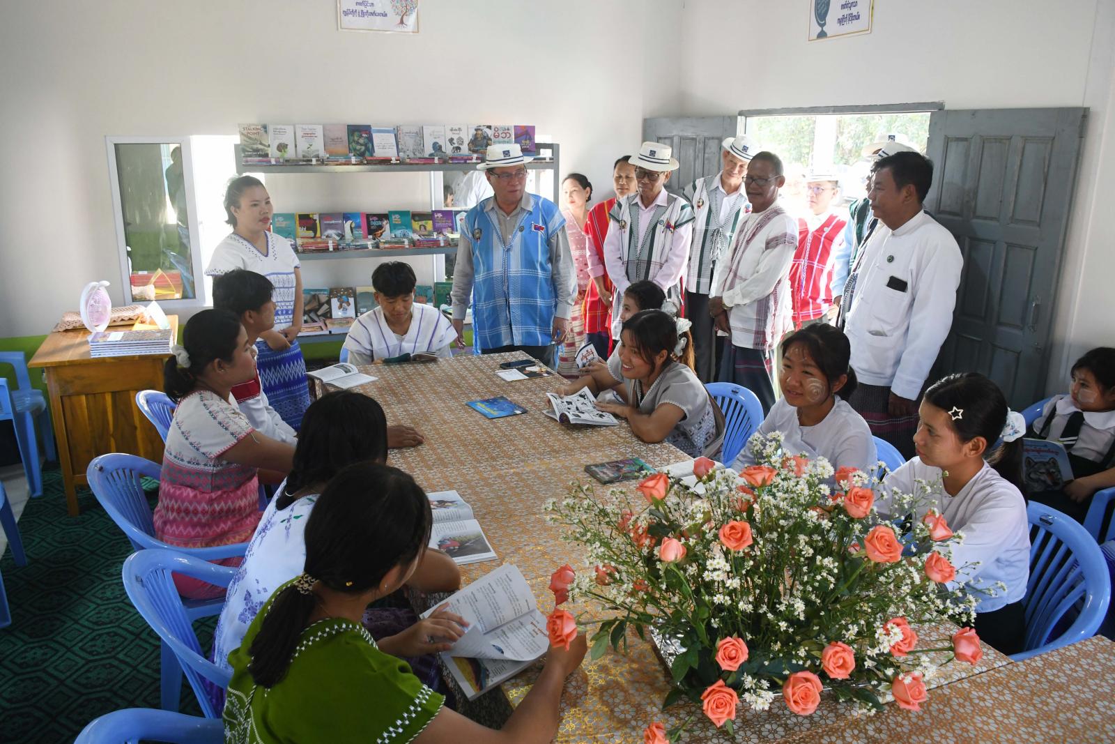 ထို့နောက် ပြည်နယ်ဝန်ကြီးချုပ်နှင့်တက်ရောက်လာသူများသည် သုတပညာစာကြည့်တိုက် အဆောက်အဦအား အမွှေးနံ့သာရည်များပက်ဖျန်းပေးကြပြီး စာကြည့်တိုက်အတွင်း သုတ၊ရသ စာအုပ်စာစောင်များအား ပညာရပ်အလိုက် ပရိဘောဂများအတွင်း စုဆောင်းထားရှိမှု၊ ဒေသခံပြည်သူများက စာကြည့်တိုက်အတွင်း စာအုပ်စာပေလာရောက်လေ့လာဖတ်ရှုနေမှုတို့ကို ကြည့်ရှုအားပေးပြီး တာဝန်ရှိသူများအား လိုအပ်သည်များမှာကြားသည်။