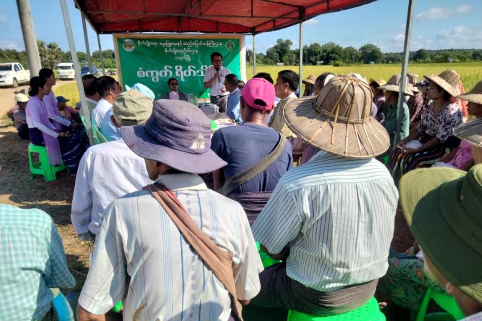 အဆိုပါ အခမ်းအနားတွင် ခရိုင်စီမံ ခန့်ခွဲရေး နှင့် အုပ်ချုပ်ရေးကော်မတီအဖွဲ့ဝင် ဦးသောင်ထိုက်မှ အဖွင့်အမှာ စကားပြောကြားပေးခဲ့ပြီး စိုက်ပျိုးရေးဦးစီးဌာနခရိုင်ဦးစီးမှူး ဦးမြင့်စိုးမှ စံကွက်ရိတ်သိမ်းရခြင်း၏ ရည်ရွယ်ချက်အား ပြောကြားပေးခဲ့သည်။