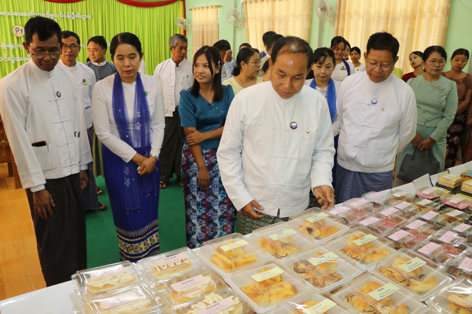 ထို့နောက် တိုင်းဒေသကြီး ဝန်ကြီးချုပ်နှင့် တာဝန်ရှိသူများက သင်တန်းသား/ သင်တန်းသူများကိုယ်တိုင် ပြုလုပ်ထားသည့် တန်ဖိုးမြှင့်စားသောက်ကုန်(Bakery) အမျိုး မျိုးတို့အားကြည့်ရှုခဲ့ကြသည်။