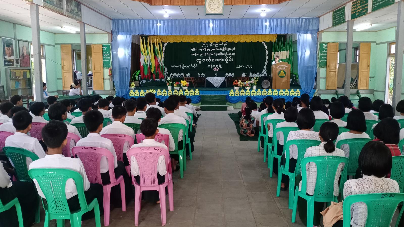 အခမ်းအနားတွင် အ.ထ.က(ခွဲ)ညောင်အိုင် ကျောင်းအုပ်ဆရာမကြီး ဒေါ်ညွန့်ညွန့်ဝင်းက အမှာ စကားပြောကြားပြီး ခရိုင်ပြန်ကြားရေးနှင့်ပြည်သူ့ဆက်ဆံရေးဦးစီးဌာန ဦးစီးအရာရှိ ဒေါ်ခိုင်ဇင်က လူငယ်စကားဝိုင်းကျင်းပရခြင်း ရည်ရွယ်ချက်များကို ရှင်လင်းဆွေးနွေးပြောကြားသည်။