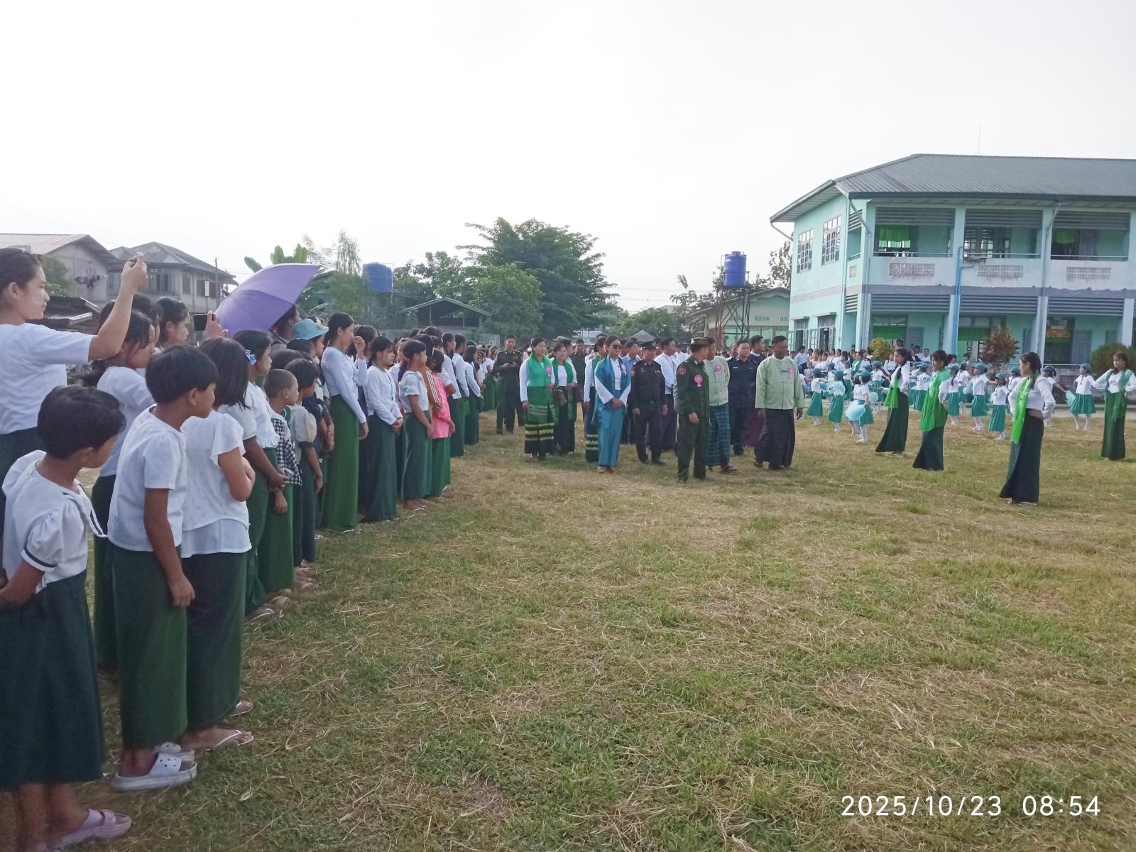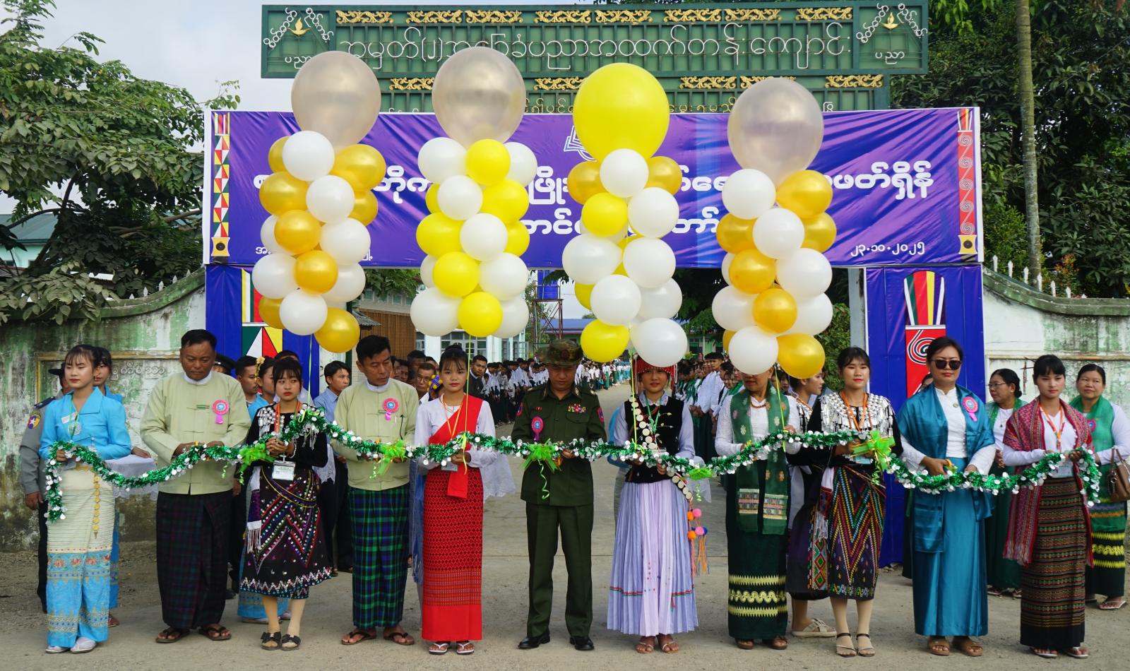 ဆက်လက်၍ ဒေသကွပ်ကဲမှု(စစ်ဌာနချုပ်)တနိုင်း ဒေသကွပ်ကဲရေးမှူး ဗိုလ်မှူးချုပ် ကျော်ဖုန်းအောင်၊ခရိုင်စီမံခန့်ခွဲရေးနှင့် အုပ်ချုပ်ရေးကော်မတီ ဥက္ကဌ ဦးမိုးဇော်လင်းနှင့်အဖွဲ့ဝင်များ၊မြို့နယ်စီမံခန့်ခွဲရေးနှင့် အုပ်ချုပ်ရေးကော်မတီ ဥက္ကဌ ဦးအောင်စိုးနှင့် အဖွဲ့ဝင်များ၊ဌာနဆိုင်ရာအကြီးအကဲများ၊ မြို့နယ် ပြန်ကြားရေးနှင့်ပြည်သူ့ဆက်ဆံရေးဦးစီးဌာန ဦးစီးအရာရှိ ဒေါ်ဝါဦး၊ ခရိုင်ပညာရေးမှူး၊ မြို့နယ်ပညာရေးမှူးတို့က ခင်းကျင်းပြသထားသည့် ဓာတ်ပုံမှတ်တမ်းများ၊နံရံကပ်စာစောင်နှင့် စာအုပ်စာစောင်များပြခန်းများ၊ သင်ထောက်ကူပြခန်းများ ပြသထားမှုအခြေအနေများကို လှည့်လည်ကြည့်ရှုအားပေးခဲ့ကြသည်။