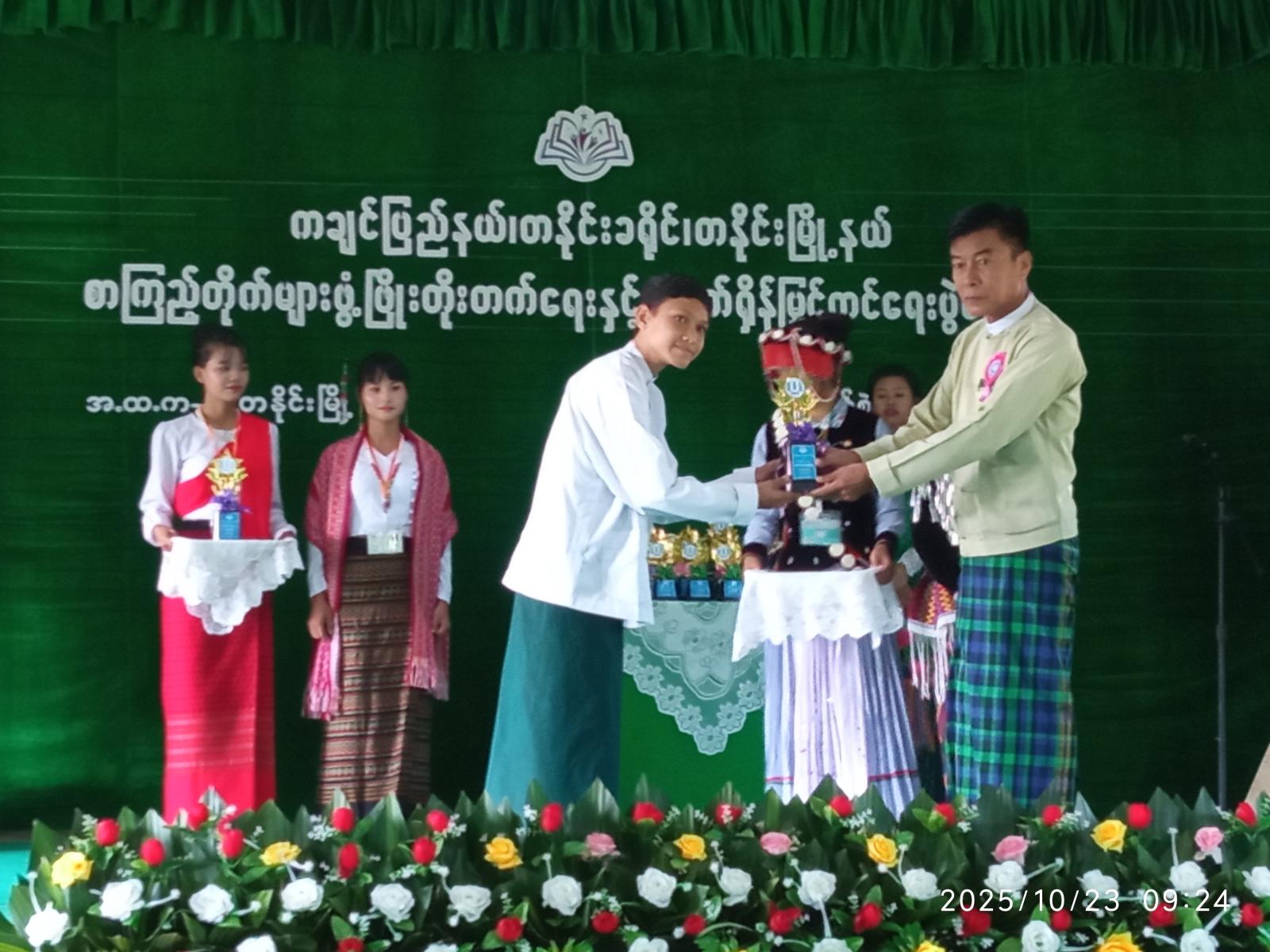 ယင်းနောက် ဒေသကွပ်ကဲမှု(စစ်ဌာနချုပ်) တနိုင်းဒေသကွပ်ကဲရေးမှူး ဗိုလ်မှူးချုပ် ကျော်ဖုန်းအောင်၊ခရိုင်စီမံခန့်ခွဲရေးနှင့် အုပ်ချုပ်ရေးကော်မတီဥက္ကဋ္ဌ ဦးမိုးဇော်လင်း၊မြို့နယ်စီမံခန့်ခွဲရေးနှင့် အုပ်ချုပ်ရေးကော်မတီဥက္ကဋ္ဌ ဦးအောင်စိုးတို့က စာဖတ်ရှိန်မြှင့်တင်ရေးပွဲတော်တွင် ကျပန်းစကားပြောပြိုင်ပွဲ၊ အင်္ဂလိပ်စာစွမ်းရည်ပြိုင်ပွဲနှင့် ကဗျာရွတ်ဆိုပြိုင်ပွဲတွင် ပထဆုရရှိသူများအား ဆုများချီးမြှင့်ပြီး ဒေသကွပ်ကဲရေးမှူးမှ စာကြည့်တိုက်များဖွံ့ဖြိုးတိုးတက်ရေးနှင့်စာဖတ်ရှိန်မြှင့်တင်ရေးပွဲတော်အတွက် အလှူငွေ (၁၀) သိန်းလှူဒါန်းရာ ပြန်ကြားရေးနှင့်ပြည်သူ့ဆက်ဆံရေးဦးစီးဌာန ဦးစီးအရာရှိ ဒေါ်ဝါဦးက လက်ခံရယူသည်။ ဆက်လက်၍ ပြန်ကြားရေးနှင့်ပြည်သူ့ဆက်ဆံရေးဦးစီးဌာန ဦးစီးအရာရှိ ဒေါ်ဝါဦးက အမှတ်(၂)အခြေခံပညာအထက်တန်းကျောင်းအတွက် စာအုပ် (၂)သိန်းဖိုး လှူဒါန်းရာ ကျောင်အုပ်ဆရာမကြီး ဒေါ်တင်လှိုင်မှ လက်ခံရယူခဲ့သည်။