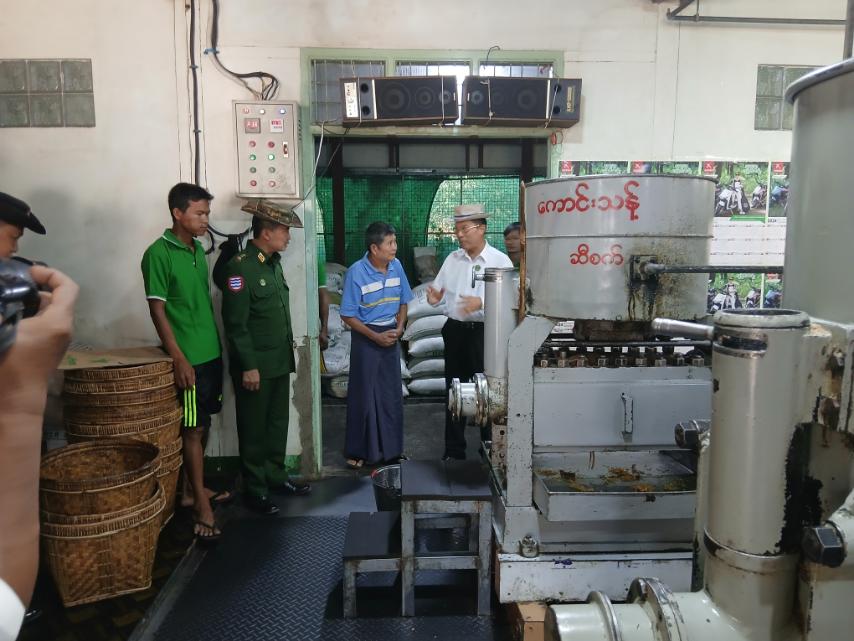 ယင်းနောက် တိုင်းဒေသကြီးအစိုးရအဖွဲ့ဝန်ကြီးချုပ် ဦးတင်မောင်ဝင်းနှင့် အစိုးရအဖွဲ့ ဝန်ကြီးများသည် မြန်အောင်မြို့ အမှတ်(၁)ရပ်ကွက် စိန်ဝတ်မှုံ(၁)လမ်း မင်းစန်းဦး ဆီစက်နှင့်သဘာဝ မီးစက်လမ်းကောင်းသန့်ဆီစက်တို့တွင် မြေပဲဆီကြိတ်ခွဲနေမှုတို့အား ကြည့်ရှုအားပေးခဲ့ကြသည်။