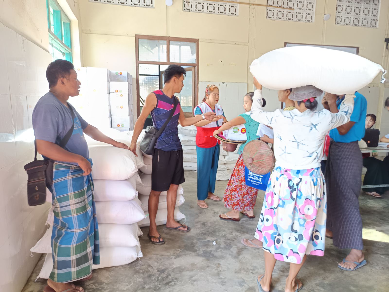 အခမ်းအနားတွင် ရေကြည်မြို့နယ် ကြက်ခြေနီအသင်းခွဲဥက္ကဋ္ဌ ဦးမောင်မောင်အေးနှင့် ကြက်ခြေနီတပ်ဖွဲ့ဝင်များက အကြမ်းဖက်ဖြစ်စဥ်များကြောင့် ယာယီ နေရပ်စွန့်ခွာပြည်သူများအား အာဆီယံနိုင်ငံများမှ ထောက်ပံ့သည့် ဆန်နှင့်တစ်ကိုယ်ရေသုံးပစ္စည်းများအား အိမ်ထောင်စုတစ်စုလျှင် ဆန်(၁)အိတ်၊ ၃ ယောက်နှင့်အထက်အိမ်ထောင်စုတစ်စုလျှင် တစ်ကိုယ်ရေသုံးပစ္စည်း (၂) ပုံးနှုန်းဖြင့် ငါးသိုင်းချောင်း မြို့ပေါ်နှင့် ကျေးရွာများမှ ယာယီနေရပ်စွန့်ခွာပြည်သူများအား ထောက်ပံ့ပေးအပ်ခဲ့ကြောင်း သိရသည်။