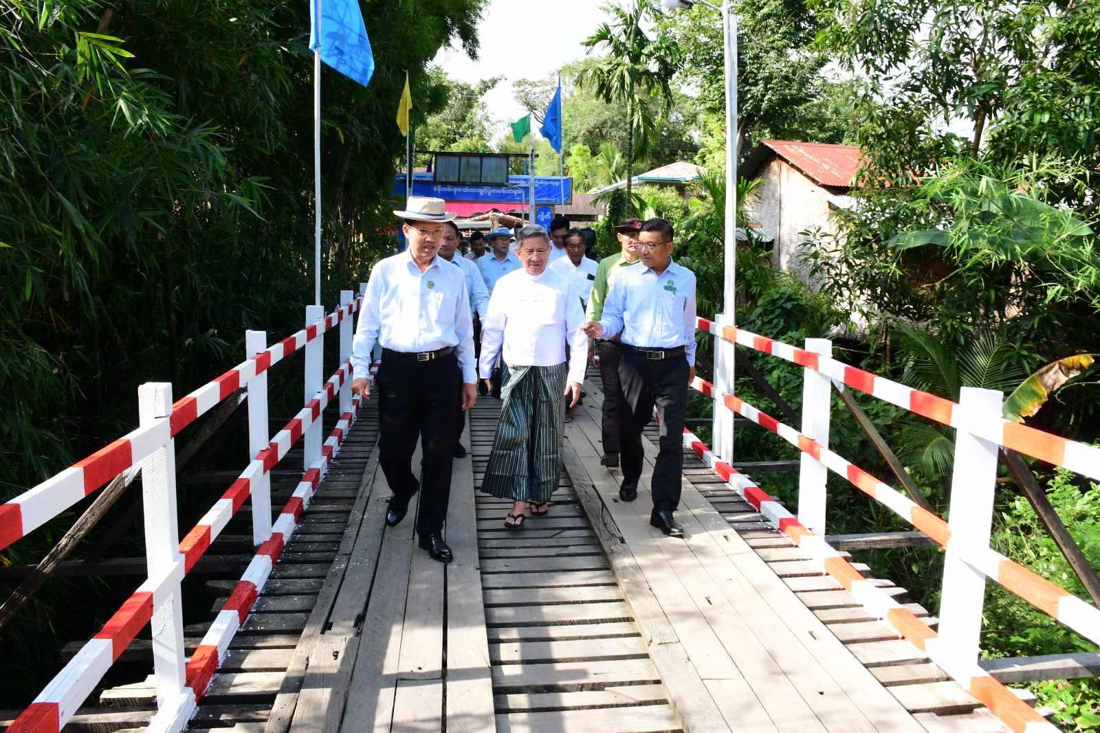 ဧရာဝတီတိုင်းဒေသကြီး၊ ရေကြည်မြို့နယ်၊ သရက်ပင်လှကျေးရွာရှိ မတည်အလှူရှင်နှင့် ဒေသခံပြည်သူလူထုတို့ ပူးပေါင်း၍ ကိုယ်ထူကိုယ်ထဖြင့် တံတားအရှည် ပေ(၃၂၀)၊ အကျယ်(၁၀)ပေ စံနီကမ်းနား သစ်သားတံတားအသစ် ပြန်လည်တည်ဆောက်ခြင်း တံတားဖွင့်ပွဲ အခမ်းအနားကို ယမန်နေ့နံနက်ပိုင်းက အဆိုပါတံတား၏ မုခ်ဦးရှေ့တွင်ပြုလုပ်ခဲ့ရာ တိုင်းဒေသကြီးဝန်ကြီးချုပ် ဦးတင်မောင်ဝင်းသည် တာဝန်ရှိသူများနှင့်အတူ တက်ရောက်ဖွင့်လှစ်ပေးခဲ့သည်။