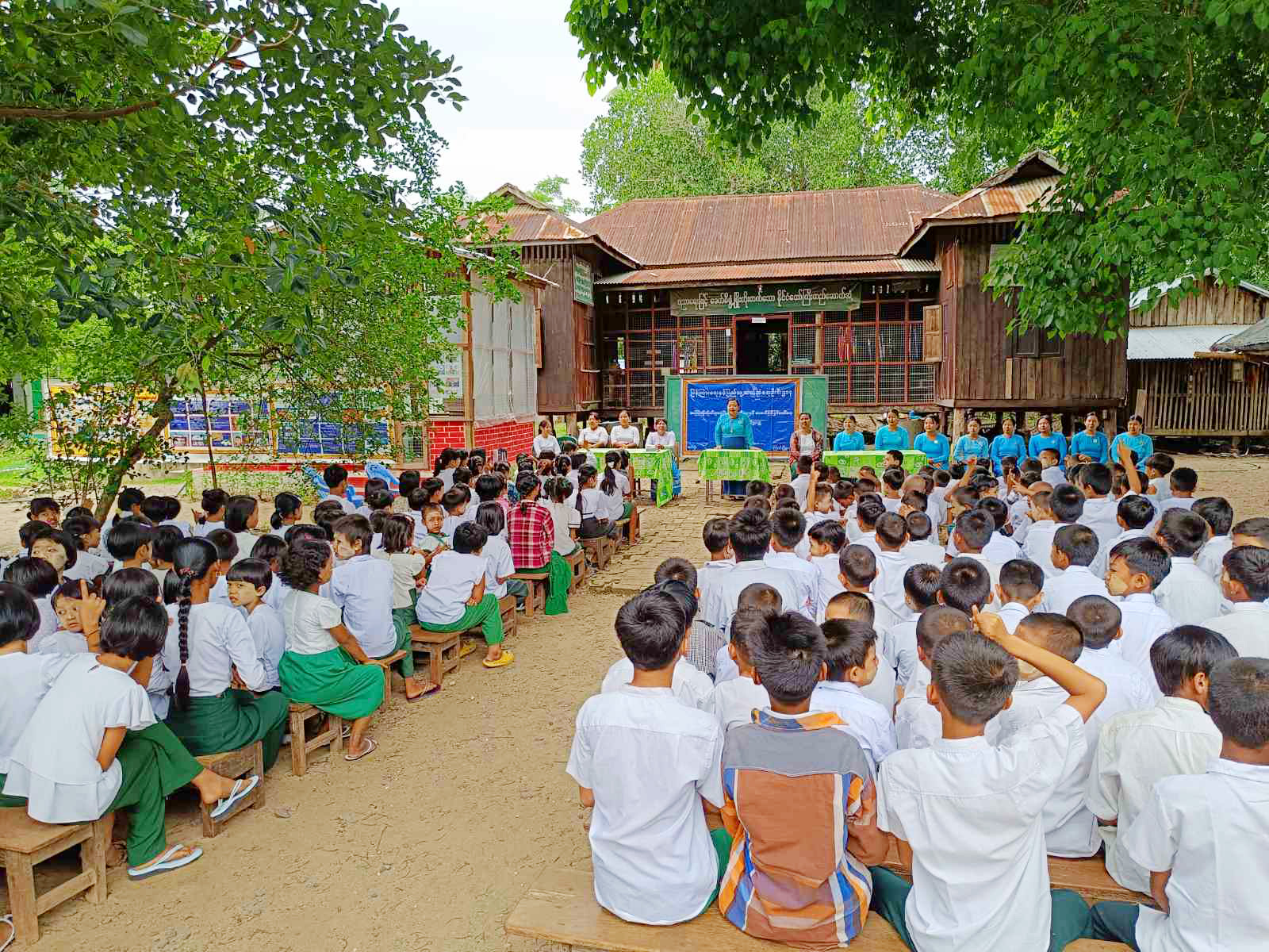 ဦးစွာ မြို့နယ်အမျိုးသမီးရေးရာအဖွဲ့ဥက္ကဋ္ဌ ဒေါ်စိုးစိုးတင့်က ကျောင်းသား၊ ကျောင်းသူများအနေဖြင့် ကျောင်းစာများကို ဇွဲလုံ့လဝီရိယထား၍ ကြိုးစားသင်ယူမှတ်သားကာ ရပ်ရွာအကျိုး၊ နိုင်ငံအကျိုး၊ တိုင်းပြည်အကျိုးကို သယ်ဖိုးထမ်းရွက်နိုင်သော သားကောင်းရတနာများဖြစ်လာစေဖို့ မျှော်လင့်ပါကြောင်း၊ ကျောင်းစာအပြင် ပြင်ပဗဟုသုတများစွာရရှိစေရန်အတွက် ပြန်/ဆက်ဌာန၊ အခြားဌာနများဖြင့် ပူးပေါင်း၍ ကျောင်းအခြေပြု အသိပညာပေးလုပ်ငန်းများကို စဉ်ဆက်မပြတ် ဆောင်ရွက်လျက်ရှိကြောင်းပြောကြားပြီး ကလေးသူငယ်များအား လူကုန်ကူးမှုအန္တရာယ်အကြောင်းကို ဟောပြောခဲ့သည်။