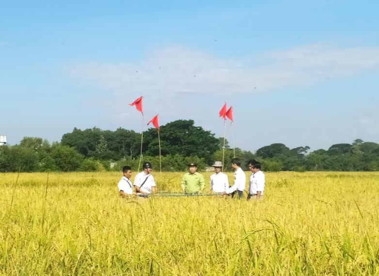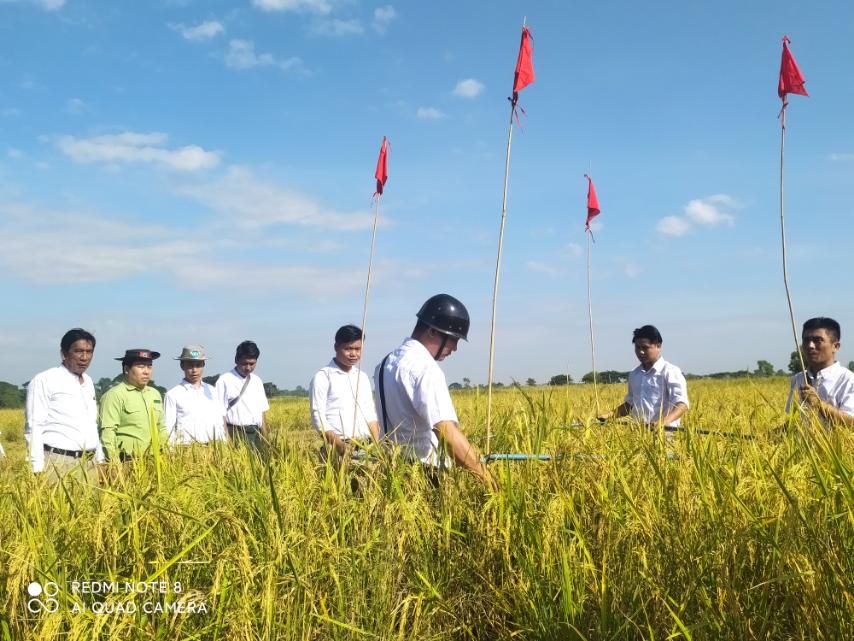 အဆိုပါ မိုးစပါးစံကွက်ရိတ်သိမ်းရာသို့မြို့နယ်စီမံခန့်ခွဲရေးနှင့်အုပ်ချုပ် ရေးကော်မတီဥက္ကဋ္ဌ ဦးကိုကိုဦး၊ မြို့နယ်မြေစာရင်းဦးစီးမှူး ဦးစိုင်းရှိန်းလင်းထွန်းနှင့်ဝန်ထမ်းများ၊ မြို့နယ်စိုက်ပျိုးရေးဦးစီးမှူး ဦးကျော်ဌေးနှင့် ဝန်ထမ်းများ၊ တောင်သူများတက်ရောက်ခဲ့ကြပြီး၊ဆင်း သုခစပါးမျိုးကွဲအား ကောင်း/သင့်/ညံ့ ကိုယ်စားပြုစံကွက်(၃)မျိုး ရိတ်သိမ်းခဲ့ရာ တစ်ဧက ပျမ်းမျှအထွက်တင်း အစို(၁၀၄.၁၇)တင်း၊ အ ခြောက် (၉၃.၂၁)တင်း ထွက်ရှိခဲ့ကြောင်း သိရသည်။