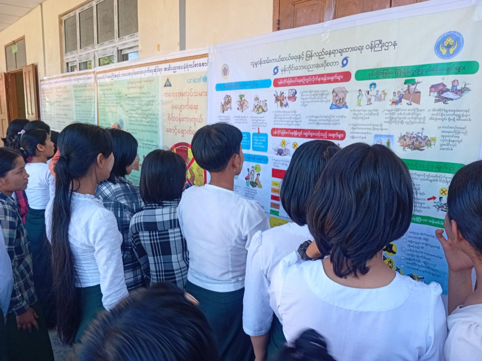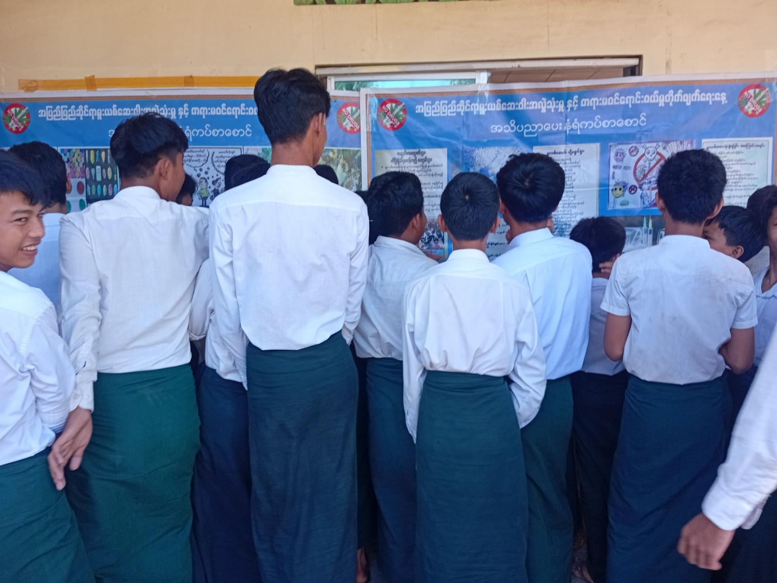 ထို့အပြင် အငယ်တန်းစာရေး ဒေါ်မွန်မြတ်သူက မူလတန်းကလေးငယ်များအား ဗဟုသုတရရှိစေမည့် ရုပ်ပြပုံပြင်စာအုပ်များဖြင့် မိတ်ဆက်ပေးခြင်း၊ ကလေးငယ်များအား သရုပ်ပြပုံပြင်ပြောပြခြင်းတို့ကို ဆောင်ရွက်ပေးခဲ့ပါသည်။ ထို့နောက် ကျောင်းသားလူငယ်များအတွက် ကျောင်းစာကြည့်တိုက် လက်တွေ့အသုံးချခြင်း အစီအစဉ်အဖြစ် စာအုပ်ပြပွဲ၊ စာဖတ်ဝိုင်းဆွေးနွေးပွဲများအပြင် မူးယစ်ဆေးဝါးအသိပညာပေး နံရံကပ်စာစောင်များ၊ ကလေးအလုပ်သမား၊ သဘာဝပတ်ဝန်းကျင်ဆိုင်ရာ အသိပညာပေး နံရံကပ်စာစောင်များနှင့် လူကုန်ကူးမှု အသိပညာပေးနံရံကပ်စာစောင်တို့ကို ပြသထားရာ ကျောင်းသား/ကျောင်းသူများ စိတ်ပါဝင်စားစွာ လေ့လာကြည့်ရှုခဲ့ကြသည်။